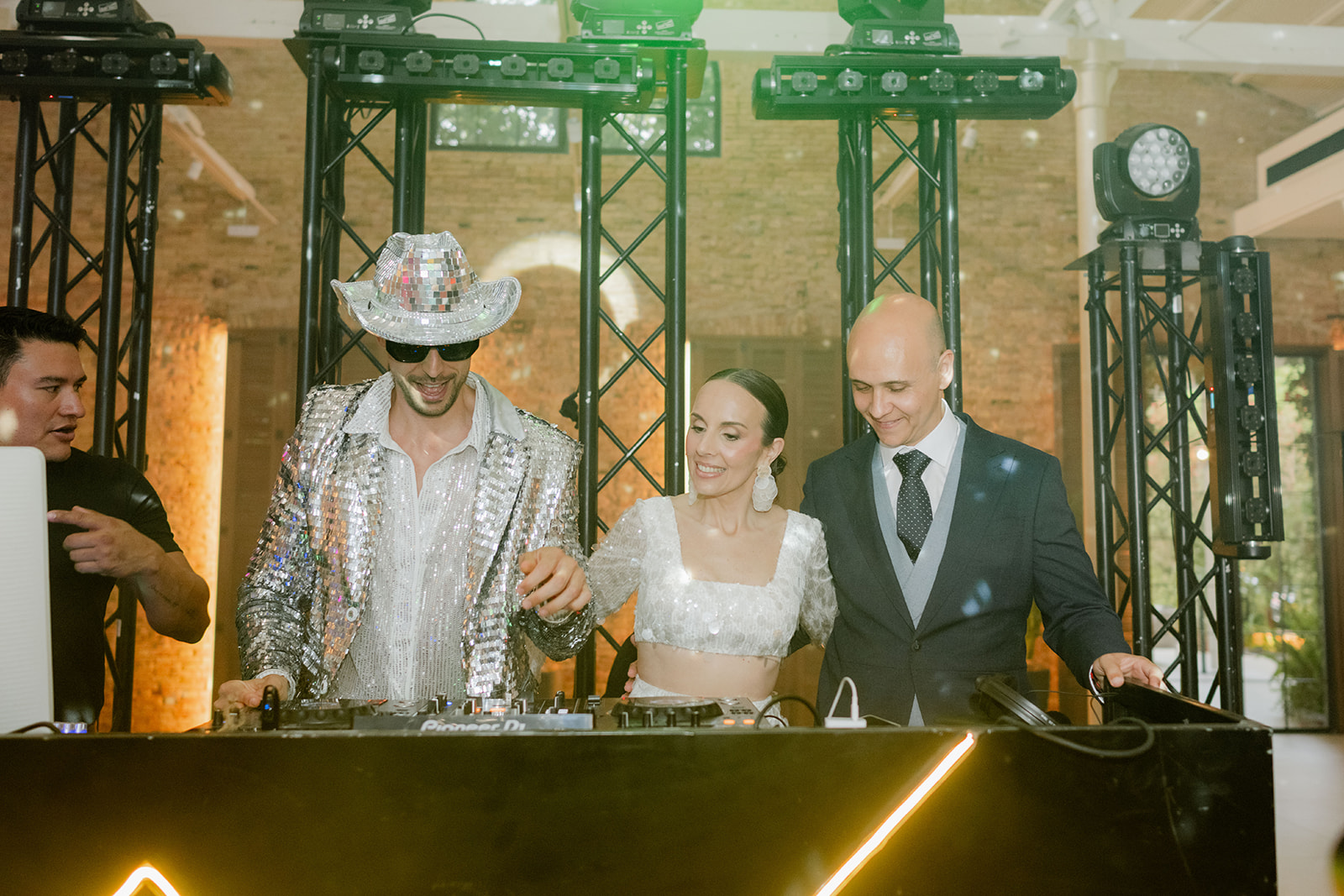 Los 3 DJ que amenizaron hasta el cierre, el conocido Pepino Marino, amigo de Irene; Javi Martínez, DJ valenciano que está sonando fuerte y Boccachico, otro de los DJ querido por la pareja y que este fin de semana lo tuvimos en el Festival de les Arts. Un corner de Glitter montado por “Glitter Up” hizo que los invitados brillaran.