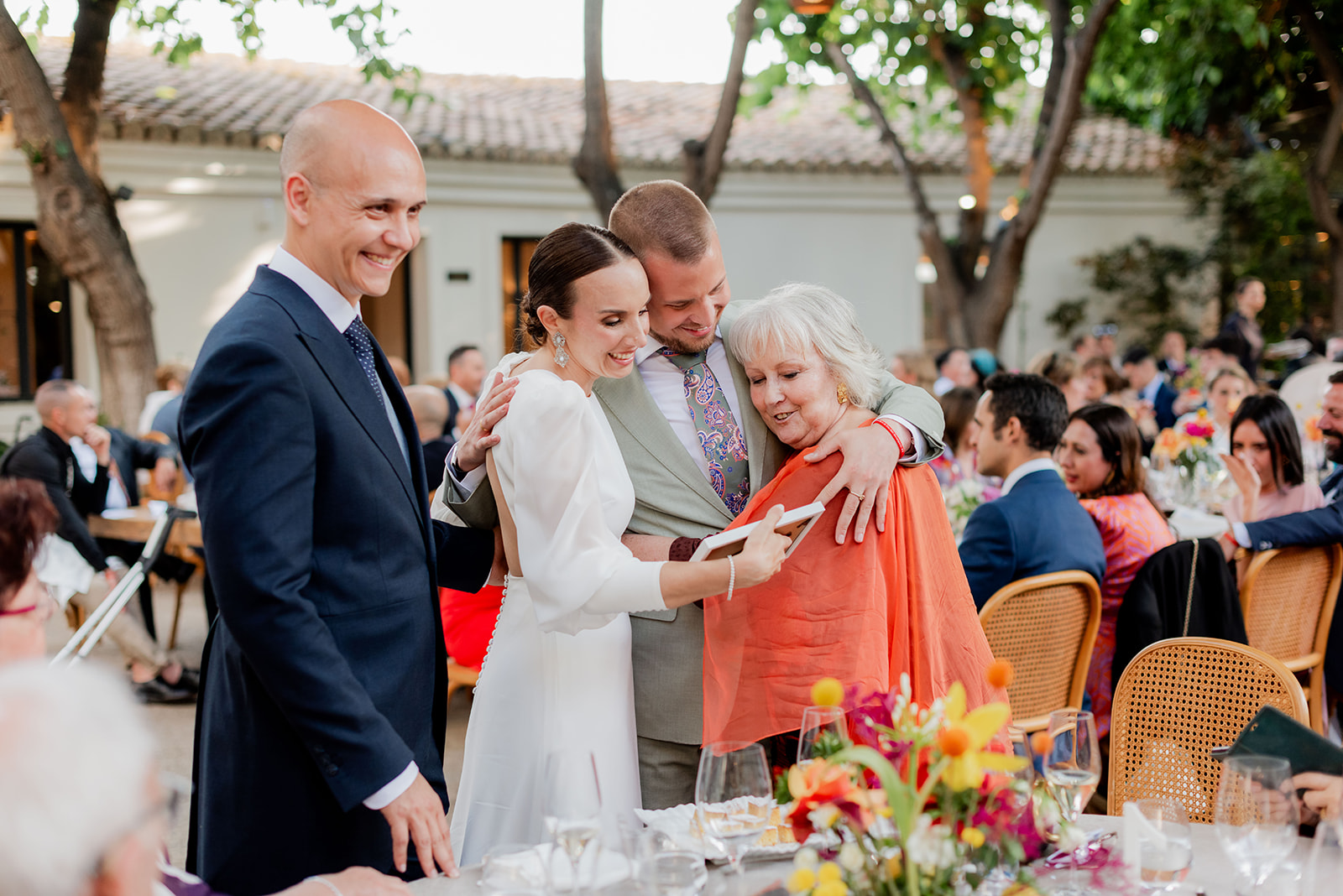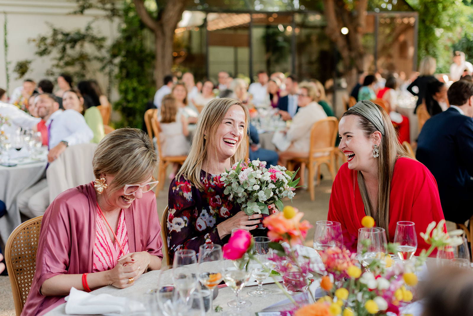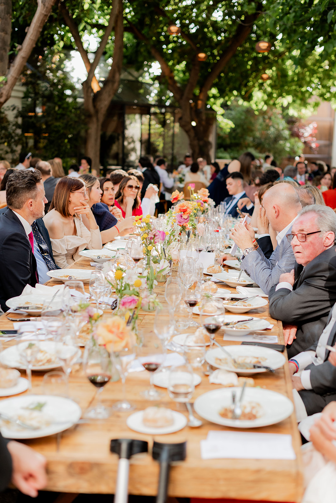 Tras la ceremonia, los invitados se desplazaron al emblemático espacio de El Telar de Miguel Martí, una antigua fábrica rehabilitada en un lugar con encanto, que fusiona diseño, naturaleza y gastronomía de vanguardia. Allí se vivió una fiesta inolvidable, en la que destacó la calidad y exquisitez de la comida, la naturalidad de Irene y Toni y la alegría compartida entre los asistentes.
