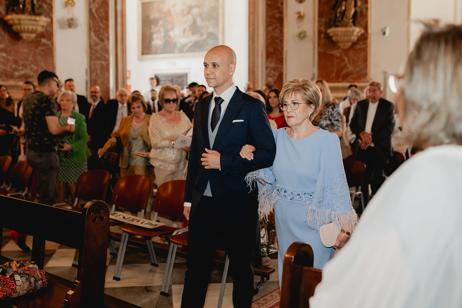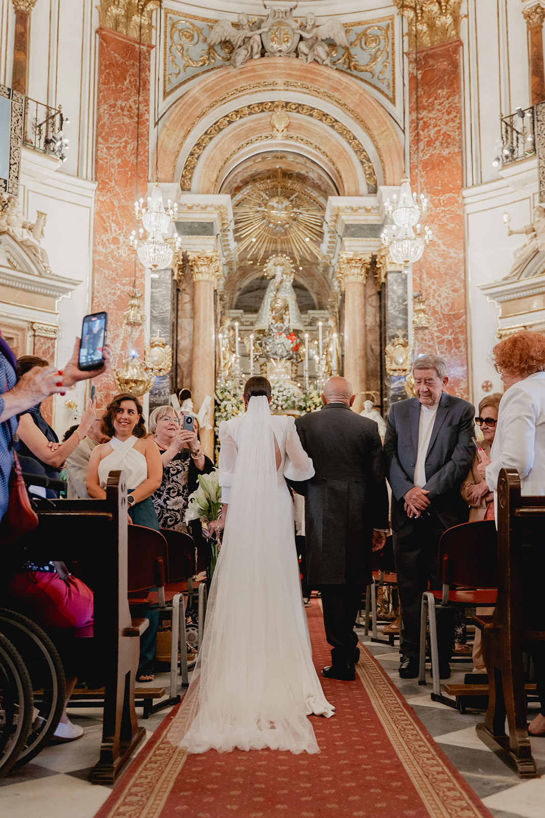La ceremonia tuvo lugar en la majestuosa Basílica de la Virgen de los Desamparados, un espacio cargado de historia y devoción, esa devoción que lleva a Irene a pertenecer a la Hermandad de los Seguidores de la Virgen y motivo por el cual fue elegida la Basílica, ambos tuvieron claro donde se darían el “sí, quiero”, a los pies de nuestra Virgen.
