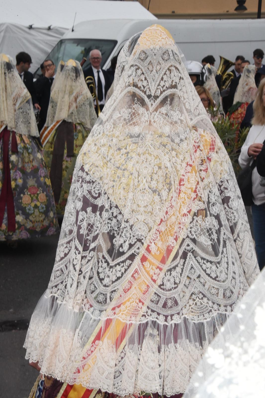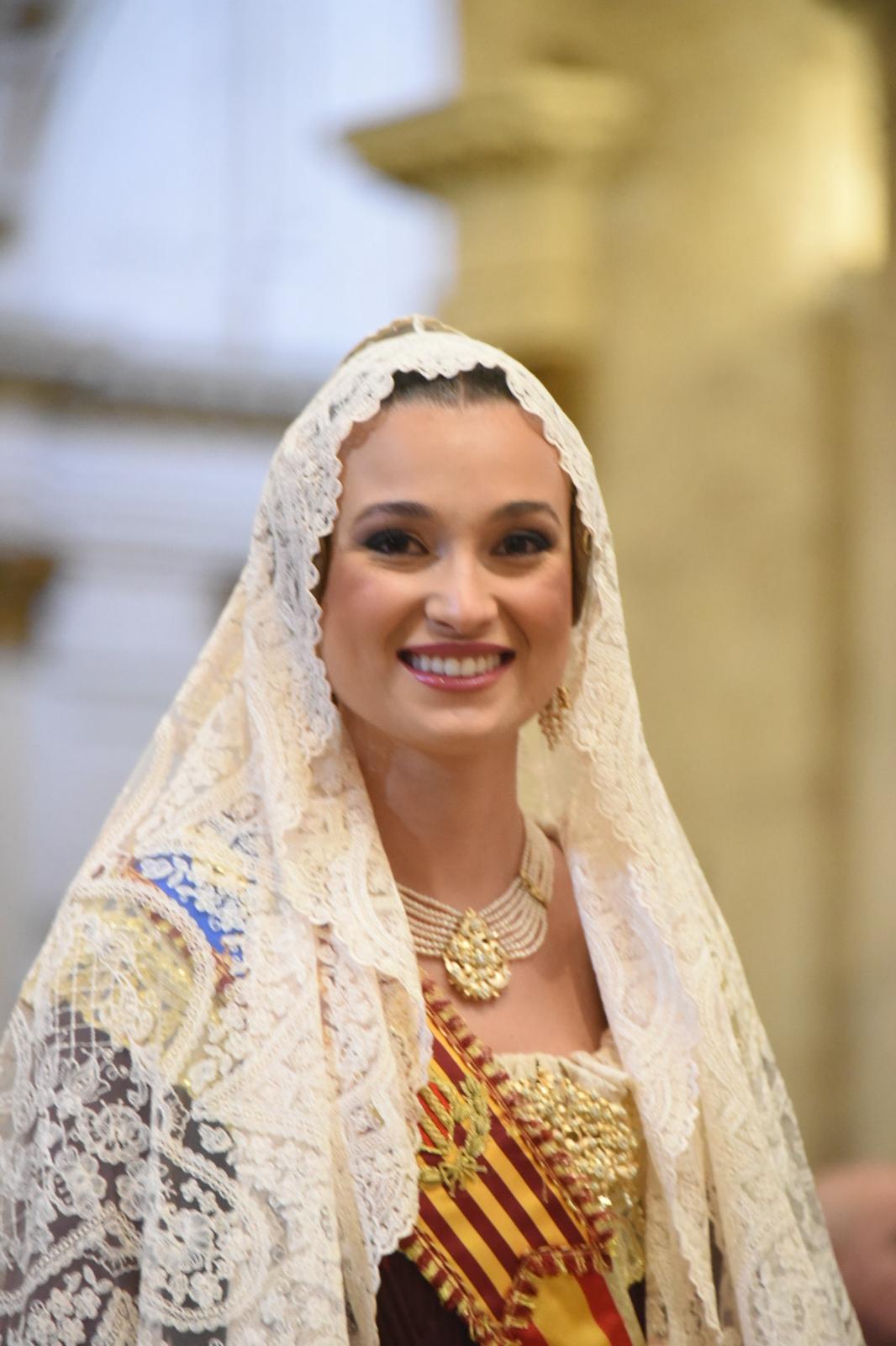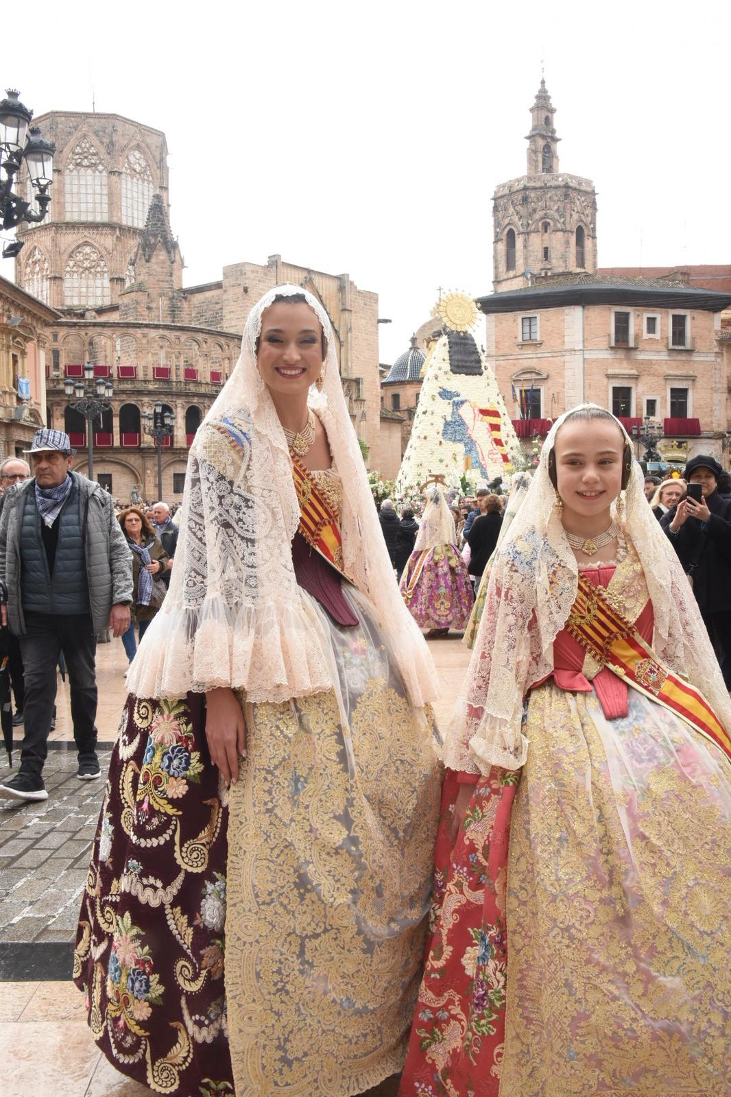 Concluida la homilía ha continuado la celebración con la ofrenda de flores de las Falleras Mayores y sus cortes de honor ante la imagen de la Virgen.
