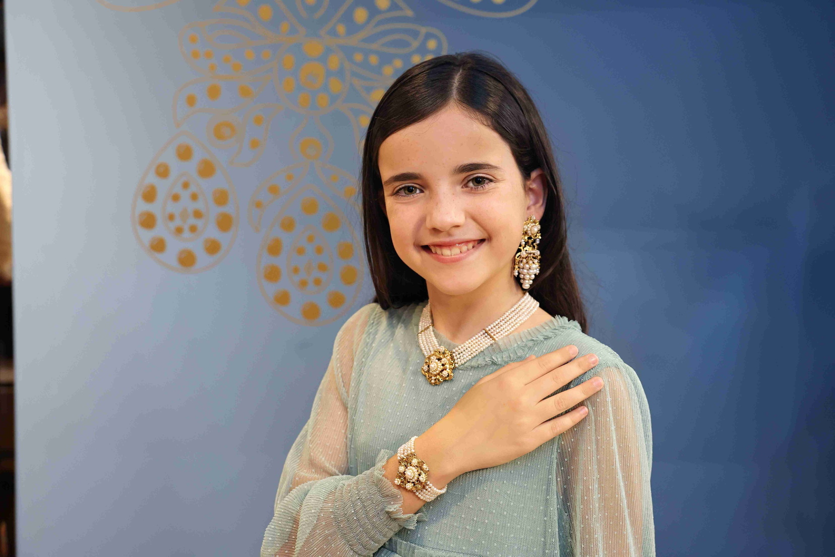 El conjunto se completa con un aderezo y peinetas de Daniel Bada, piezas que aportan brillo y distinción sin romper la estética clásica del traje.
