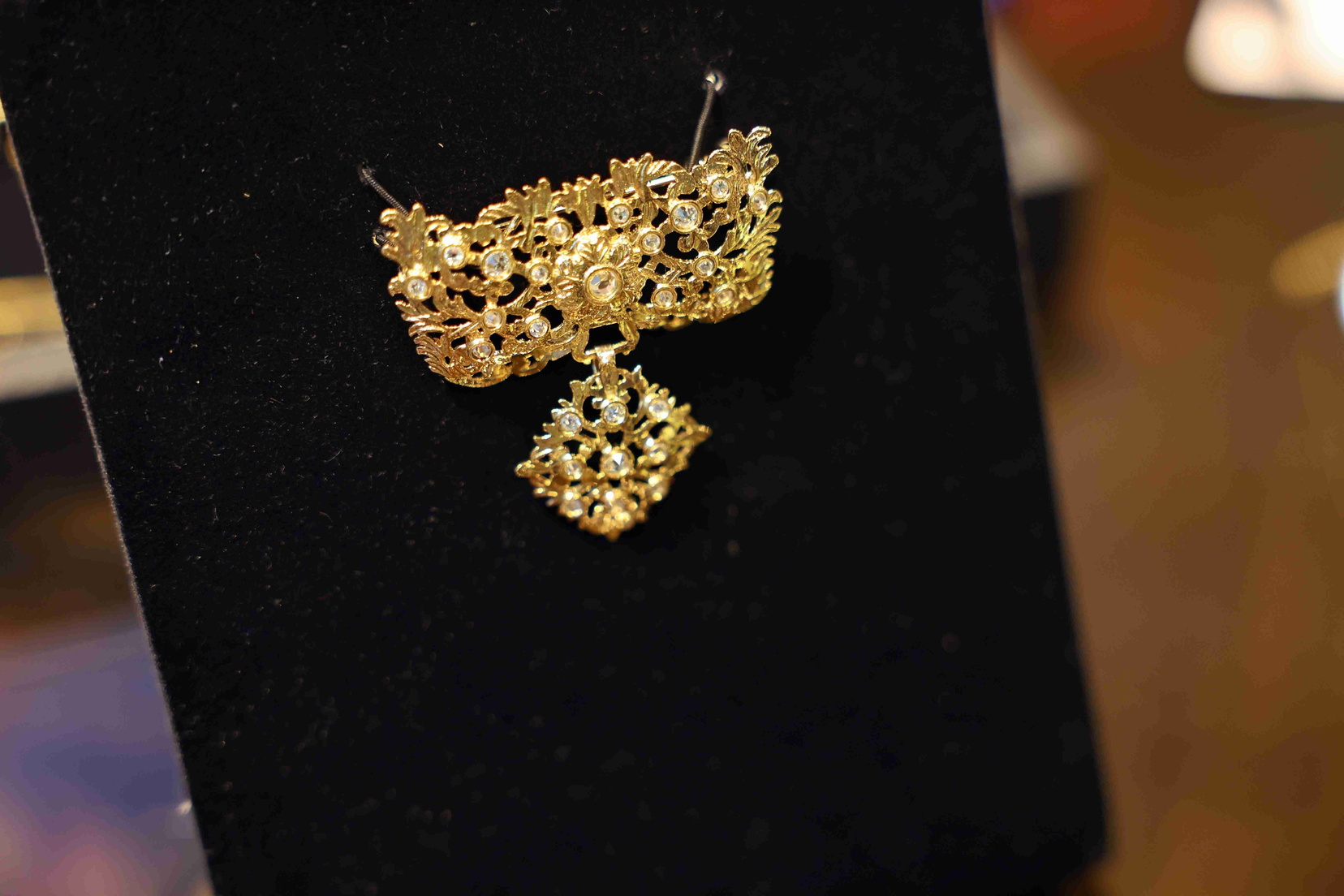 El aderezo oficial es un modelo de racimo realizado en oro de 18 kilates con un diseño rico en ornamentaciones trabajadas artesanalmente. En el caso de las Falleras Mayores de Valencia, sus piezas incluyen además unos elegantes diamantes en talla rosa.