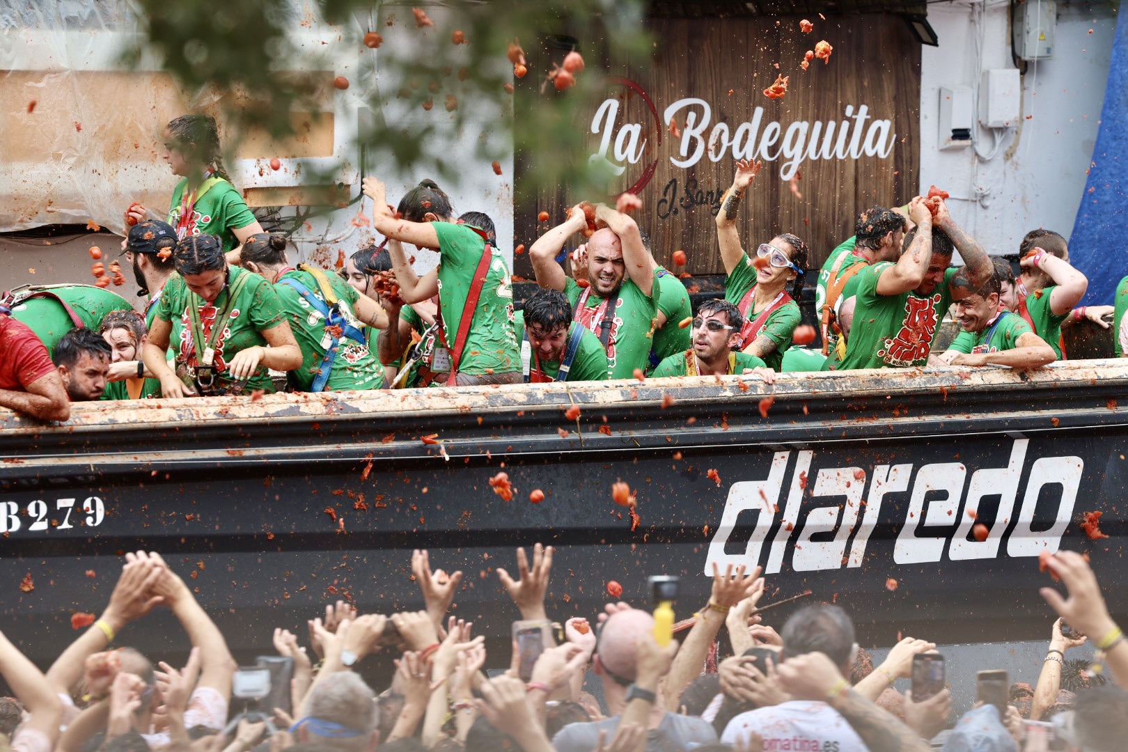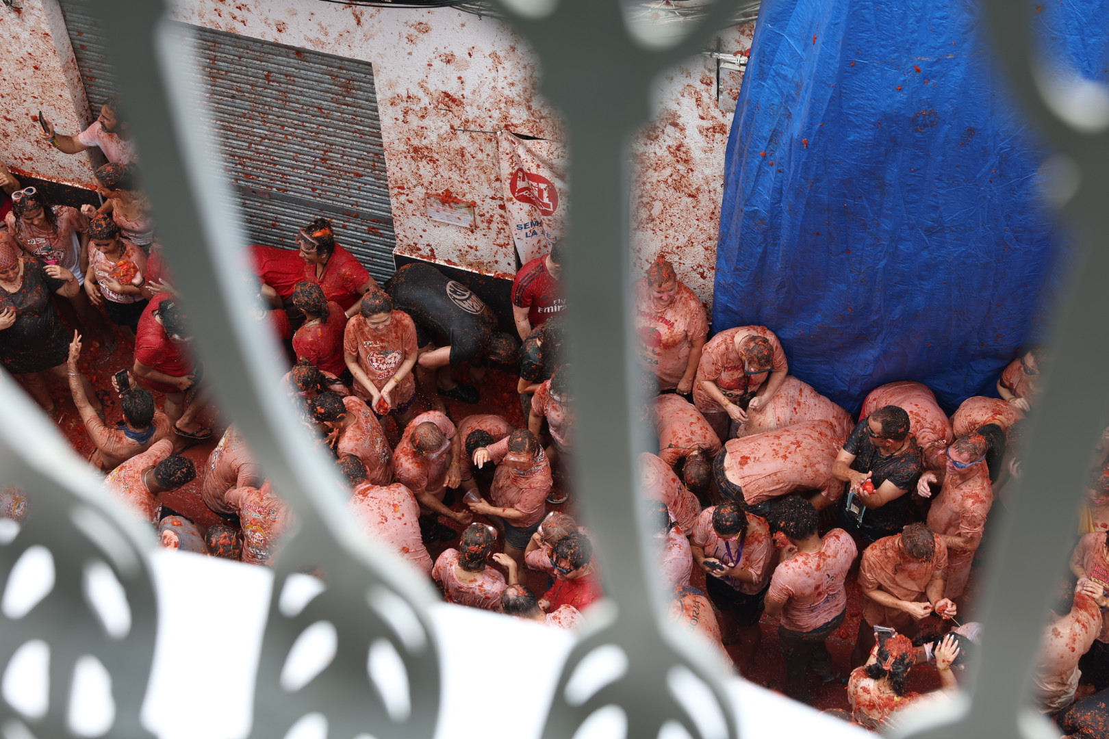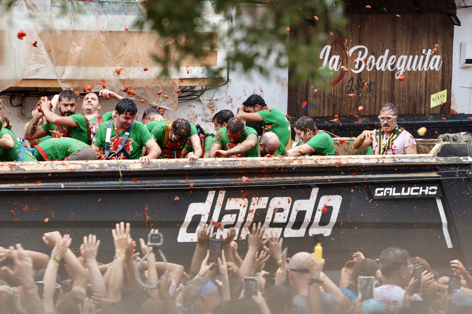 La Tomatina, la icónica fiesta que se celebra cada año en la localidad valenciana de Buñol, volvió a teñir de rojo sus calles el pasado miércoles 28 de agosto de 2024. Este evento, conocido mundialmente por su impresionante batalla de tomates, reunió a miles de participantes de todas partes del mundo que se sumergieron en la alegría y el descontrol de lanzar y recibir toneladas de tomates maduros.