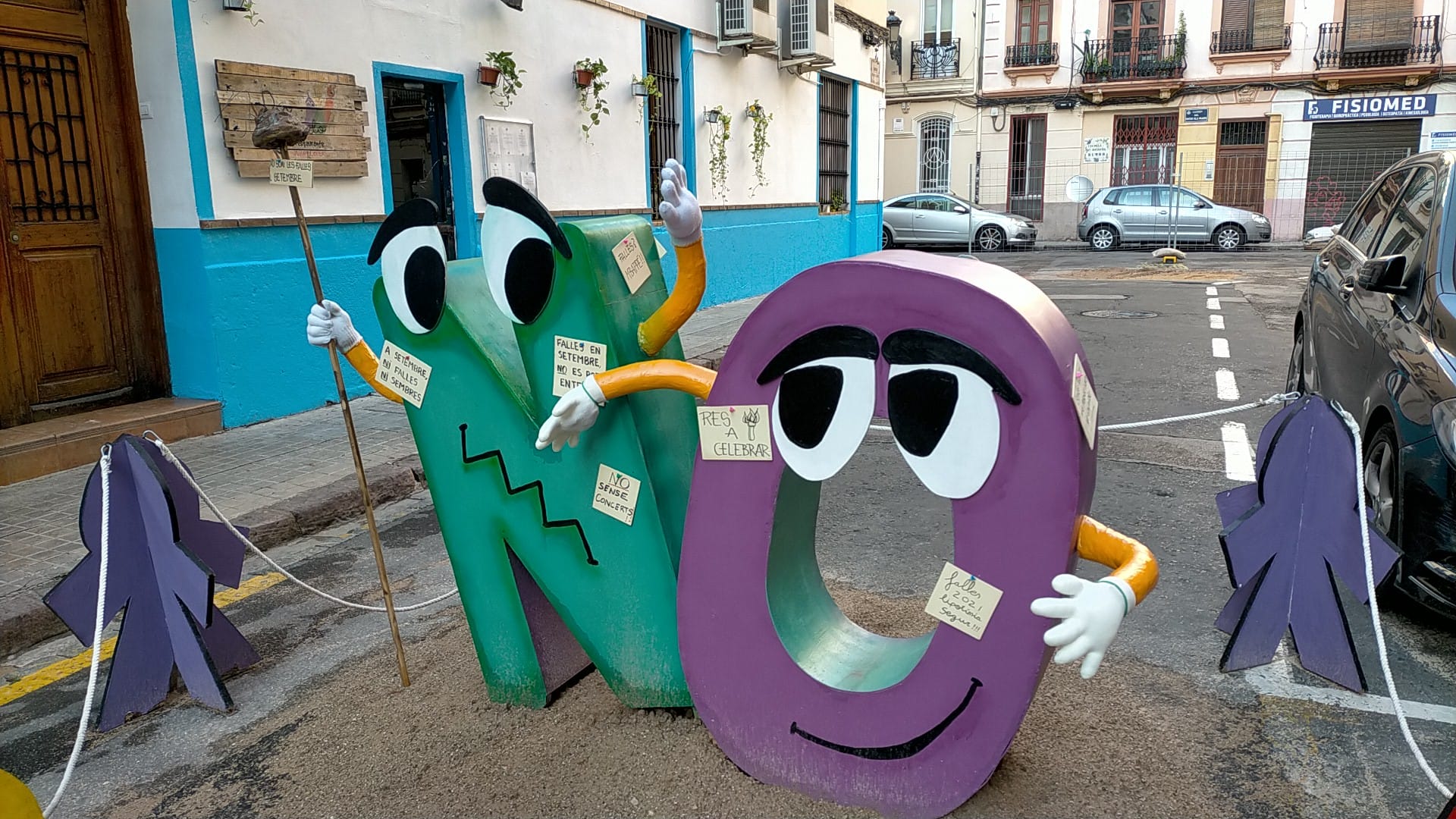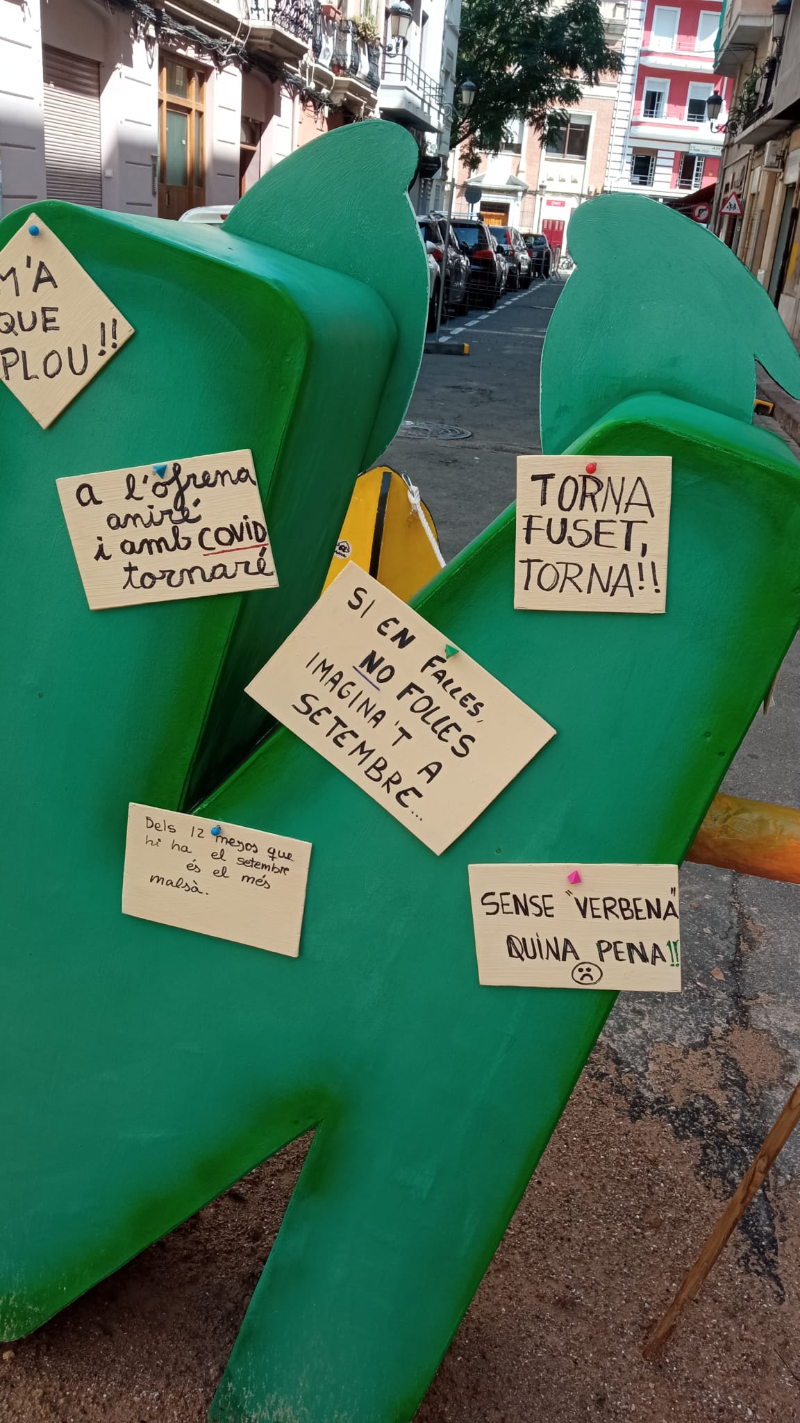 Es el caso de la comisión Arrancapins que tras su «no» plantà muestra en su monumento su disconformidad con la celebración de fallas atípicas y fuera de lugar. Resumiendo, unas no fallas.