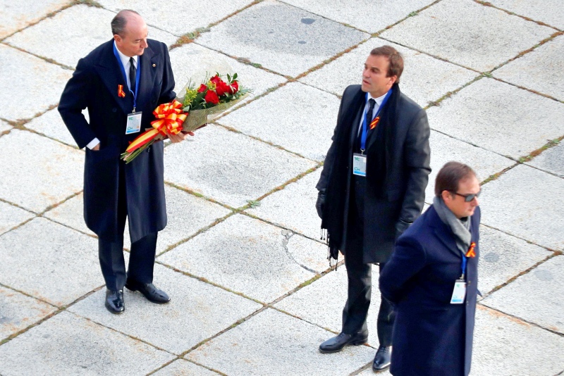 - El bisnieto de Franco, Luis Alfonso de Borbón Martínez-Bordiú (d), y el nieto de Franco, Jaime Martínez Bordiú (c), y Daniel Martínez-Bordiú (i), bisnieto de Franco, a su llegada al Valle de los Caídos de donde serán exhumados los restos de Francisco Franco y trasladados al cementerio de El Pardo-Mingorrubio para su reinhumación, en Madrid, a 24 de octubre de 2019. 24 de octubre de 2019 10/24/2019