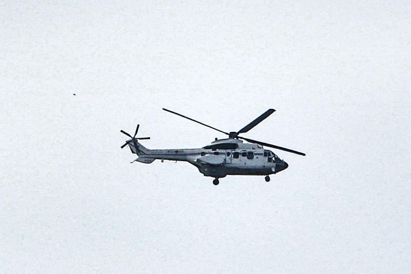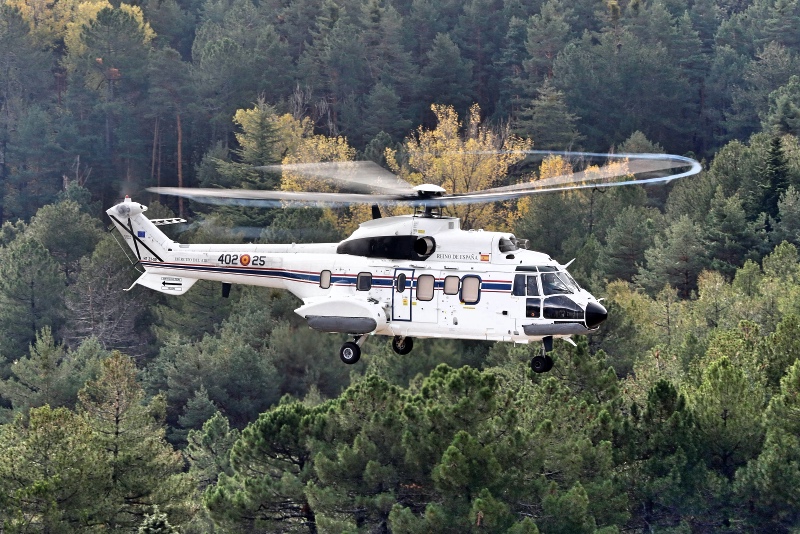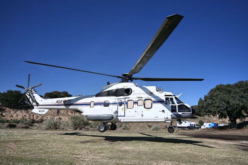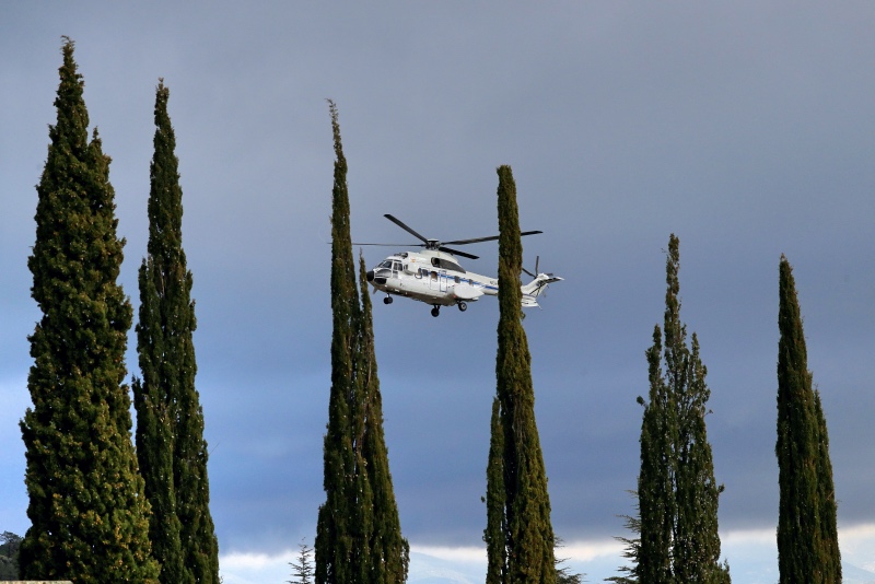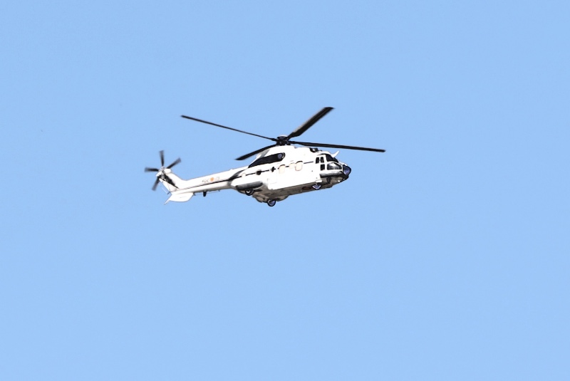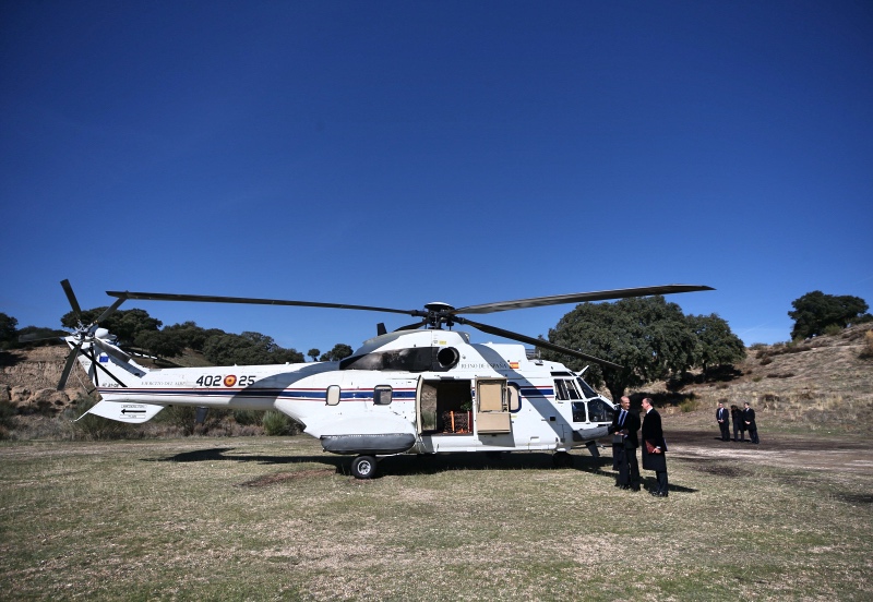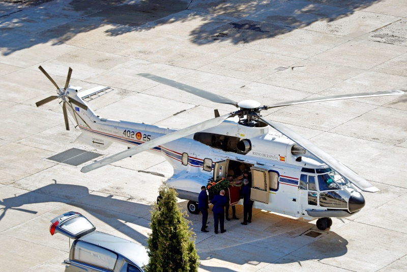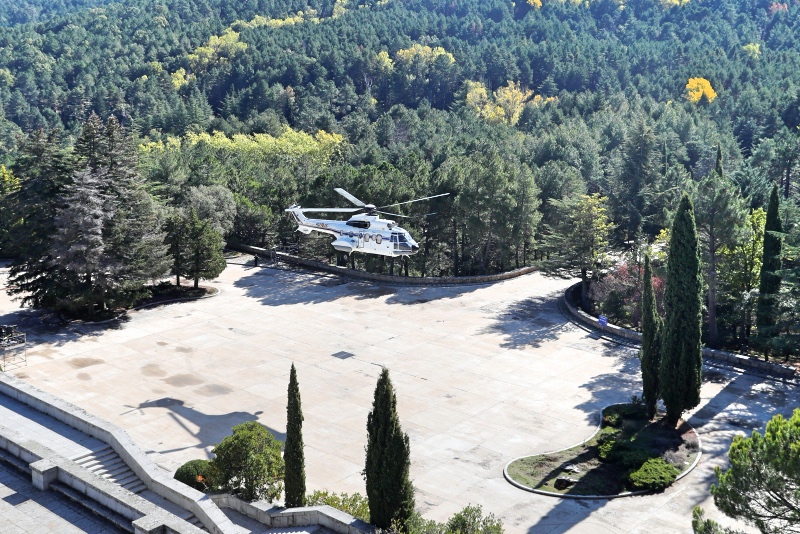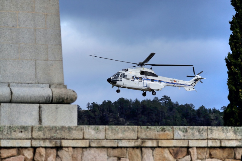 - El helicóptero que transportará el féretro con los restos mortales de Francisco Franco hasta el cementerio de El Pardo-Mingorrubio, un Super Puma del Ejército del Aire, a su llegada al Valle de los Caídos, en Madrid, a 24 de octubre de 2019. 24 octubre 2019 10/24/2019