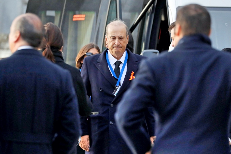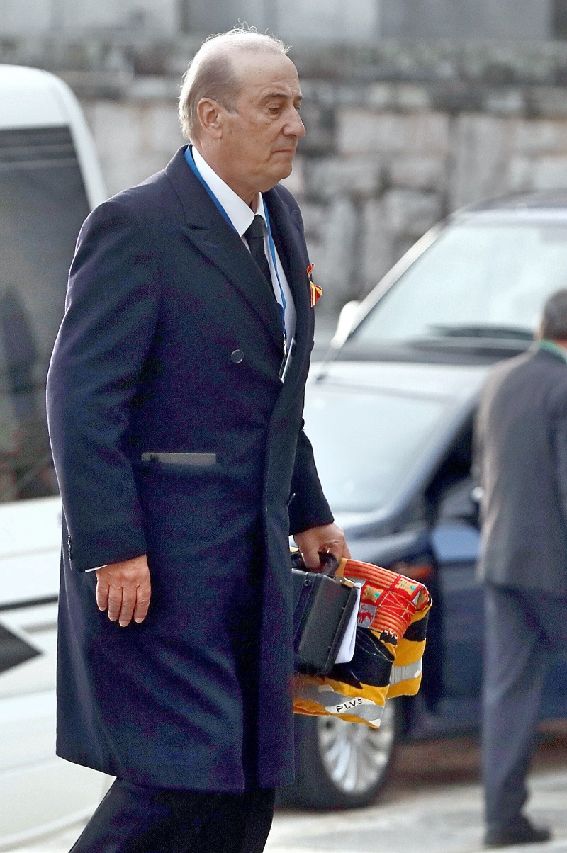 - l abogado de la familia Franco, Luis Felipe Utrera Molina (c) tras la salida del féretro con los restos del dictador del Valle de los Caídos y antes de su trasladado al cementerio de El Pardo-Mingorrubio para su reinhumación, en Madrid, a 24 de octubre de 2019. 24 cotubre de 2019 10/24/2019