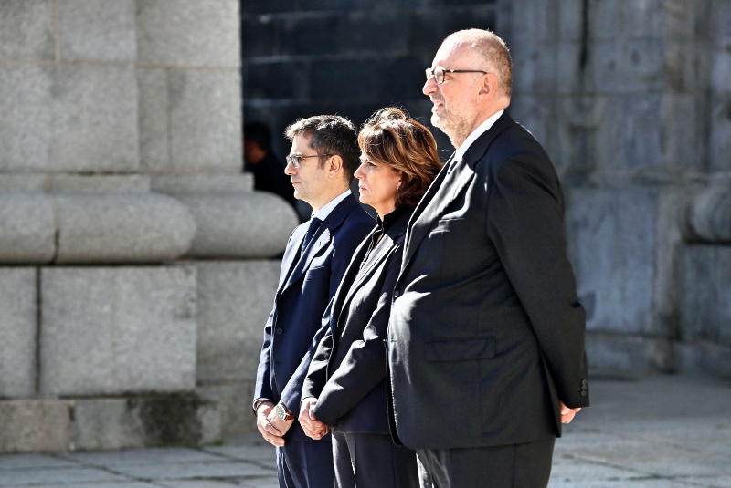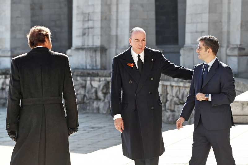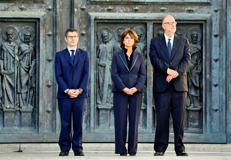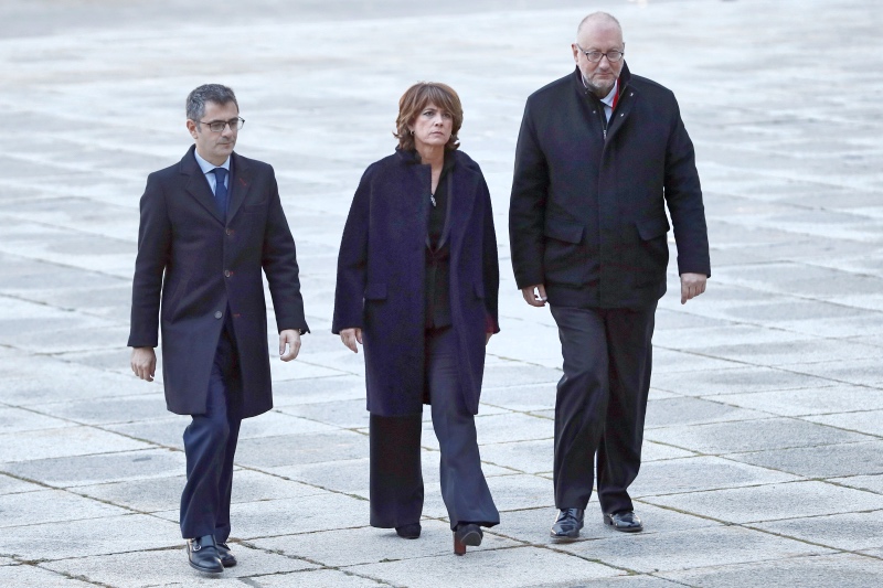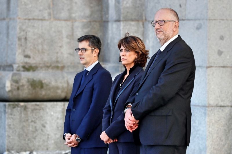 - El secretario general de la presidencia del Gobierno, Felix Bolaños (i), la ministra en funciones de Justicia, Dolores Delgado (c) y el subsecretario del Ministerio de presidencia, Antonio Hidalgo López (d) a su llegada al Valle de los Caídos donde los restos de Francisco Franco serán exhumados y trasladados al cementerio de El Pardo-Mingorrubio para su reinhumación, en Madrid, a 24 de octubre de 2019. 24 de octubre de 2019 10/24/2019