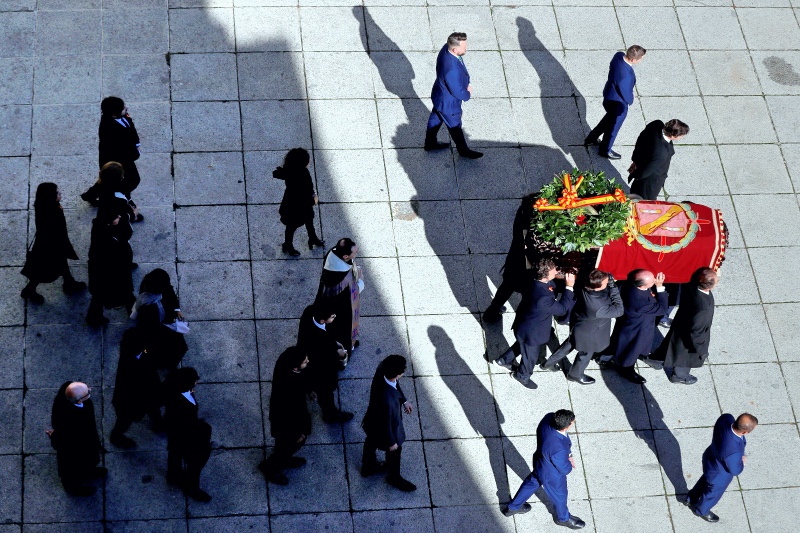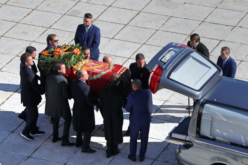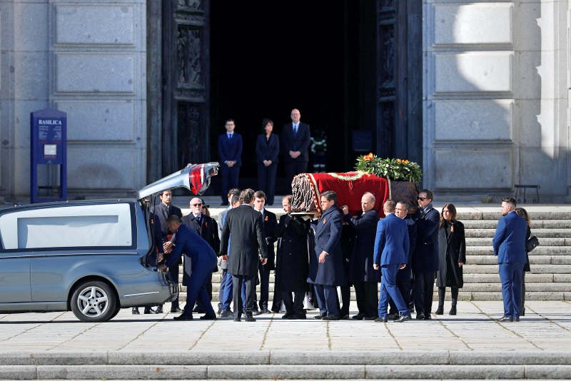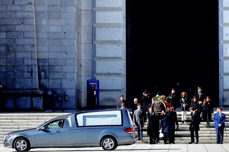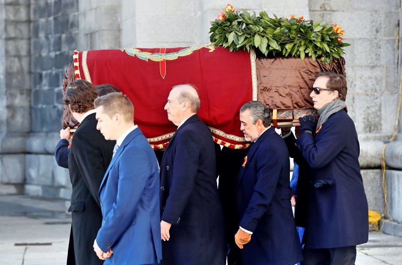 - Familiares de Francisco Franco portan el féretro con los restos mortales del dictador tras su exhumación en la Basílica del Valle de los Caídos, antes de su trasladado al cementerio de El Pardo-Mingorrubio para su reinhumación, en Madrid, a 24 de octubre de 2019. 24 cotubre 2019 10/24/2019