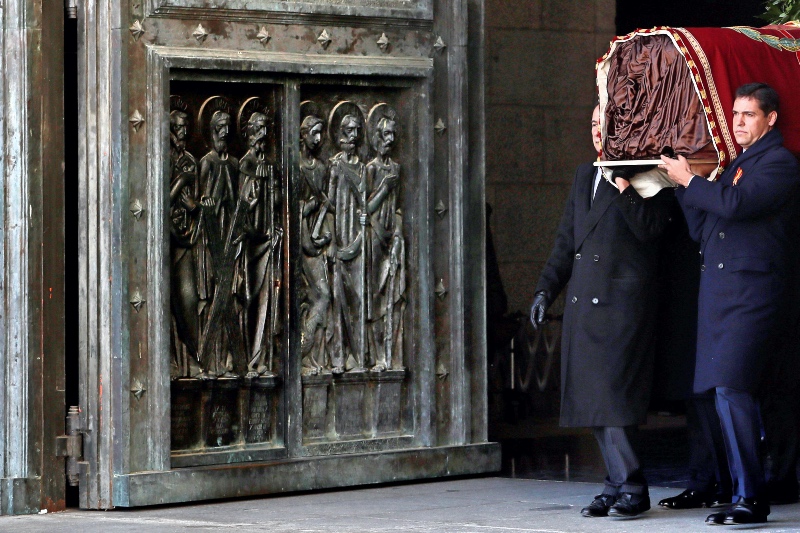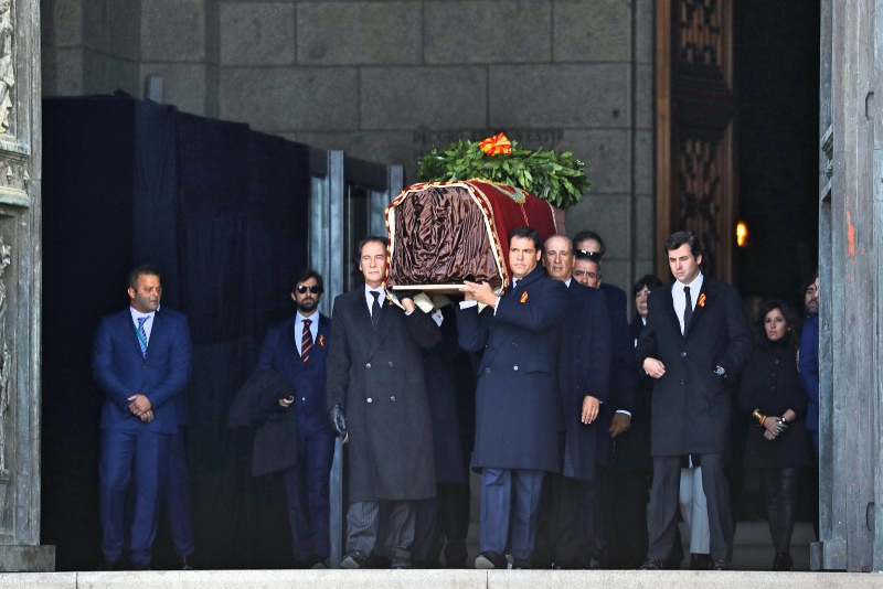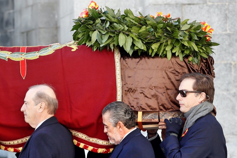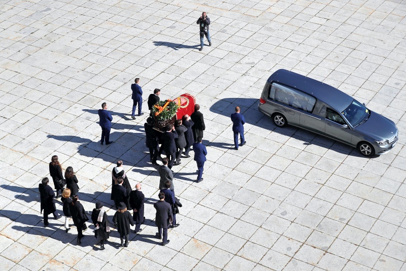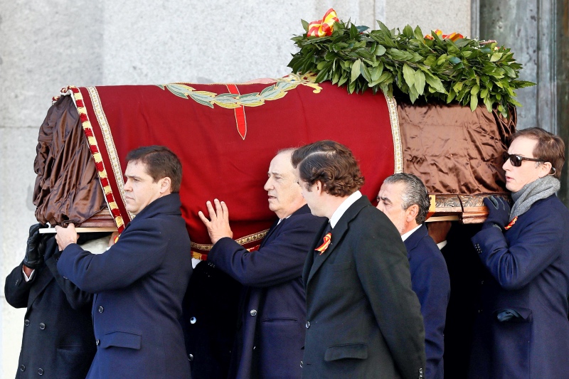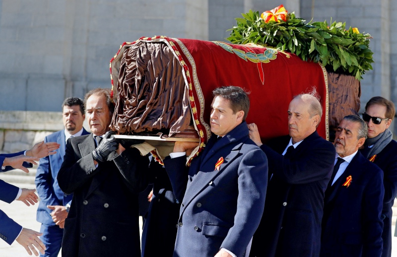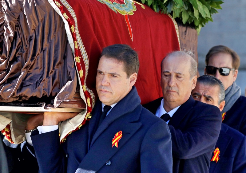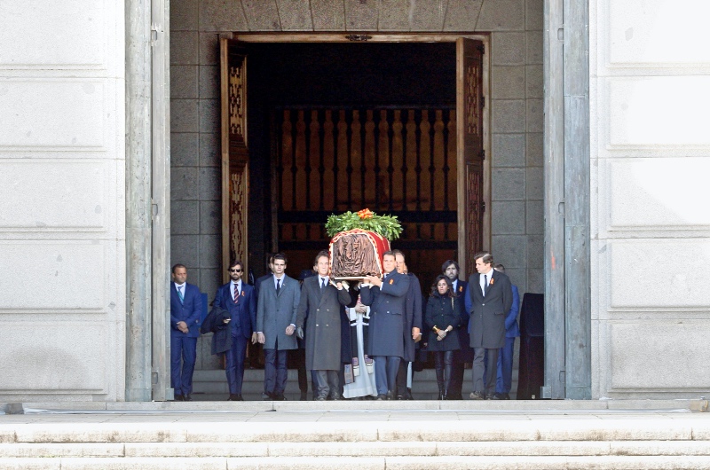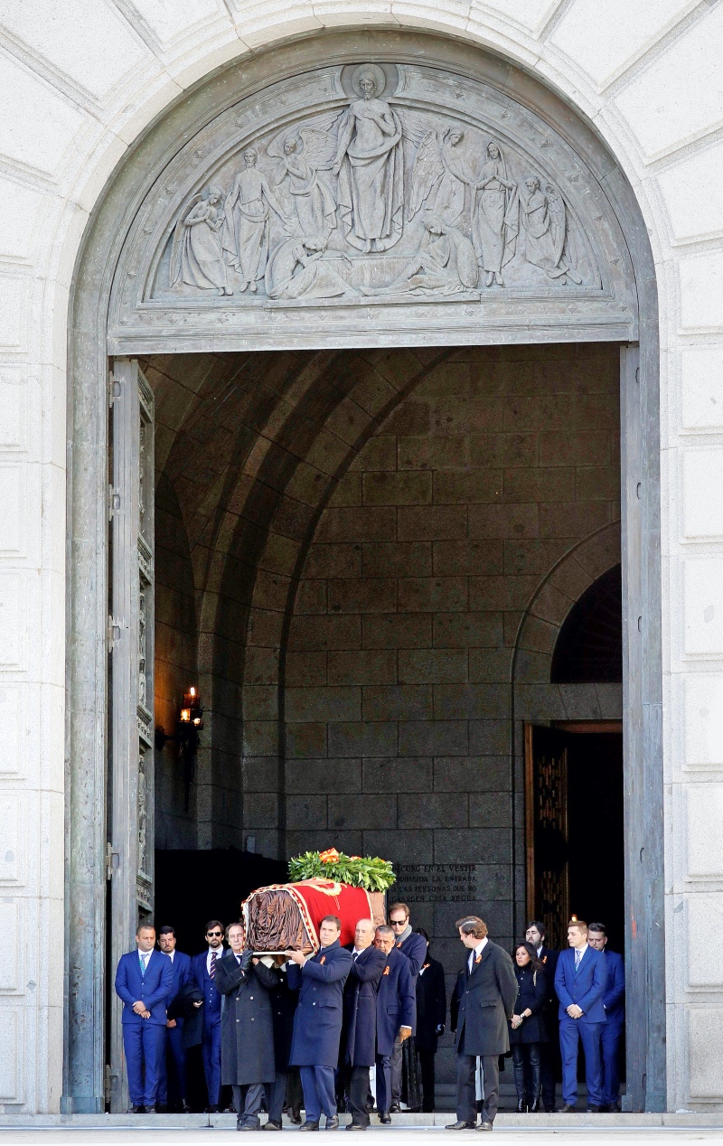 - Familiares de Francisco Franco portan el féretro con los restos mortales del dictador tras su exhumación en la basílica del Valle de los Caídos antes de su trasladado al cementerio de El Pardo-Mingorrubio para su reinhumación, en Madrid, a 24 de octubre de 2019. 234 cotubre 2019 10/24/2019