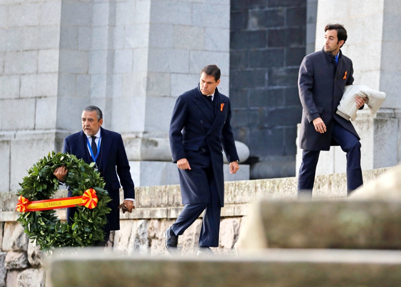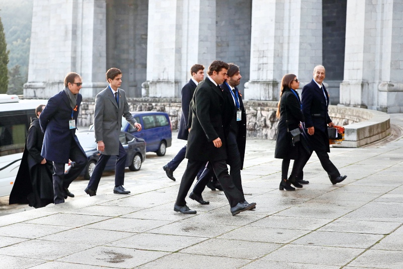 - El bisnieto de Franco, Luis Alfonso de Borbón Martínez-Bordiú (c), y el nieto de Franco, Jaime Martínez Bordiú (d), y Daniel Martínez-Bordiú (i), bisnieto de Franco, a su llegada al Valle de los Caídos de donde serán exhumados los restos de Francisco Franco y trasladados al cementerio de El Pardo-Mingorrubio para su reinhumación, en Madrid, a 24 de octubre de 2019. 24 de octubre de 2019 10/24/2019