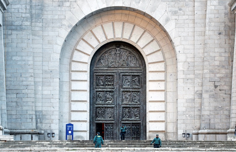 - Efectivos de la Guardia Civil en la puerta de la Basílica del Valle de los Caídos donde los restos de Francisco Franco serán exhumados este jueves y trasladados al cementerio de El Pardo-Mingorrubio para su reinhumación, en San Lorenzo de El Escorial (Madrid, España), a 24 de octubre de 2019 24/10/2019, INHUMACIÓN 10/24/2019