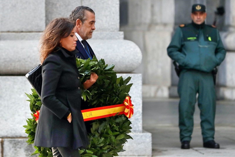 - El abogado de la familia Franco, Luis Felipe Utrera Molina (d) y el nieto José Cristobal Martínez-Bordiú (i) tras la salida del féretro con los restos del dictador del Valle de los Caídos y antes de su trasladado al cementerio de El Pardo-Mingorrubio para su reinhumación, en Madrid, a 24 de octubre de 2019. 24 de octubre de 2019 10/24/2019