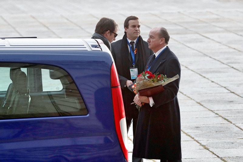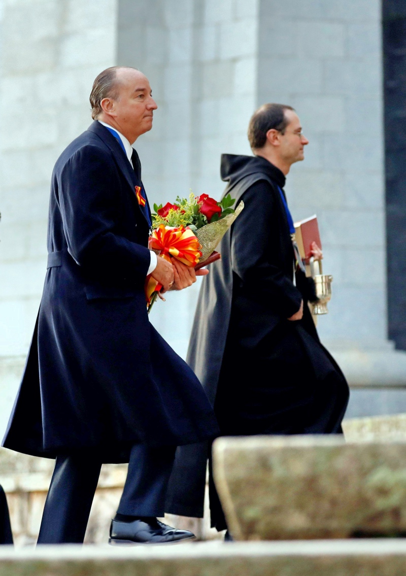 - El abogado de la familia Franco, Felipe Utrera Molina porta un ramo de flores a su llegada al Valle de los Caídos de donde serán exhumados los restos de Francisco Franco y trasladados al cementerio de El Pardo-Mingorrubio para su reinhumación, en Madrid, a 24 de octubre de 2019. 24 de octubre de 2019, Franco, exhumación, traslado 10/24/2019