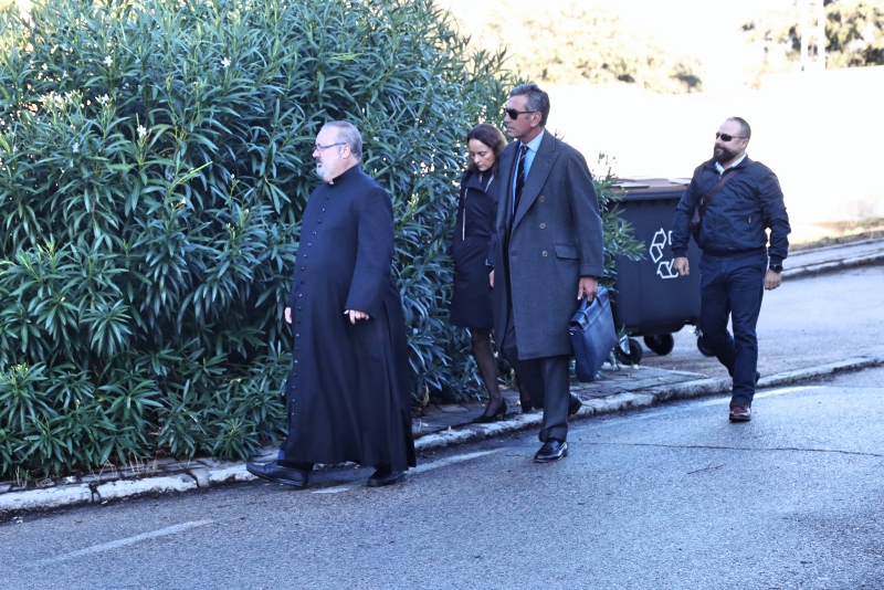 - Los familiares de la familia Franco acompañados por el prior de la basílica del Valle de los Caídos, Santiago Cantera, acceden al templo para asistir a la exhumación de los restos del dictador en la basílica, donde están presentes las autoridades que representan al Gobierno en este acto, previo al traslado del féretro al cementerio de Mingorrubio-El Pardo, en Madrid, a 24 de octubre de 2019. 24 de octubre de 2019 10/24/2019