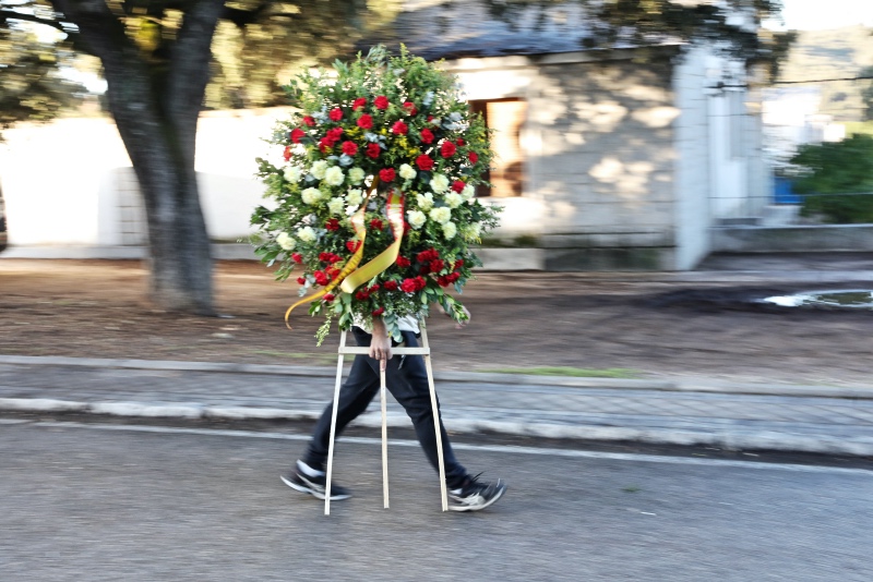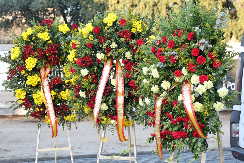 - Un hombre porta una corona de flores en el cementerio de El Pardo-Mingorrubio el día en que serán inhumados los restos del dictador Francisco Franco, en El Pardo (Madrid), a 24 de octubre de 2019. 24/10/2019, INHUMACIÓN 10/24/2019