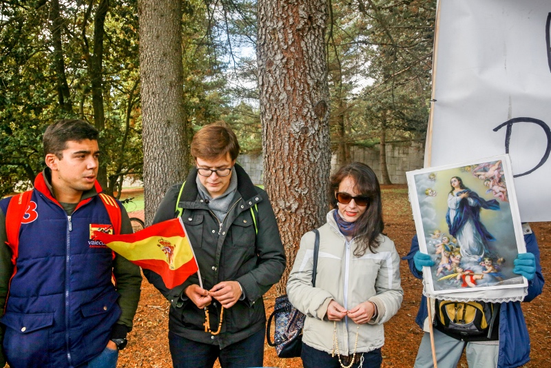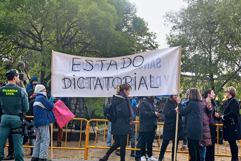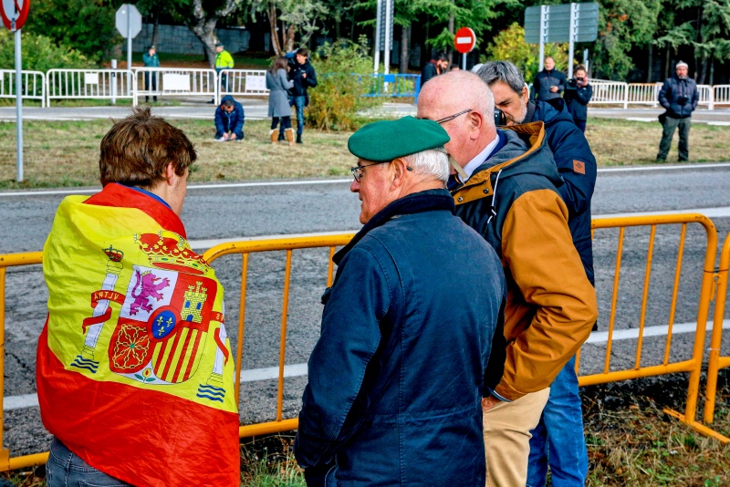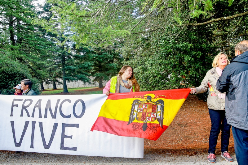 - Un reducido grupo de manifestantes franquistas momentos antes de la exhumación de los restos de Francisco Franco de la basílica del Valle de los Caídos, en San Lorenzo de El Escorial (Madrid), a 24 de octubre de 2019. 24/10/2019, INHUMACIÓN 10/24/2019