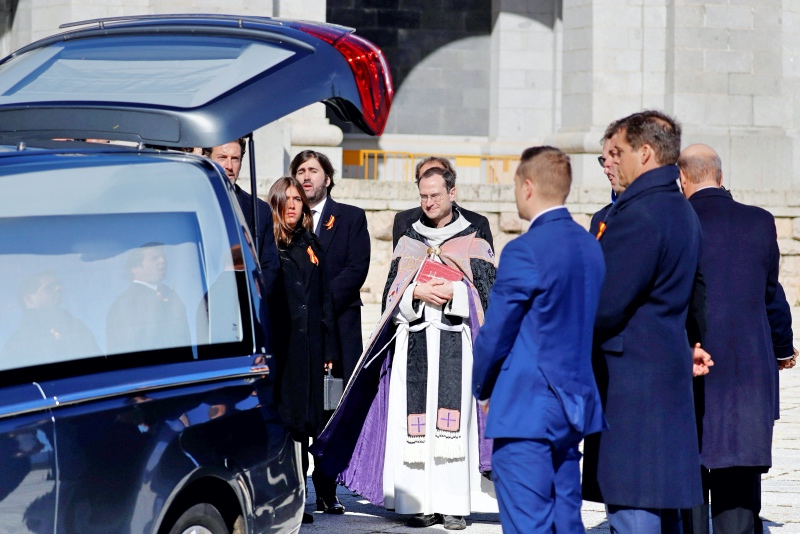 - El prior de la abadía del Valle de los Caídos, Santiago Cantera (2i) junto con los familiares de Francisco Franco tras su exhumación del Valle de los Caídos y antes de su trasladado al cementerio de El Pardo-Mingorrubio para su reinhumación en Madrid, a 24 de octubre de 2019. 24 octubre 2019 10/24/2019