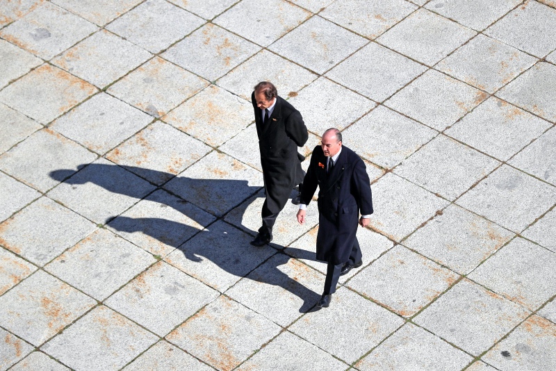 - El nieto de Francisco Franco, Luis Alfonso de Borbón (d) lidera la comitiva familiar con los restos del dictador tras su exhumación del Valle de los Caídos y antes de su trasladado al cementerio de El Pardo-Mingorrubio para su reinhumación, en Madrid, a 24 de octubre de 2019. 24 octubre 2019 10/24/2019