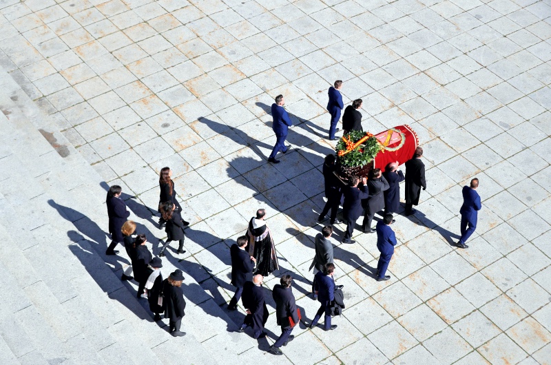 - Comitiva fúnebre en la lonja de la Basílica del Valle de los Caídos tras la exhumación de Francisco Franco antes de su trasladado al cementerio de El Pardo-Mingorrubio para su reinhumación, en Madrid, a 24 de octubre de 2019. 24 de octubre de 2019 10/24/2019