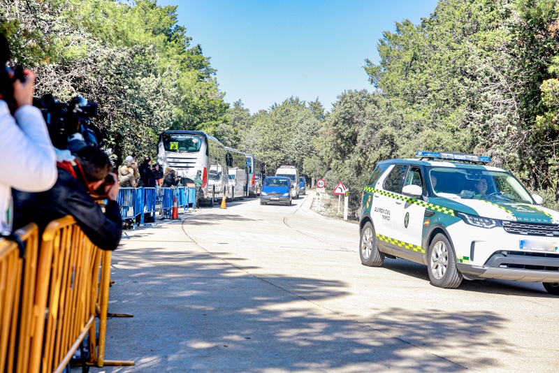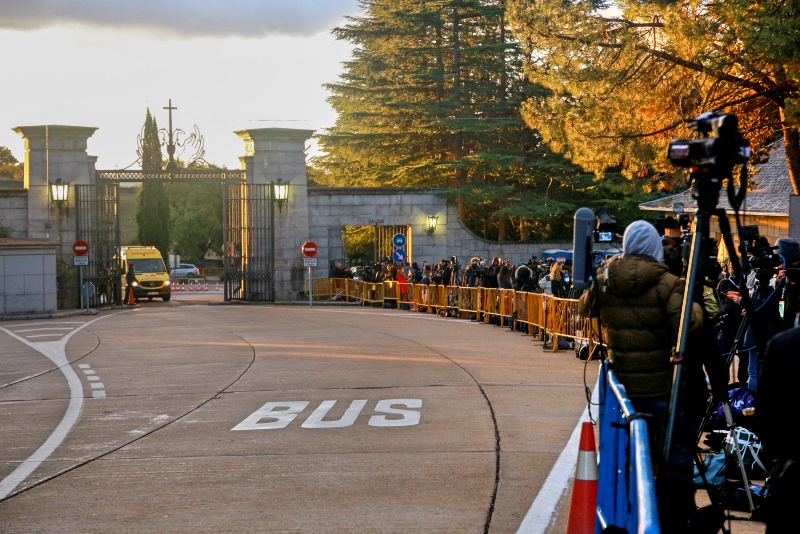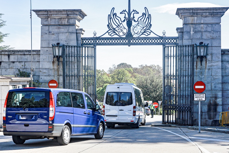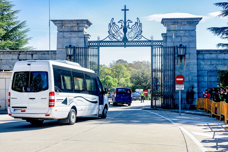 - Vista general de la llegada de los familiares al Valle de los Caídos de donde serán exhumados los restos de Francisco Franco y trasladados al cementerio de El Pardo-Mingorrubio para su reinhumación, en Madrid, a 24 de octubre de 2019. 24 octubre 2019 10/24/2019