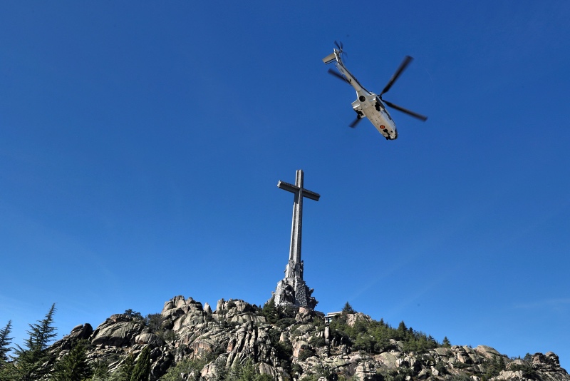 - Vista del helicóptero que traslada los restos de Francisco Franco tras su exhumación del Valle de los Caídos camino del cementerio de El Pardo-Mingorrubio para su reinhumación, en Madrid, a 24 de octubre de 2019. 14 octubre 2019 10/24/2019