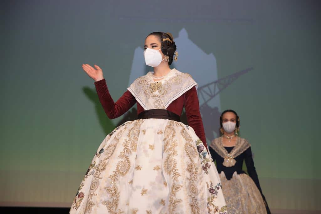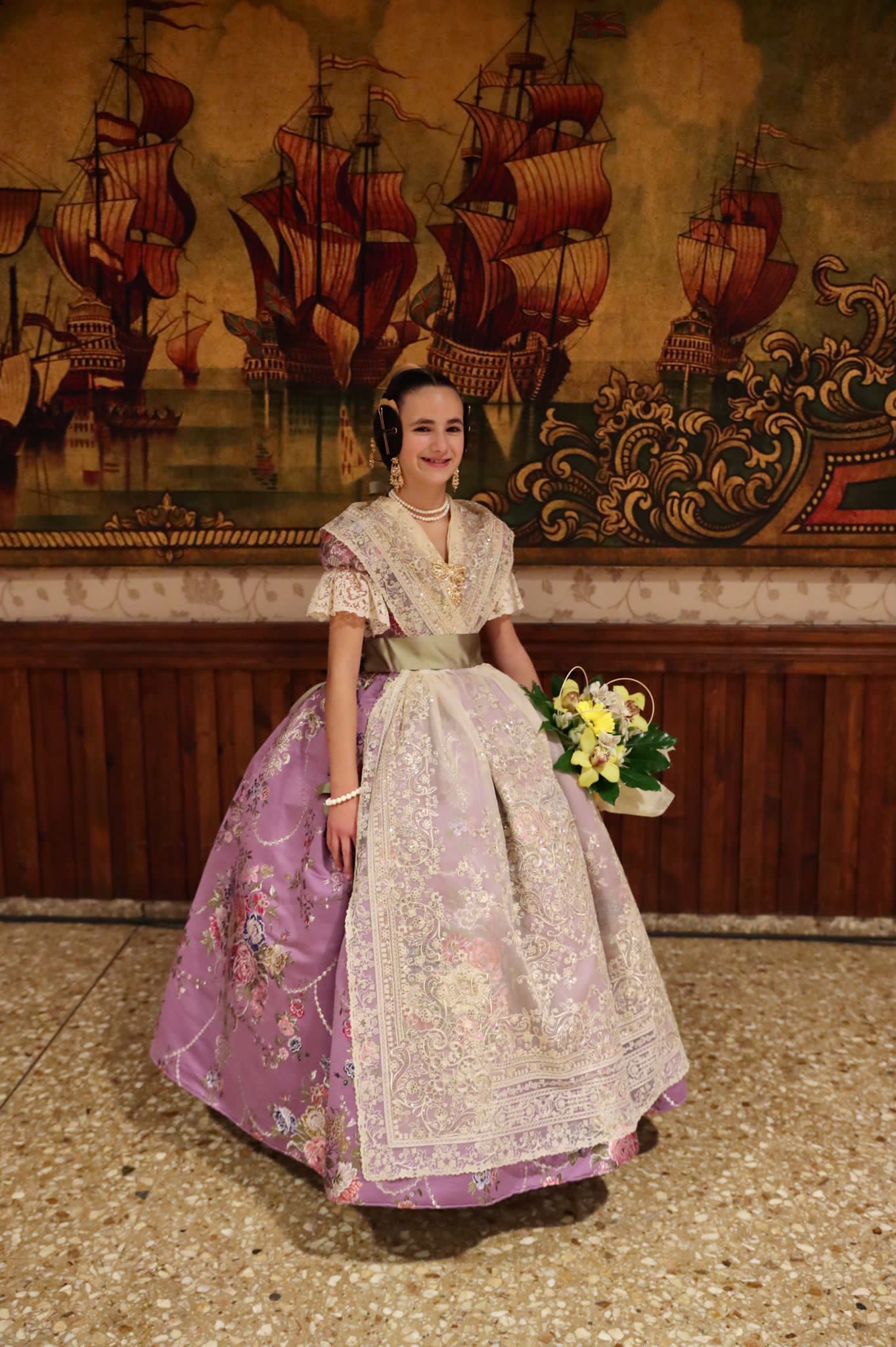 Por un lado, Nerea López Maestre, Fallera Mayor Infantil lució una sedalina de Sedica que tiene por nombre ‘Perseo’ en fondo malva sobre las que acopló unas manteletas de Artesanía Viana. El traje ha sido confeccionado por A l’Antiga Torrent. Acompañado del modelo ‘Mireia’ de cancanes de Margarita Vercher y con un aderezo de Vicent Asensi.