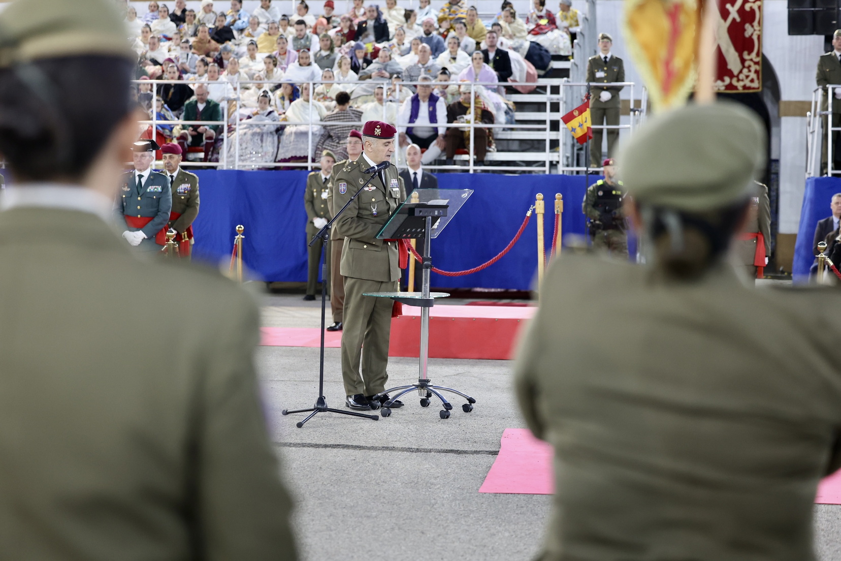 En su intervención, el teniente general Sáez Rocandio dedicó unas emotivas palabras a las víctimas y afectados por la tragedia del 29 de octubre, subrayando la importancia de la solidaridad y el apoyo mutuo. Además, resaltó los valores compartidos entre los falleros y las Fuerzas Armadas: