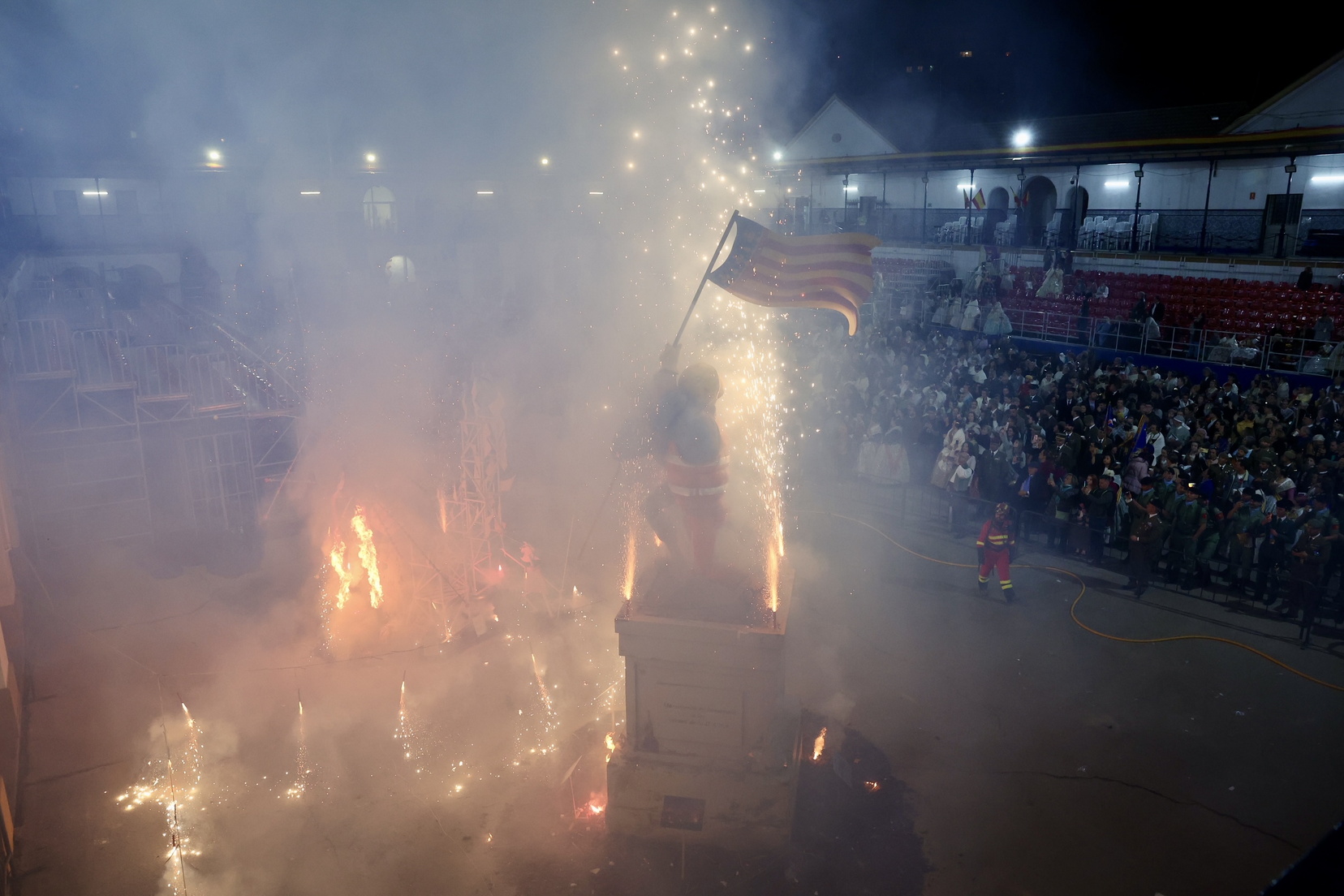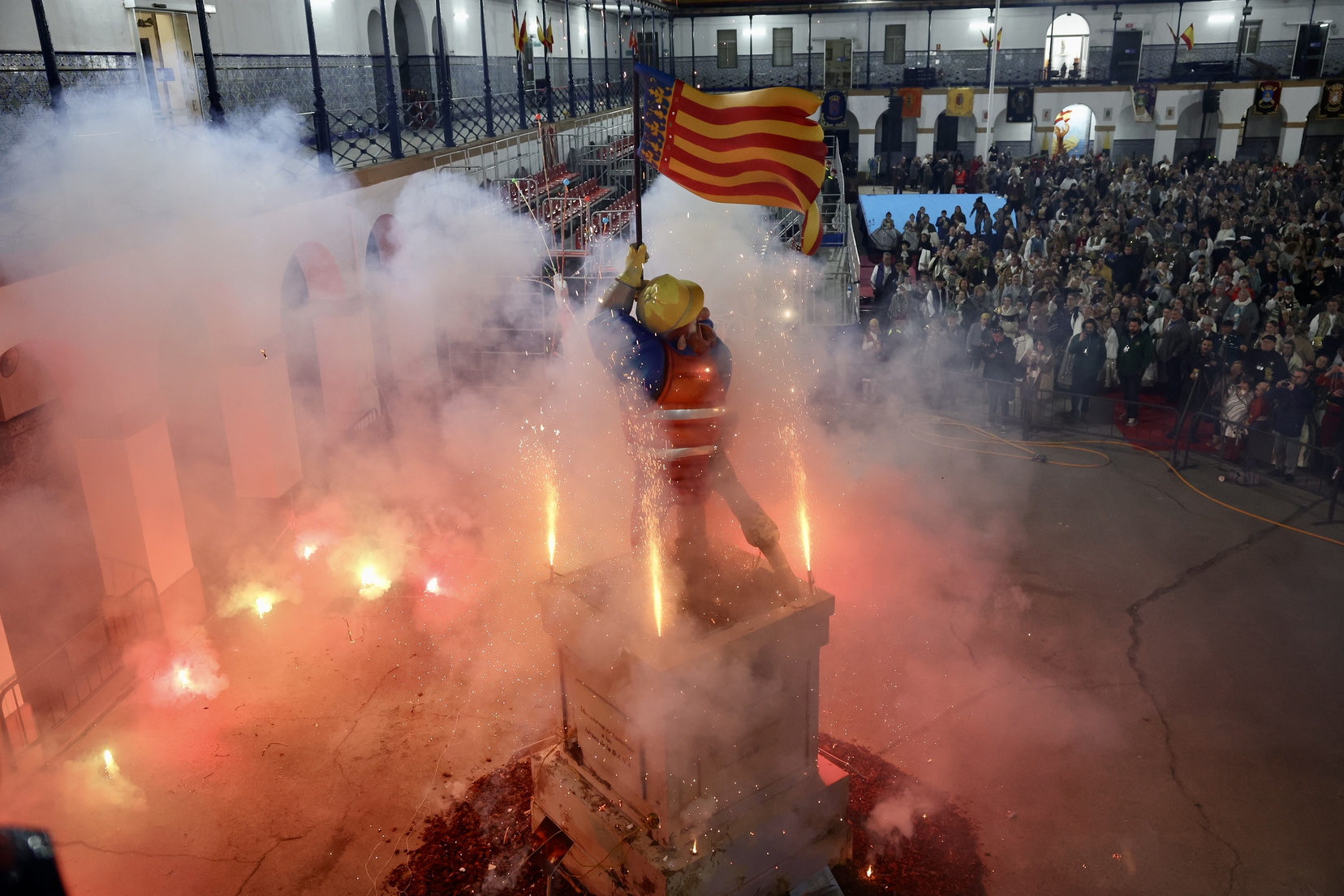 El evento concluyó con un castillo de fuegos artificiales y la tradicional Cremà de la falla, fusionando solemnidad y festividad en una celebración única.
