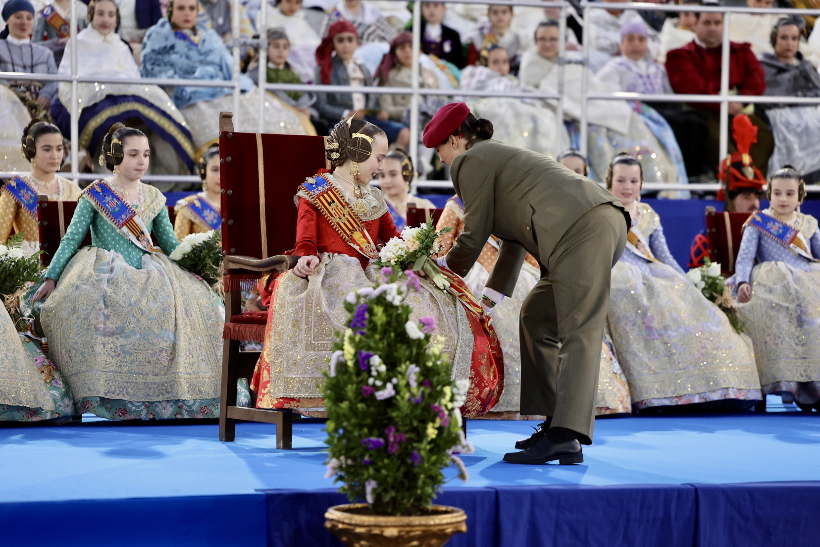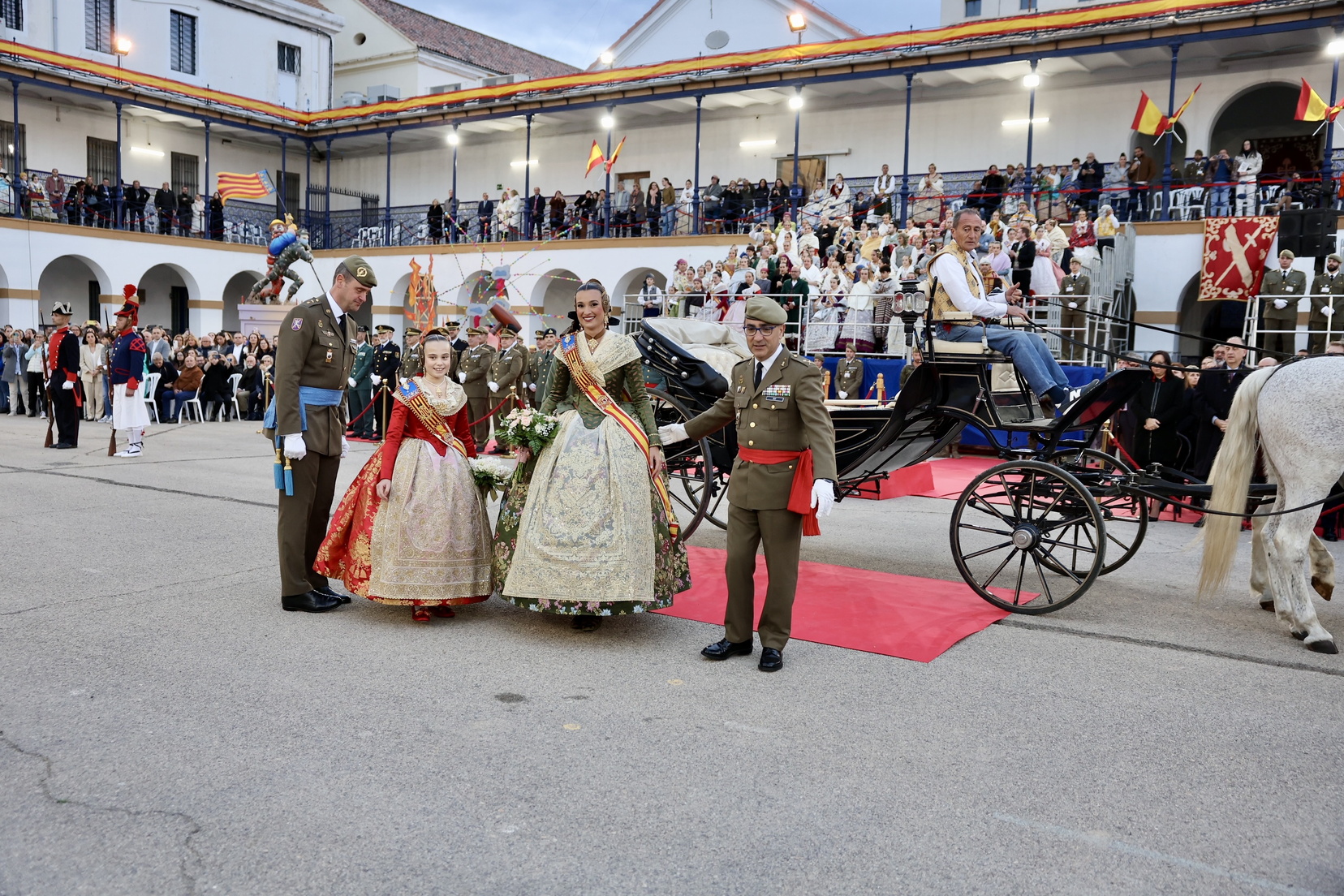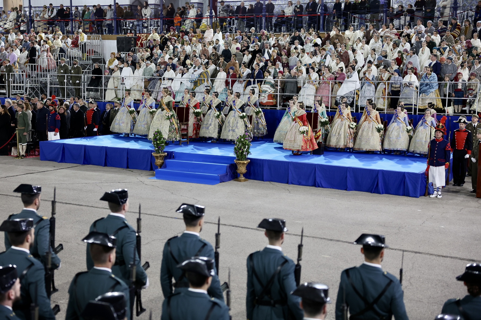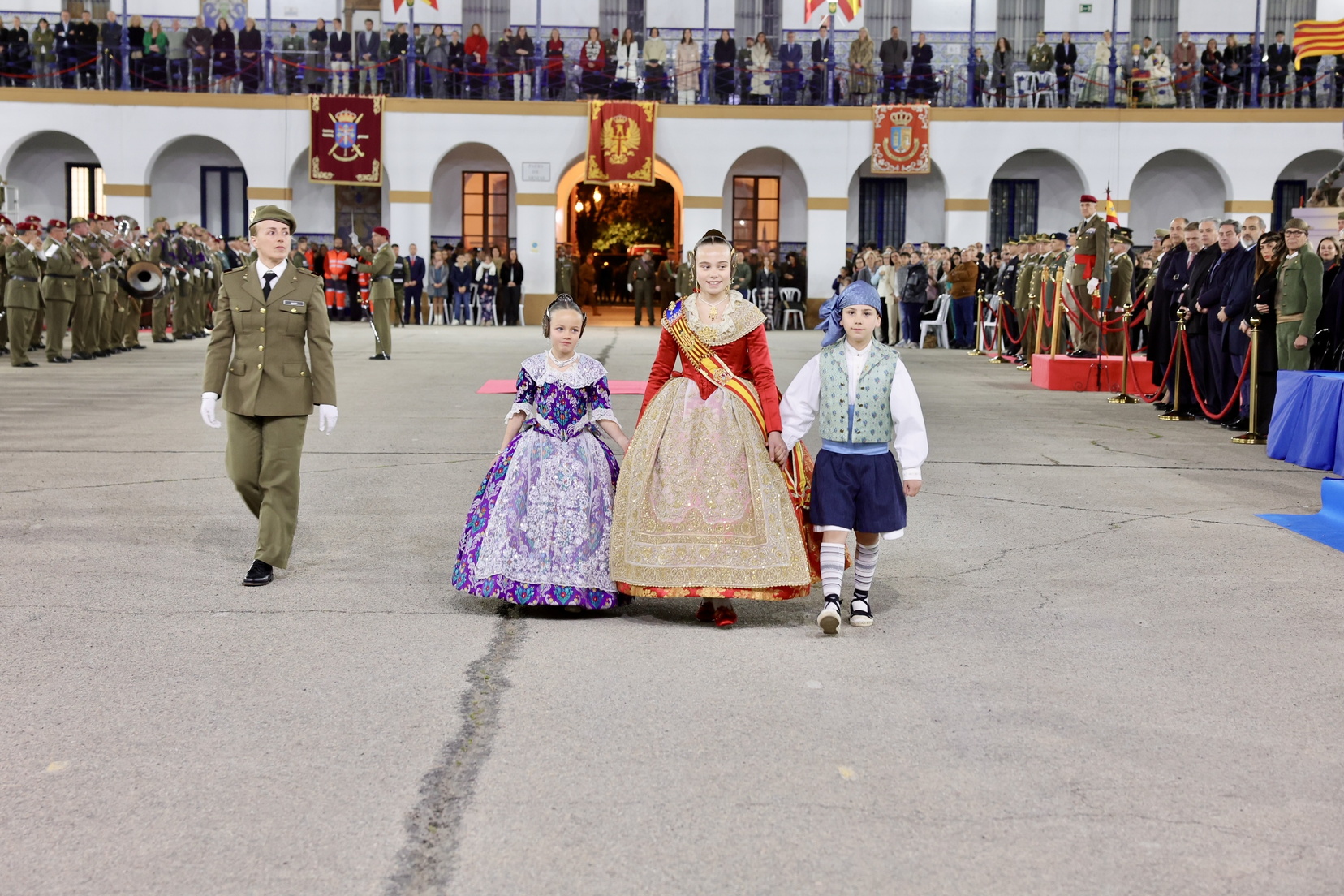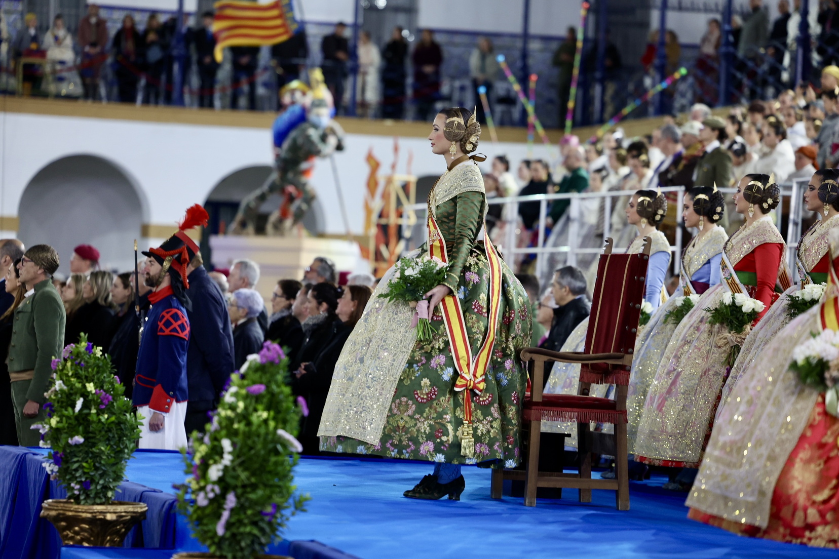 La fallera mayor de Valencia, Berta Peiró, y la fallera mayor infantil, Lucía García, asistieron junto con sus Cortes de Honor. También participaron destacadas autoridades civiles y militares, como: