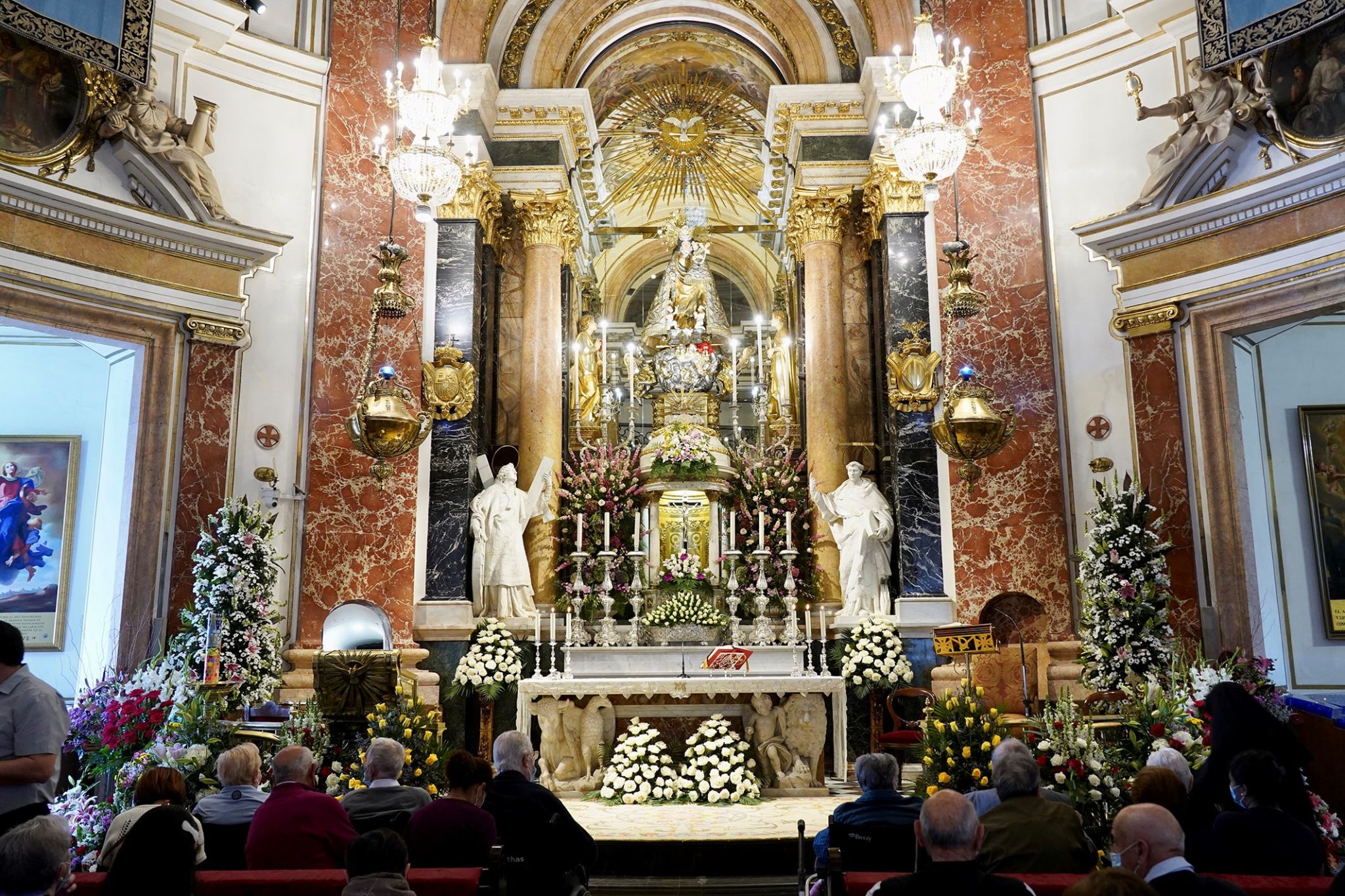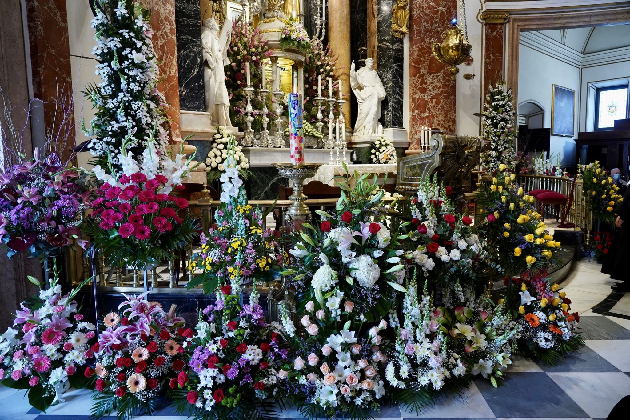 La tradicional Festa dels Floristes se celebra desde 1885 y con motivo de esta fiesta un grupo de representantes del gremio decoraron anoche el altar, las capillas, el presbiterio y el púlpito de la Basílica, para que esta mañana ya lucieran los ramos y arreglos florales donados por las propias floristerías y también por los floricultores,  según han indicado desde la Comisión de la Festa dels Floristes.