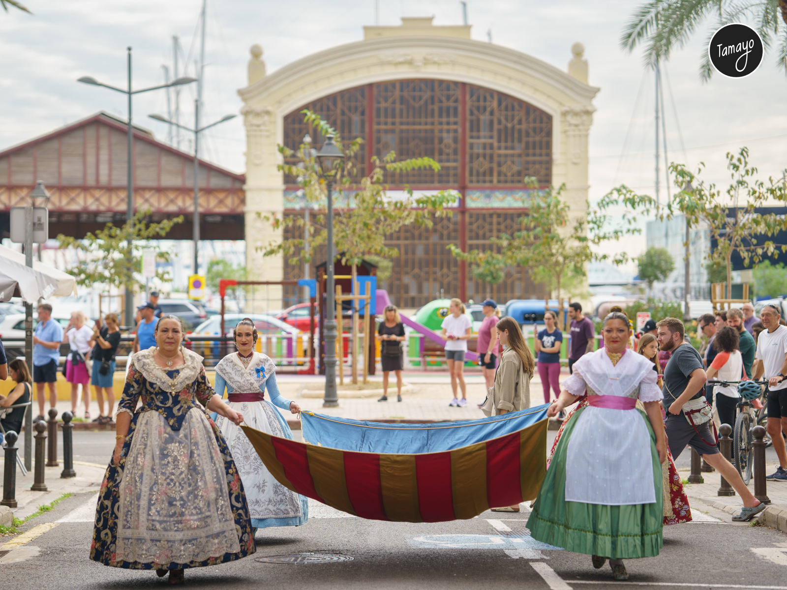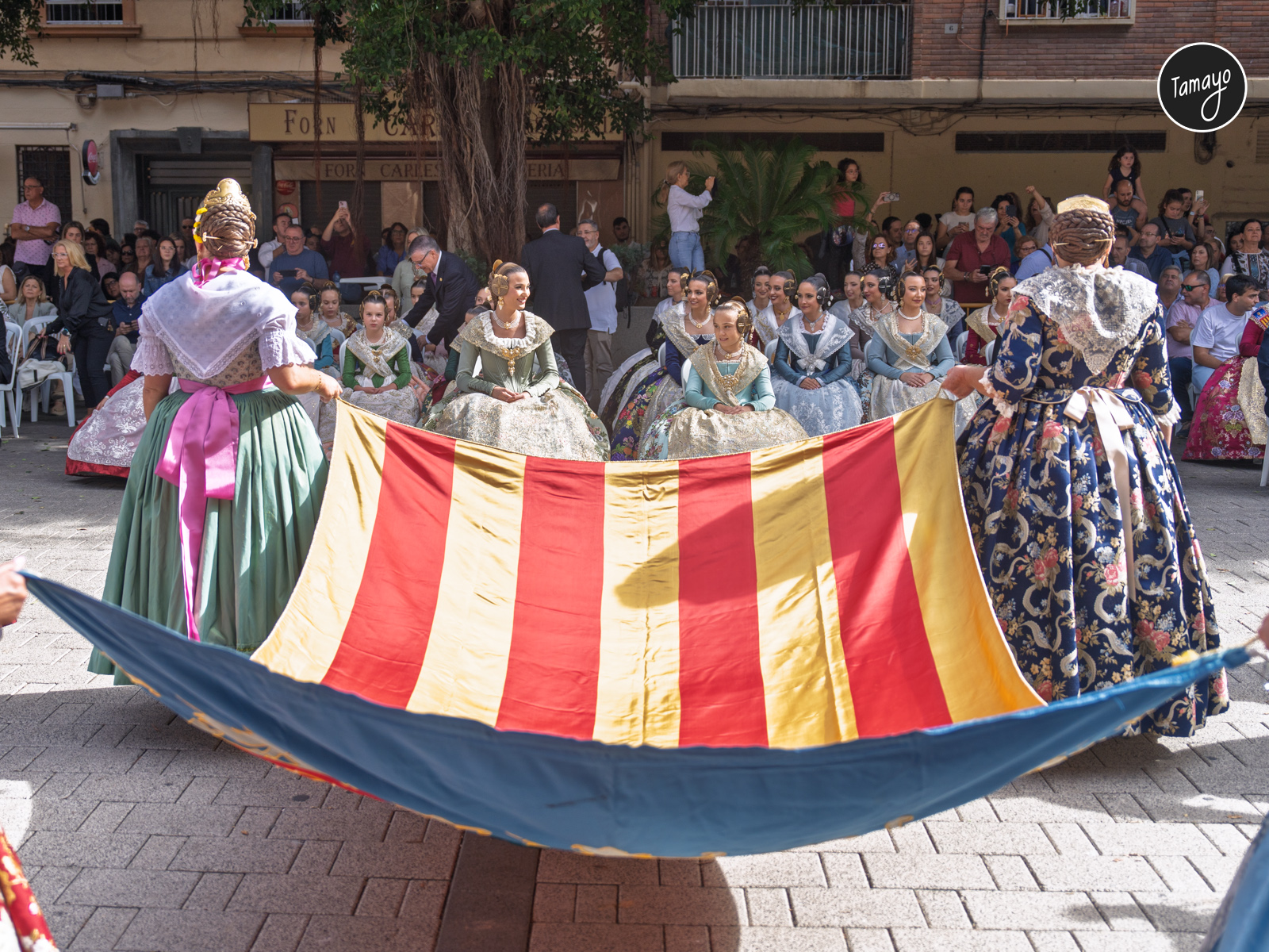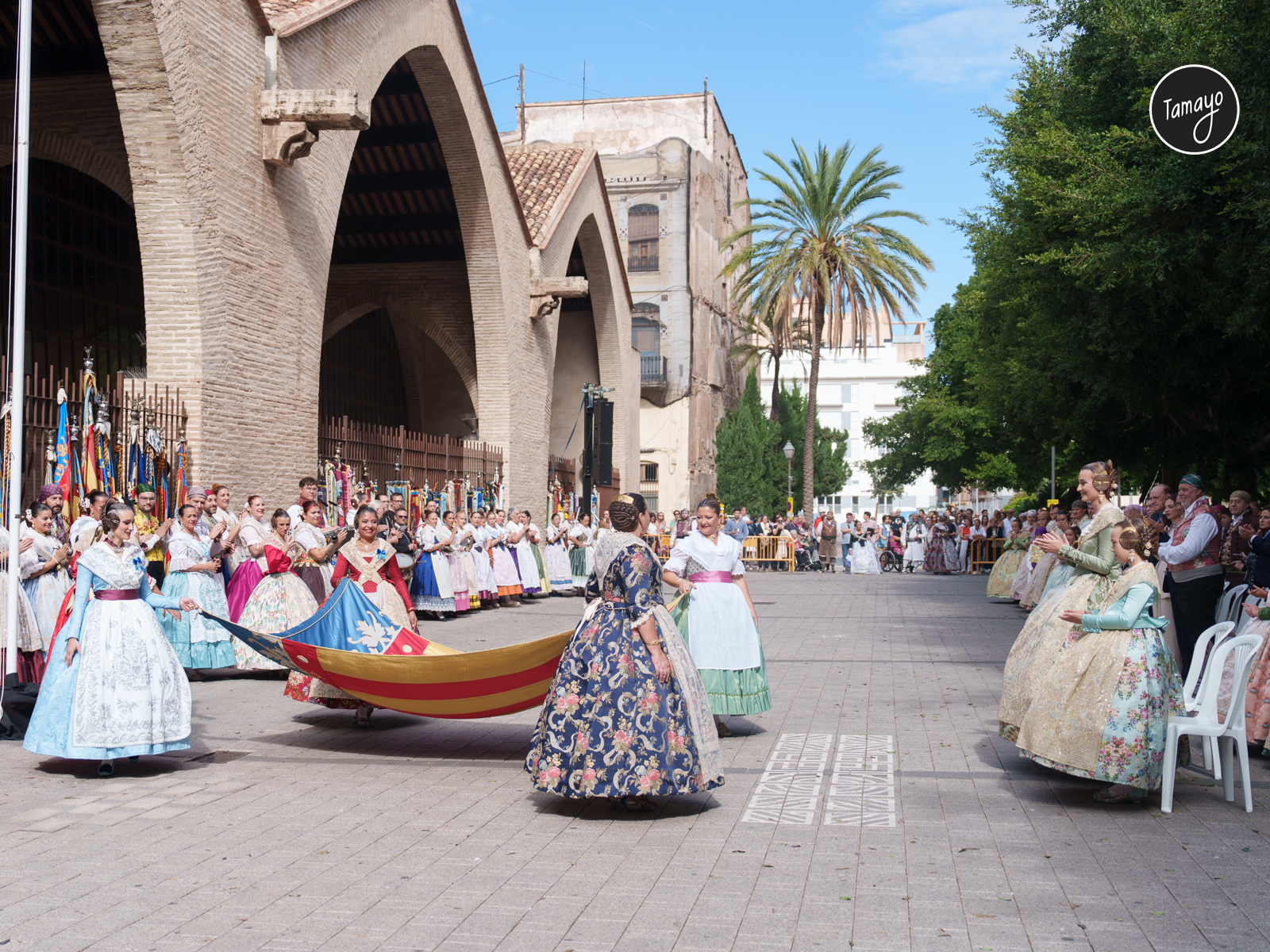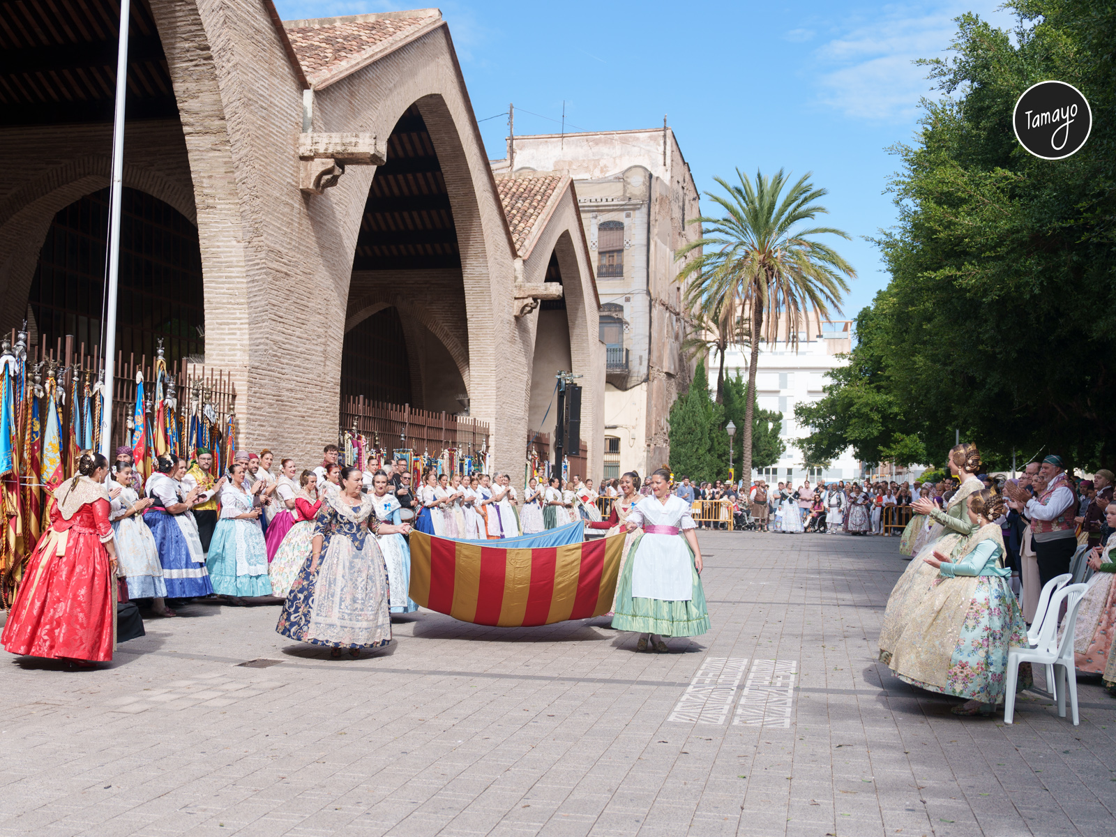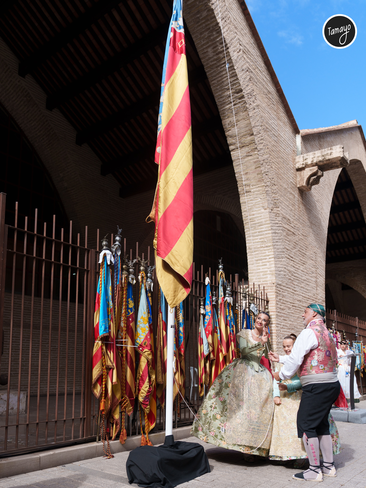 El recorrido culminó con la solemne izada de la Senyera en las Atarazanas, en un acto cargado de simbolismo que refuerza el compromiso de las comisiones y las máximas representantes del mundo fallero con las tradiciones y la cultura valenciana.