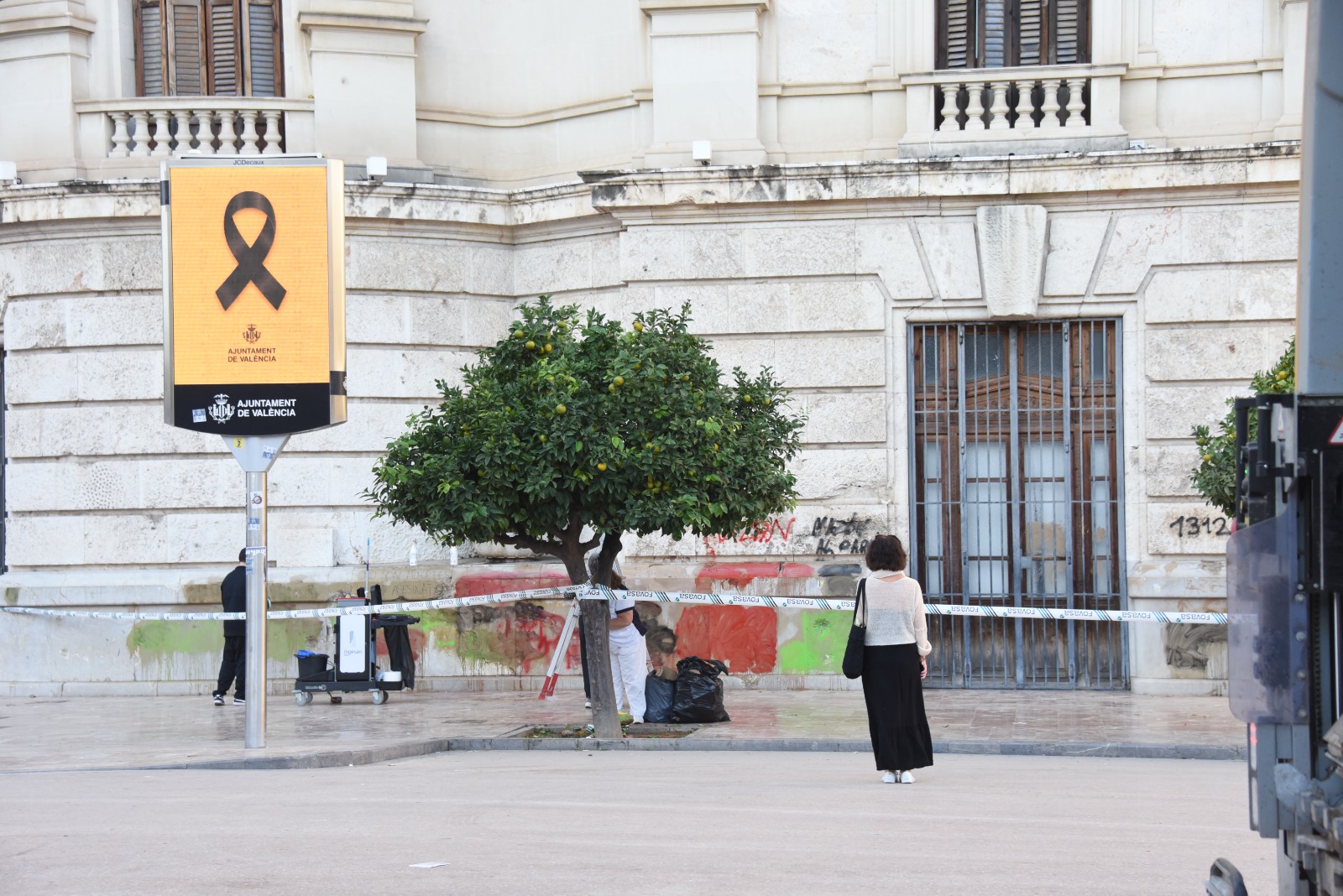 Al final de la marcha, en las inmediaciones de la plaza de la Virgen, se registraron nuevos enfrentamientos. Manifestantes arrojaron barro, sillas y otros objetos a los agentes, lo que derivó en otra intervención de los antidisturbios, quienes lograron reducir al menos a uno de los participantes violentos.
