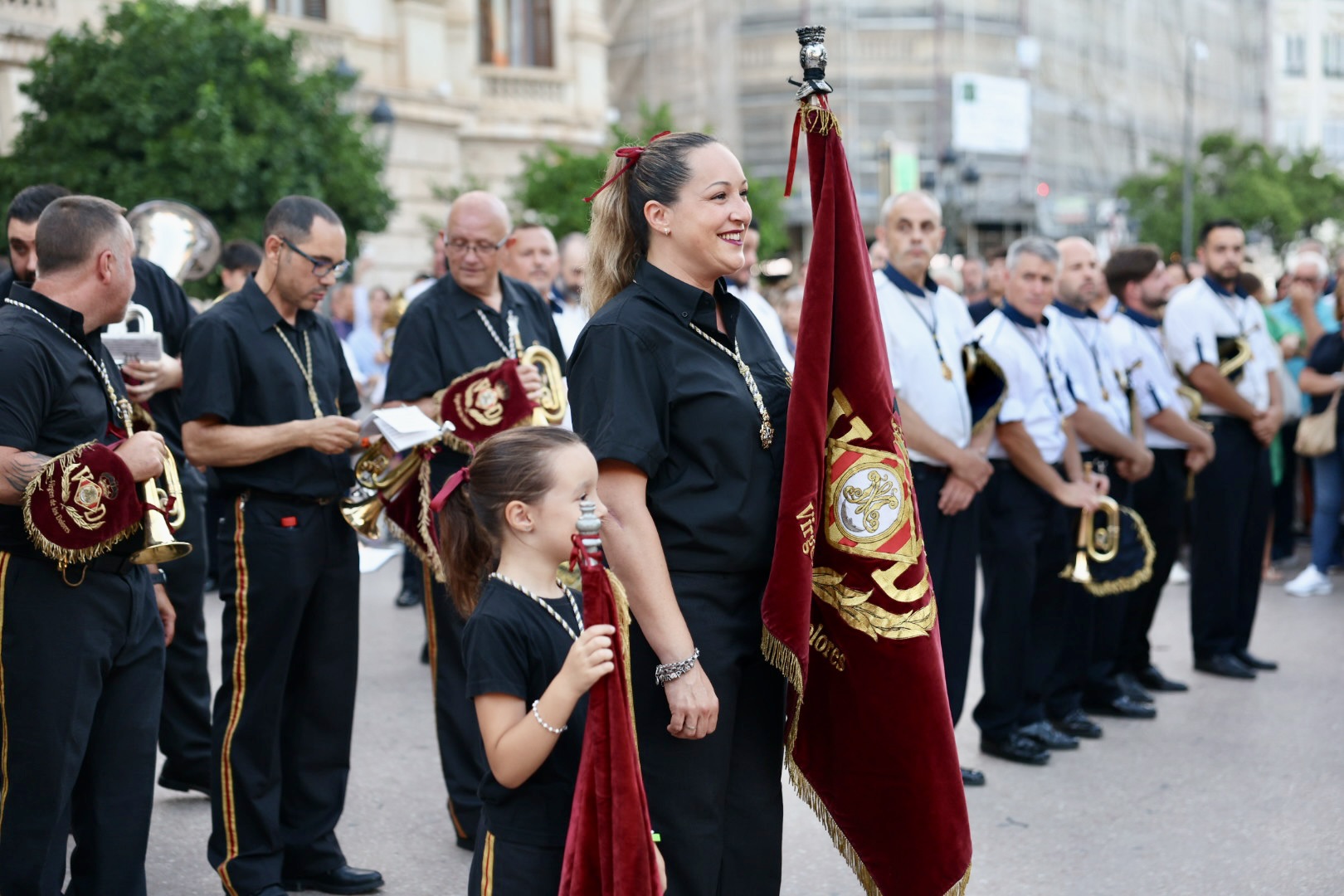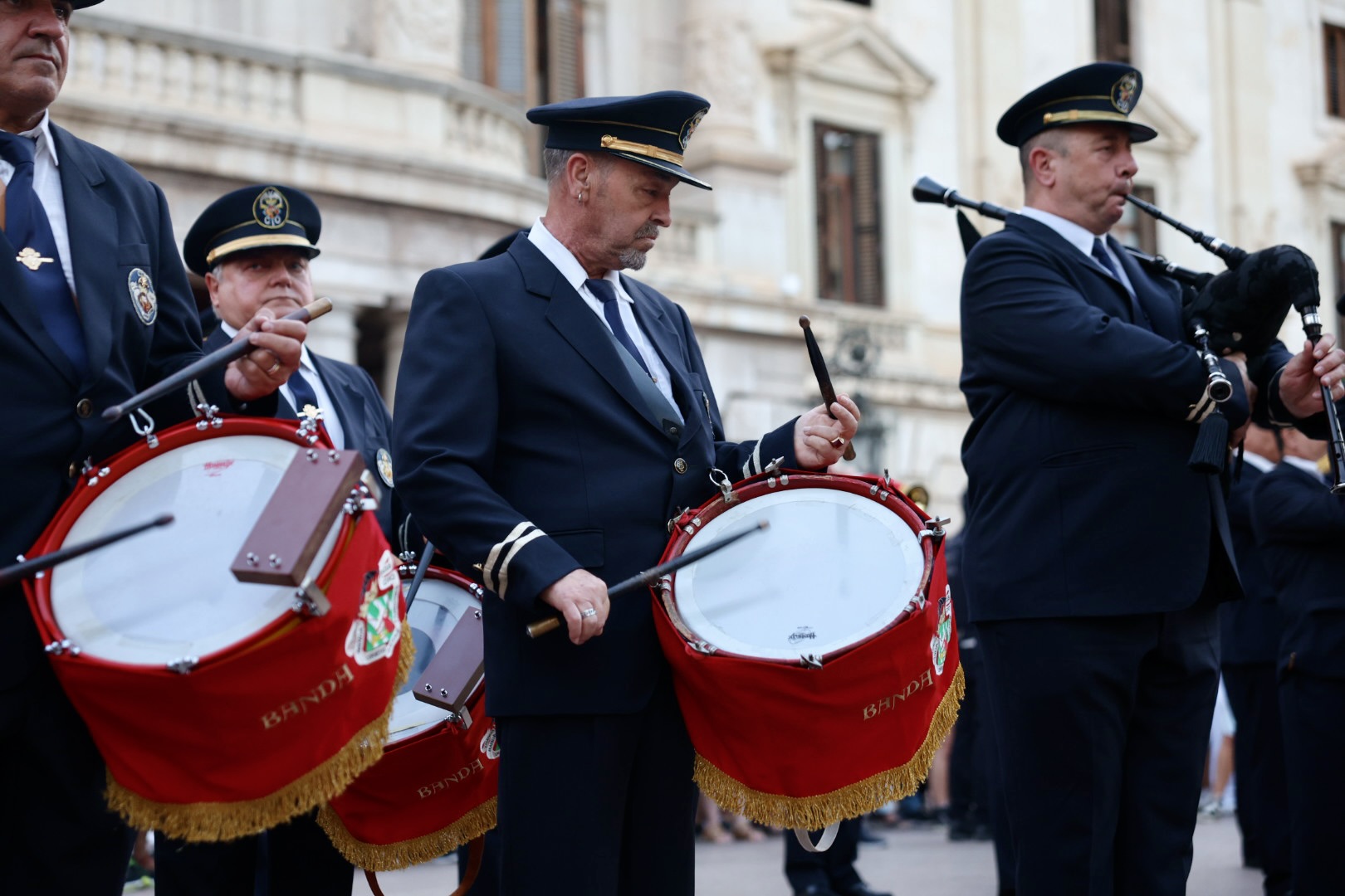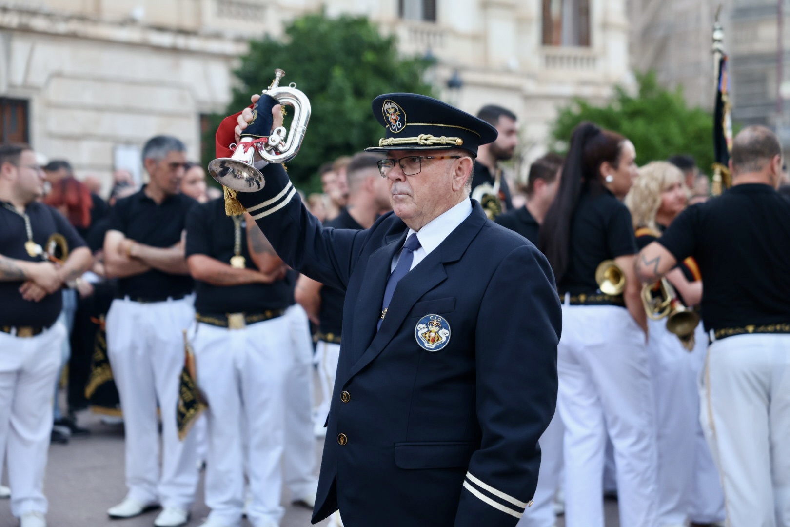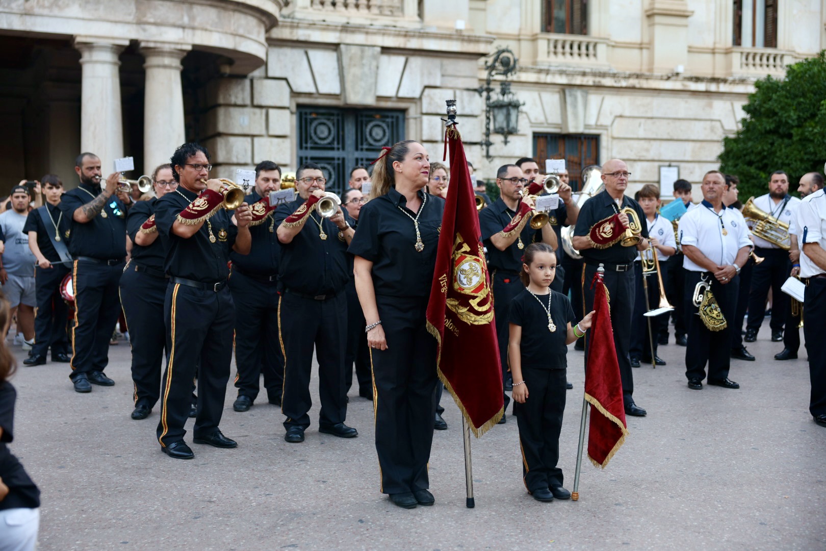 Un desfile y entrada de bandas de cornetas y tambores recorrerá la calle San Vicente hasta la plaza del Ayuntamiento, para confluir ante el balcón de la fachada principal del Ayuntamiento, donde cada formación interpretó unas piezas. Participaron en la comitiva las bandas de Cornetas, Gaitas y Tambores CIO, San Luís Beltrán, Canyamelar y Virgen de los Dolores.