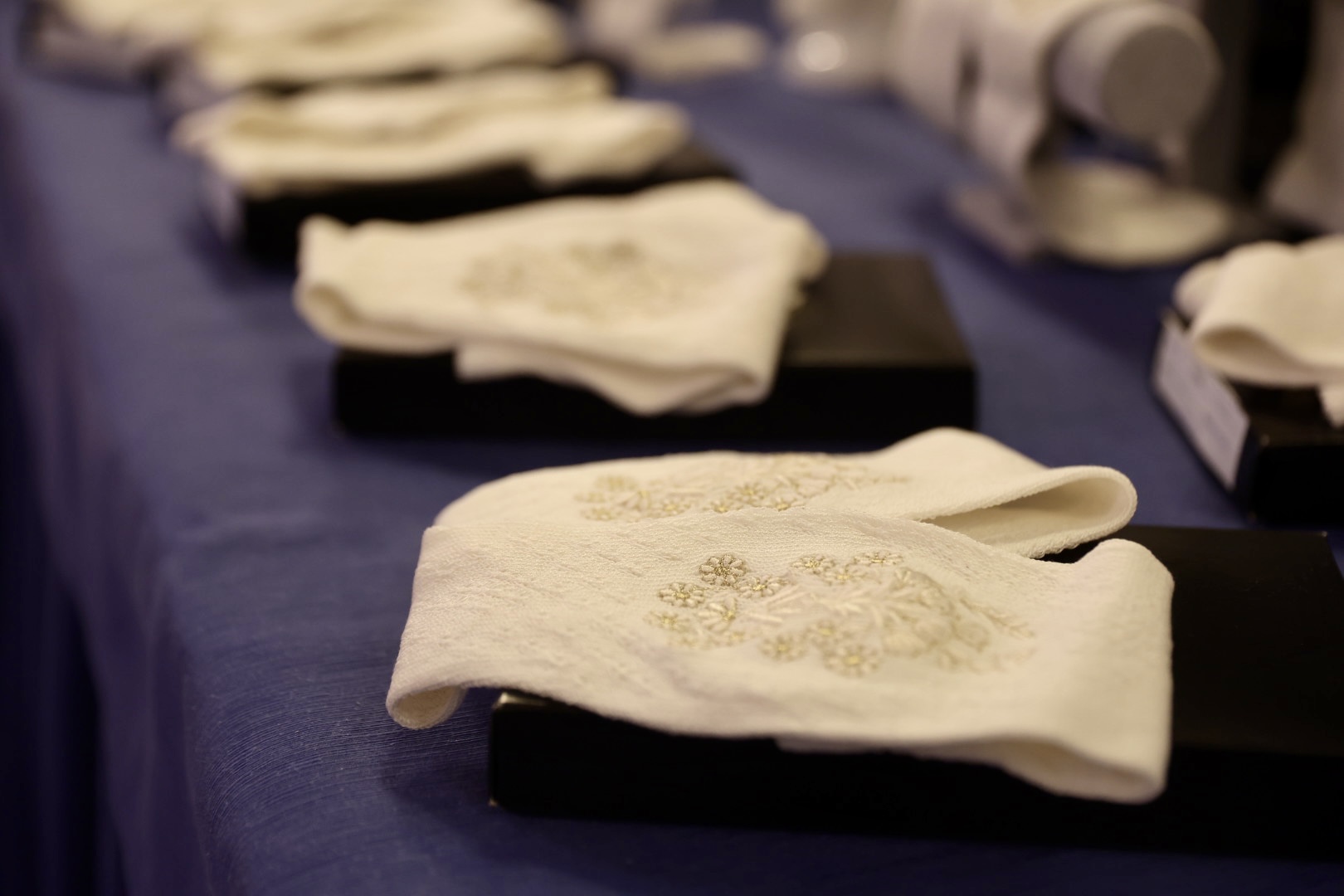 Elvira Bella ha confeccionado los calcetines del primer traje con un diseño personalizado y exclusivo con hilo de algodón y bordado con seda y metal oro, mientras que el segundo se ha realizado con un diseño exclusivo con hilo de algodón, y bordado en seda con un toque de color. Todo ello, realizado «con el máximo esmero y cariño», aseguran desde la firma.