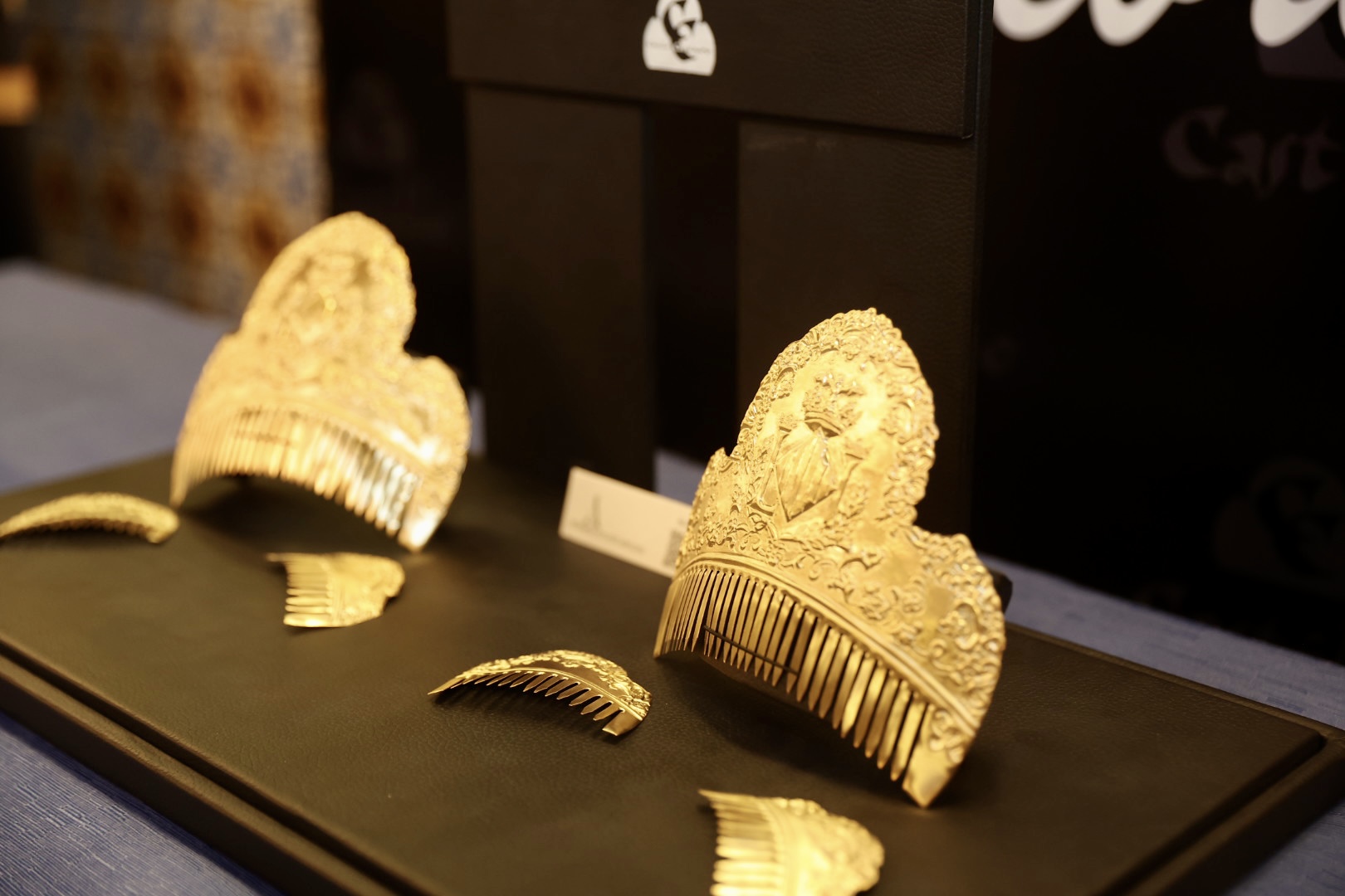 Alan Indumentaria afronta “uno de sus proyectos más importantes hasta la fecha”: la elaboración de las segundas peinetas oficiales para las FFMMV y CCHH. Tras varios meses de trabajo y junto a su equipo de diseñadores ha conseguido crear y reproducir cuatro modelos trabajados “al agua” totalmente exclusivos. Reciben el nombre de Atenea (CHI), Olympo (CH), Paula (FMIV) y Laura (FMV) y están bañados en oro mate, “perfectos para complementar los trajes del Siglo XVIII”.