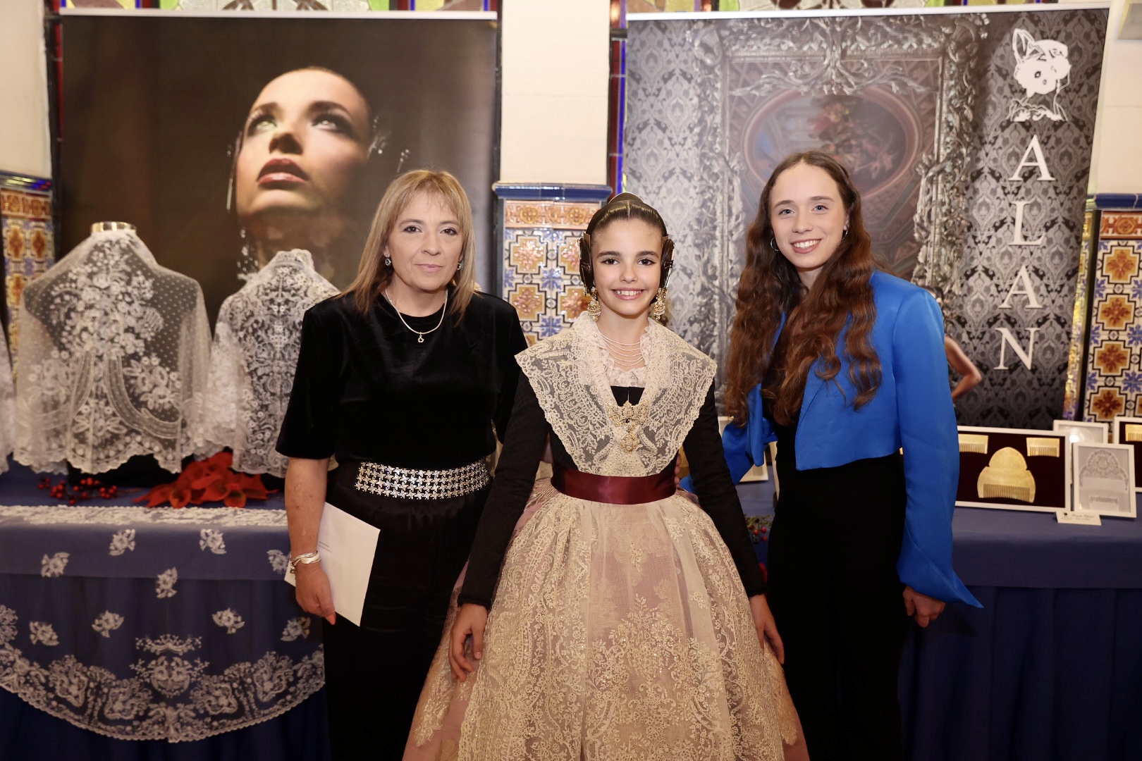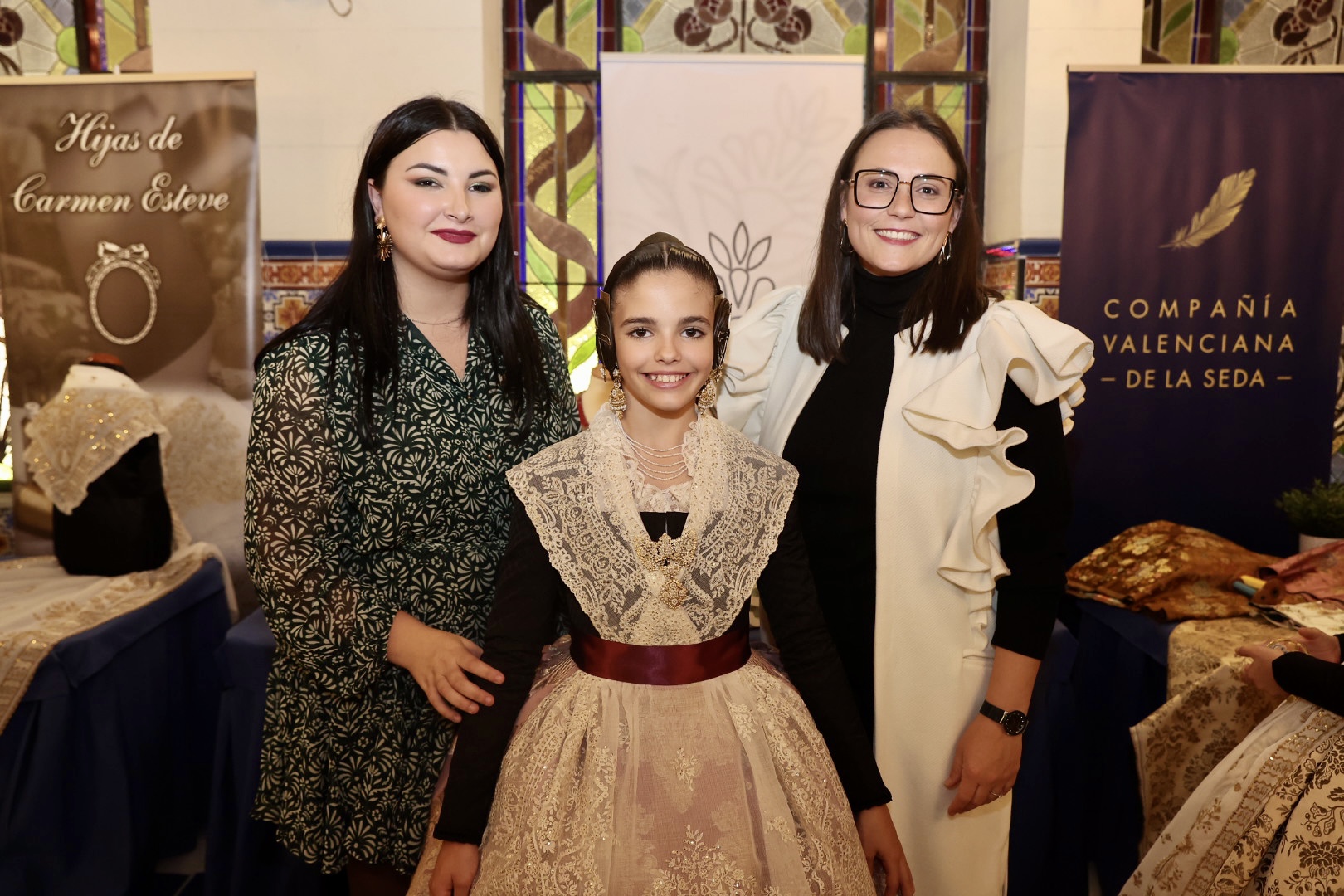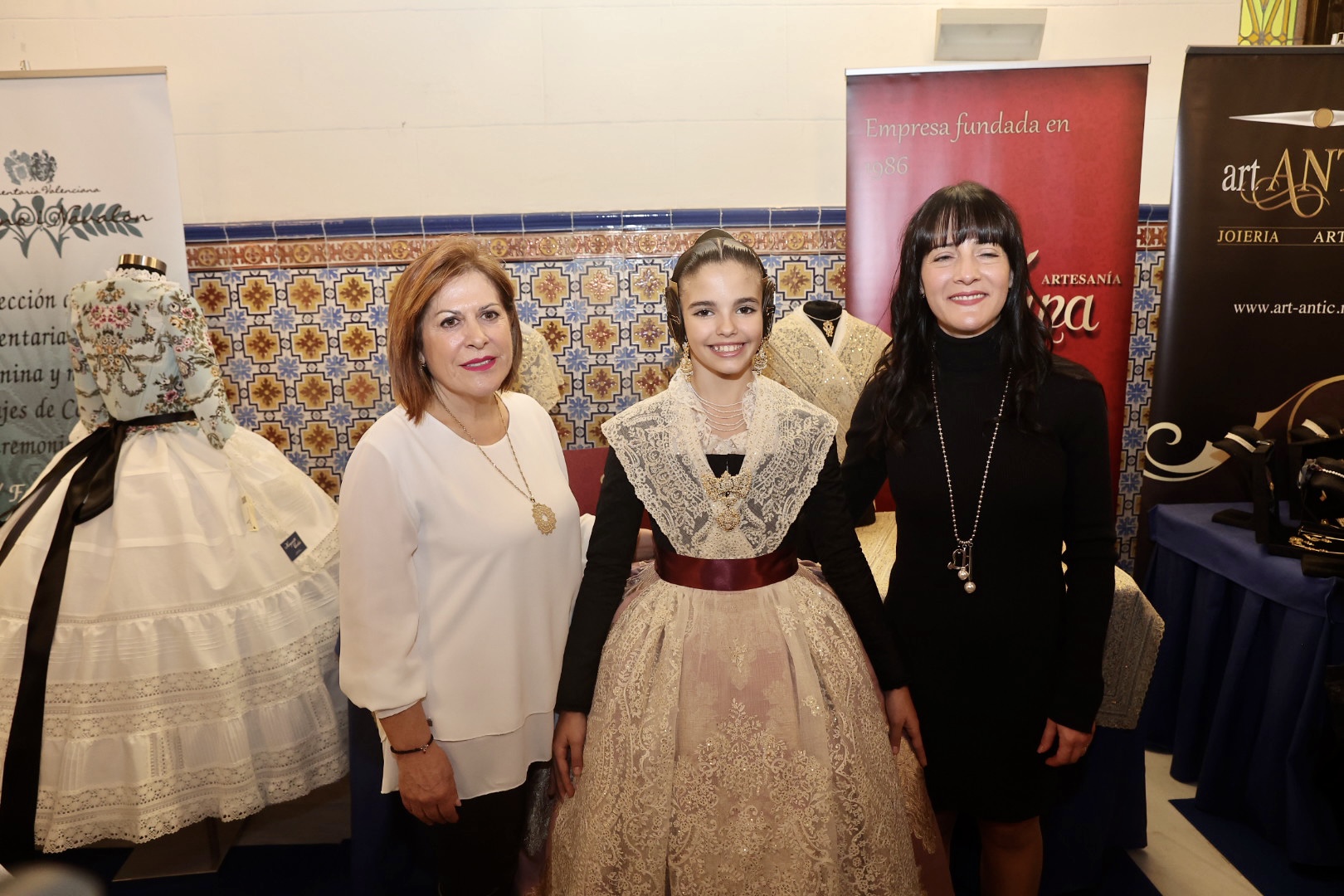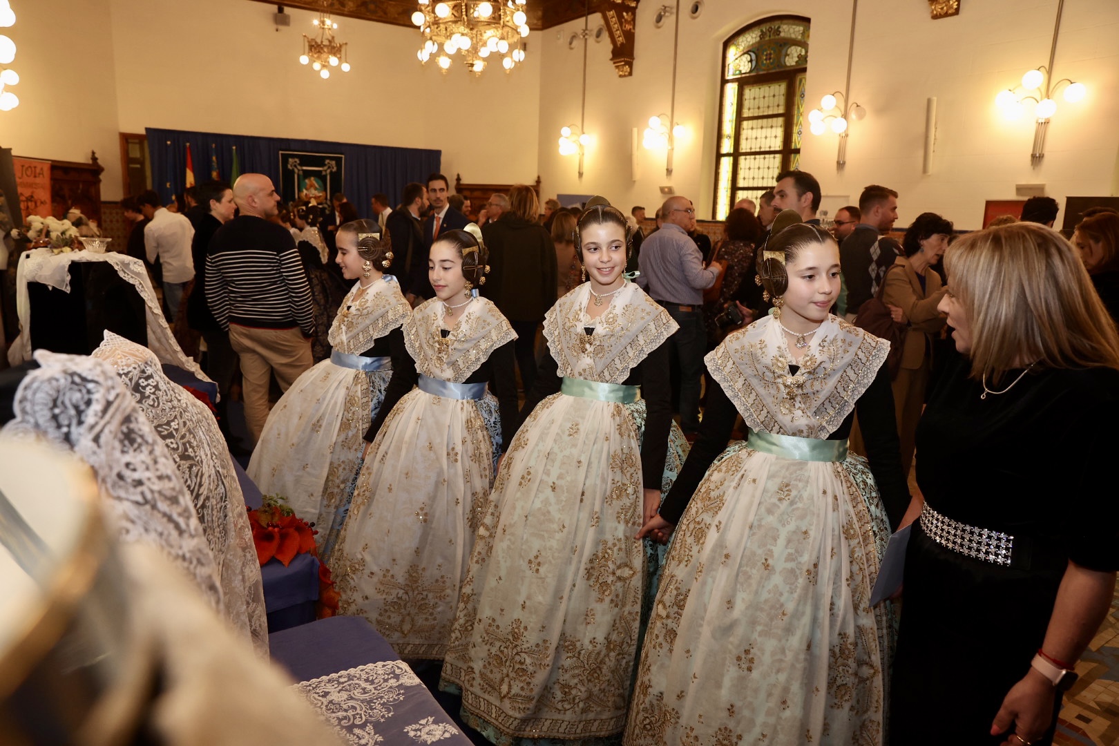 Para la Fallera Mayor Infantil de València, la puntilla del primer traje ha sido inspirada en un dibujo antiguo para una elegante manga de farol que proporciona una puntilla “muy dulce” para niñas por su “delicado y minucioso” detalle de trabajo. Para el segundo traje consiste en una puntilla de valencienne con plumeti alrededor de las flores en la que el dibujo describe revesadas y desenfadadas ondas que le proporcionan “una gran riqueza y personalidad”. Para el primer traje de la Corte Infantil, cuenta con una con gran profusión floral, una pieza con abundancia de pequeños detalles en los bordados desde los pétalos de las flores a cada hoja que conforma su dibujo, mientras que para el segundo es un encaje de valencienne hilo de algodón formando ondas florales, una puntilla” deliciosa y muy dulce muy apropiada para niñas” con “delicado” trabajo.