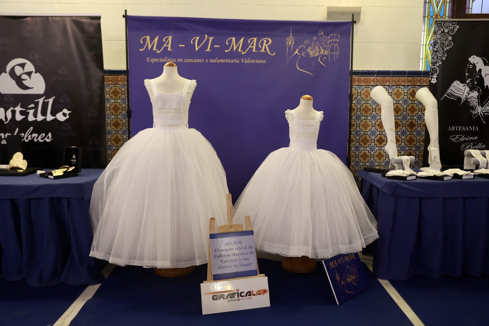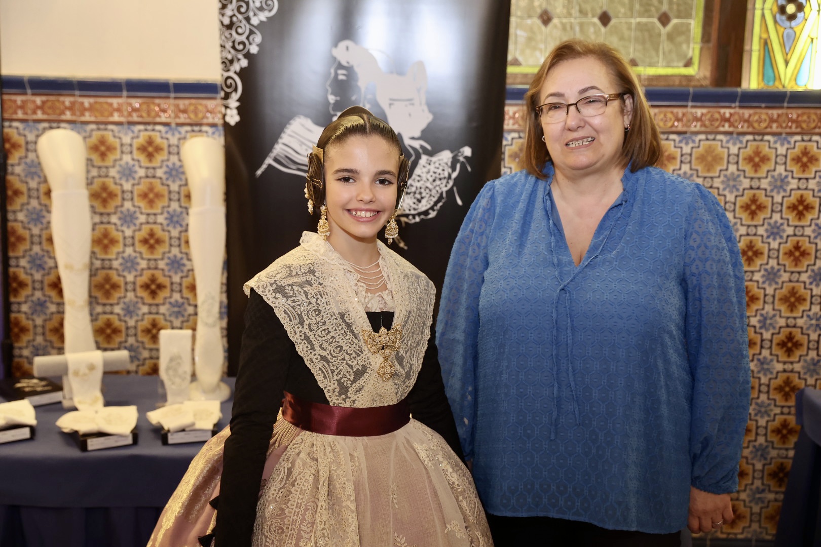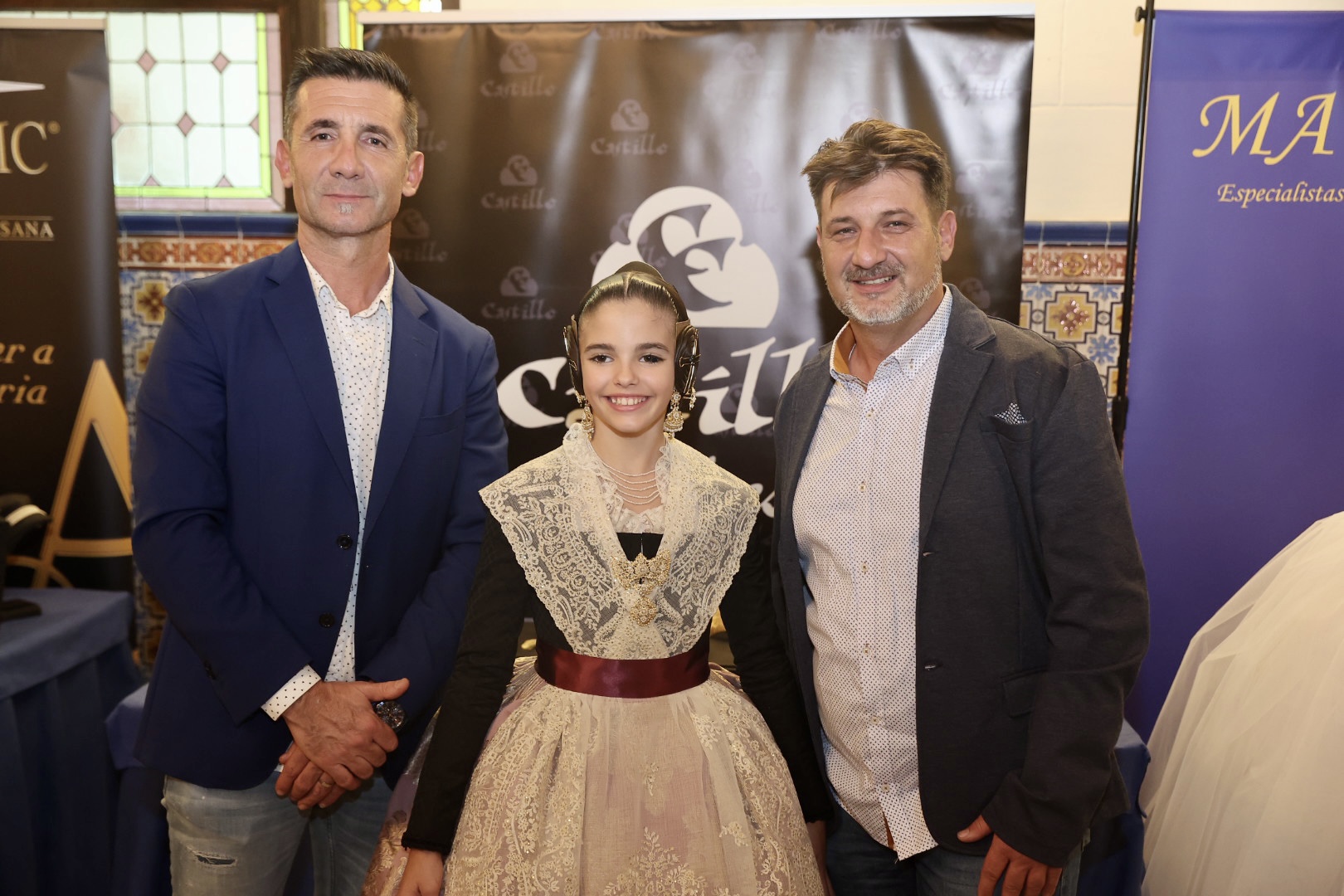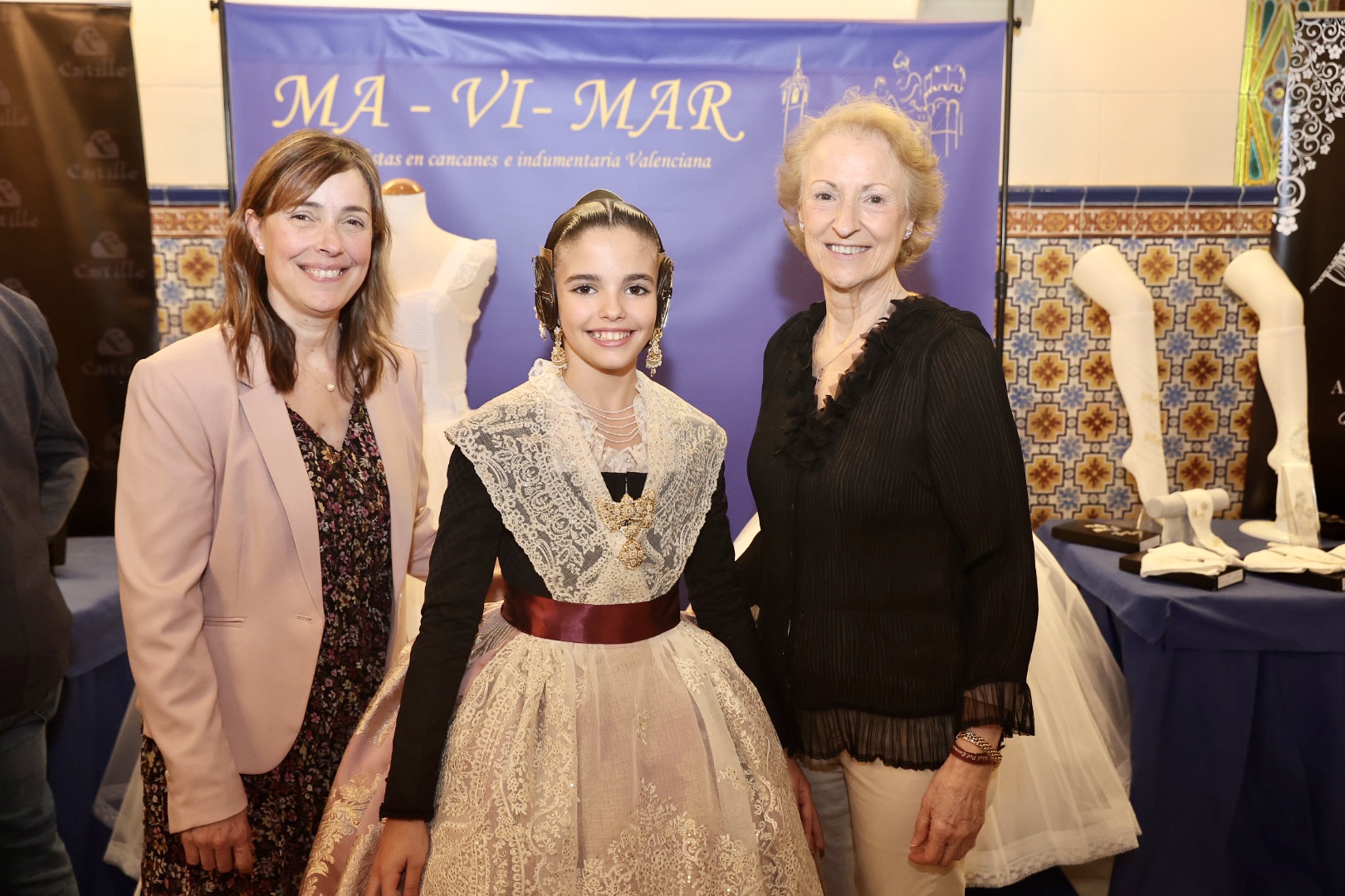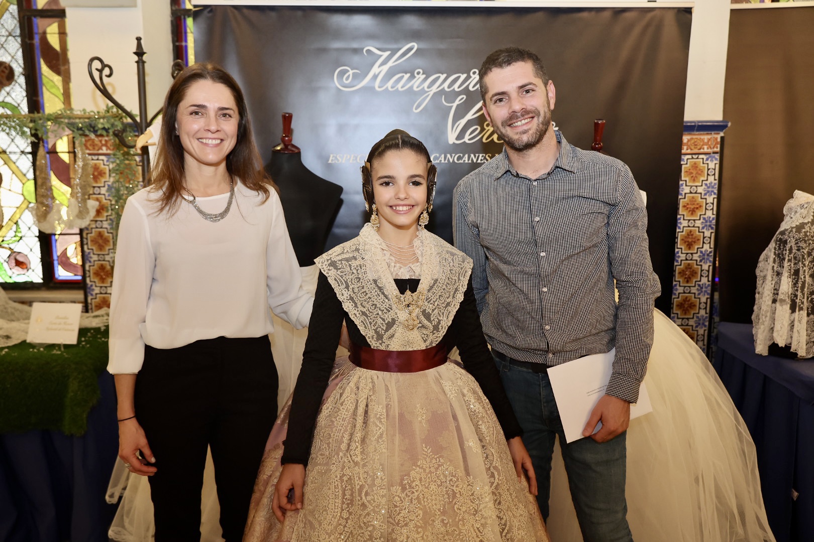 Para la Fallera Mayor Infantil de València, la puntilla del primer traje ha sido inspirada en un dibujo antiguo para una elegante manga de farol que proporciona una puntilla “muy dulce” para niñas por su “delicado y minucioso” detalle de trabajo. Para el segundo traje consiste en una puntilla de valencienne con plumeti alrededor de las flores en la que el dibujo describe revesadas y desenfadadas ondas que le proporcionan “una gran riqueza y personalidad”. Para el primer traje de la Corte Infantil, cuenta con una con gran profusión floral, una pieza con abundancia de pequeños detalles en los bordados desde los pétalos de las flores a cada hoja que conforma su dibujo, mientras que para el segundo es un encaje de valencienne hilo de algodón formando ondas florales, una puntilla” deliciosa y muy dulce muy apropiada para niñas” con “delicado” trabajo.