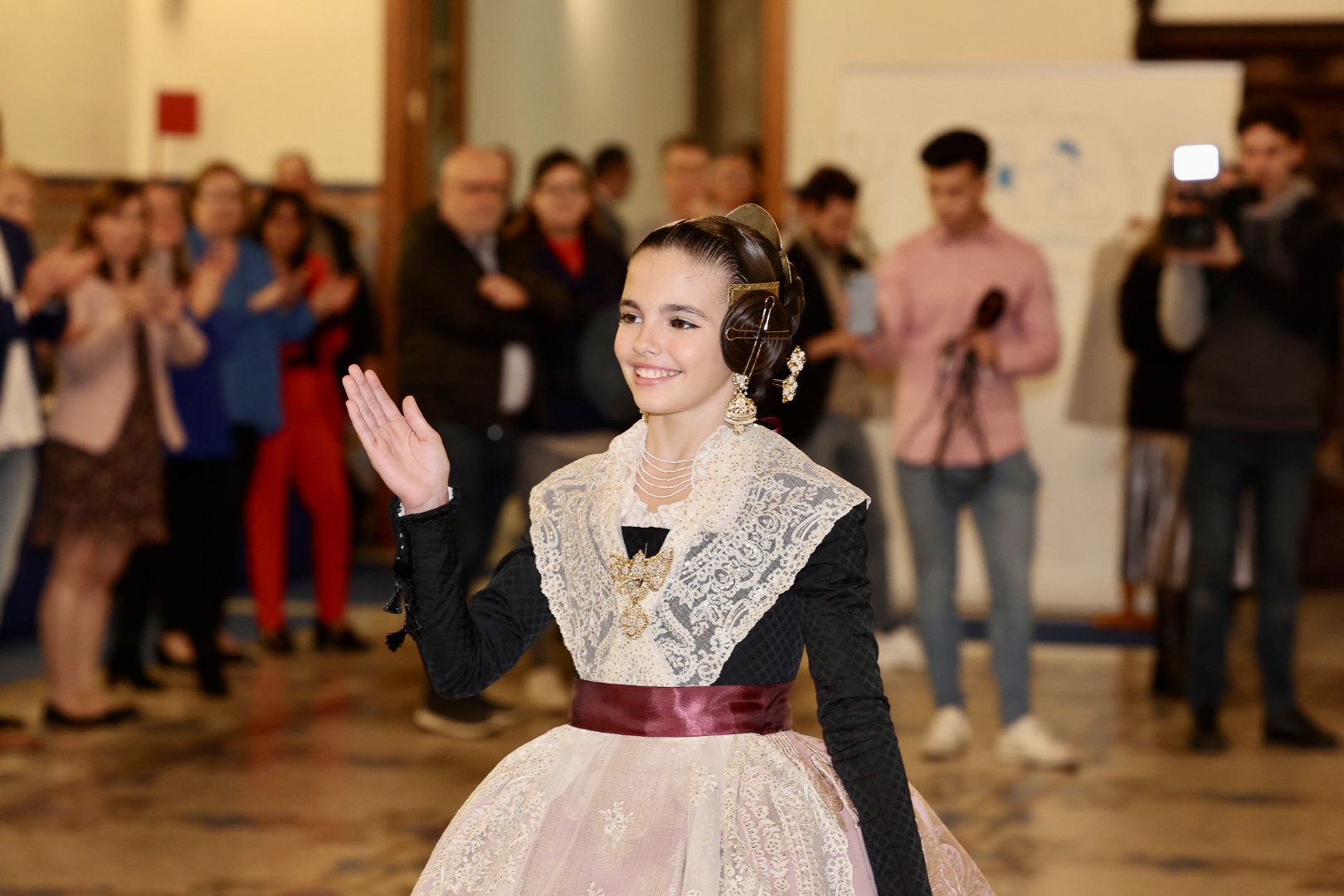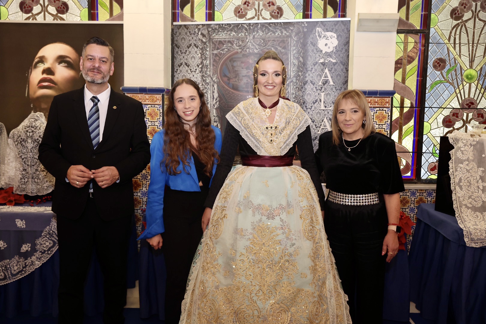 Sonia López Elena, Fallera Mayor 2024 de la Falla Conde Salvatierra – Cirilo Amorós, deslumbrante con su maravilloso espolín Francia el día de su Exaltación.