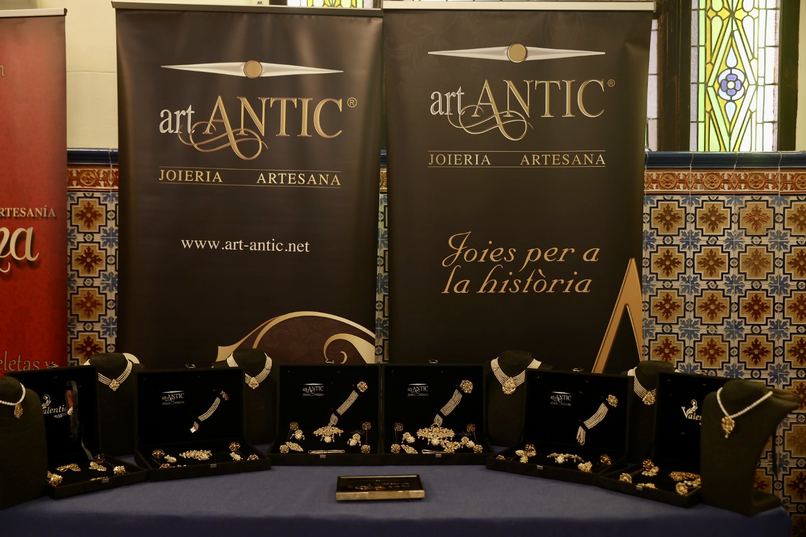 En cuanto a los aderezos del segundo traje, Art Antic ha configurado para la Corte Infantil una pieza de a tres realizada en baño de oro y piedras de espejuelo blanco, compuesta por joia, pendientes, pinchos, aguja y manilla. Se complementa con collar de bolitas de nacar y una medalla de la Virgen realizada a juego en plata de ley chapado en oro. Por su lado, el aderezo de la Corte Mayor es modelo barquillo realizado en baño de oro y piedras con montura cuadrada color esmeralda y colgantes de perla natural, compuesto por joia, pendientes, pinchos, aguja y manilla, y que se complementa con collar de bolitas de nacar y una medalla de la Virgen realizada a juego en plata de ley chapada en oro.