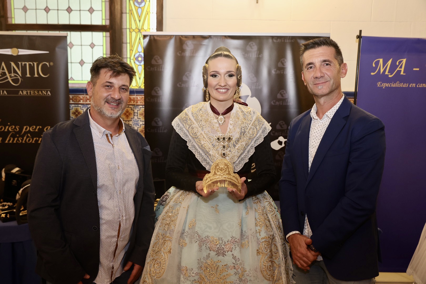 Castillo Cinceladores se ha encargado de las peinetas para el traje del siglo XIX, diseñadas «siguiendo los métodos más artesanales» y con cincelado a mano de todas las piezas, bañadas en oro. Los diseños están basados en reproducciones de dibujos antiguos, como la mayoría de sus trabajos. Además, como es habitual, las peinetas de las Falleras Mayores de València están realizadas con el escudo de la ciudad de València y todas las siluetas y dibujos cuentan con temas florales «característicos» de la empresa.