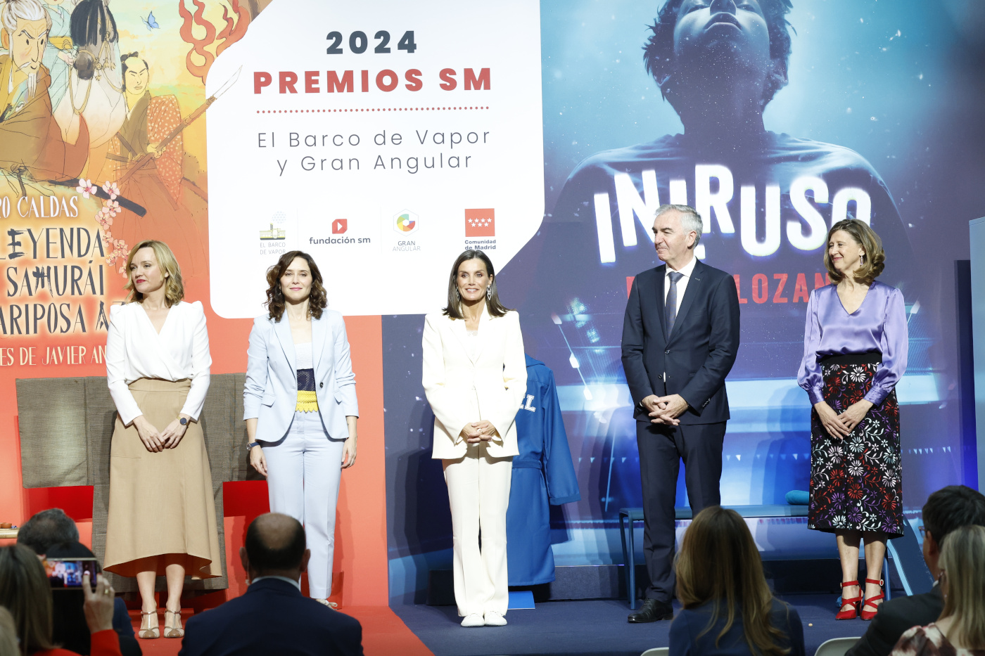 Tras su reaparición el pasado lunes en un concierto organizado por la Fundación Princesa de Girona en el Teatro Real, la reina Letizia ha continuado con su apretada semana de trabajo presidiendo el acto de entrega de los Premios SM de Literatura Infantil y Juvenil ‘El Barco de Vapor’ y ‘Gran Angular’, donde se honró a los autores premiados Pedro Caldas y David Lozano. En este acto se ha llevado todo el protagonismo el gesto de Isabel Díaz Ayuso con la reina Letizia.