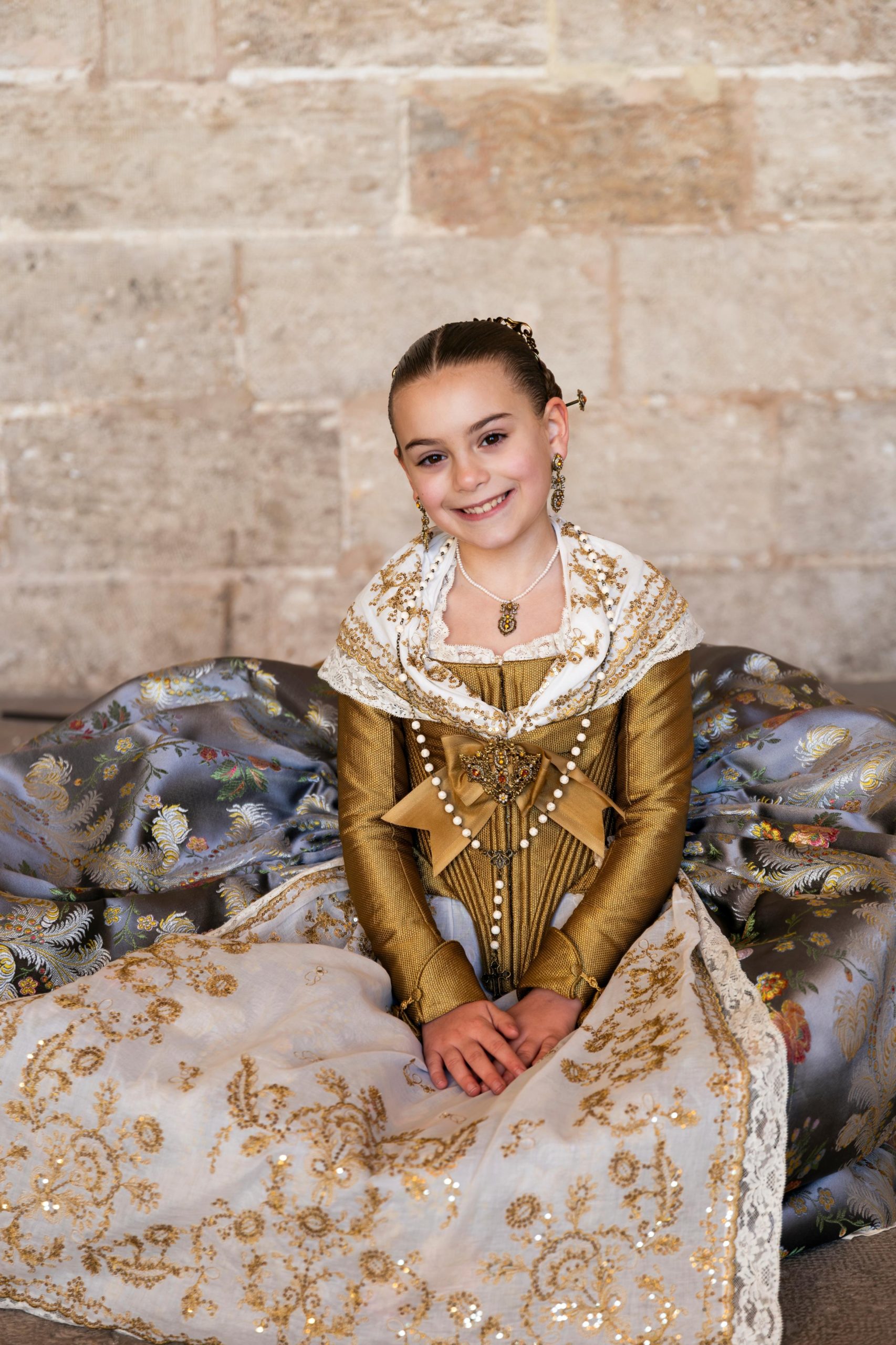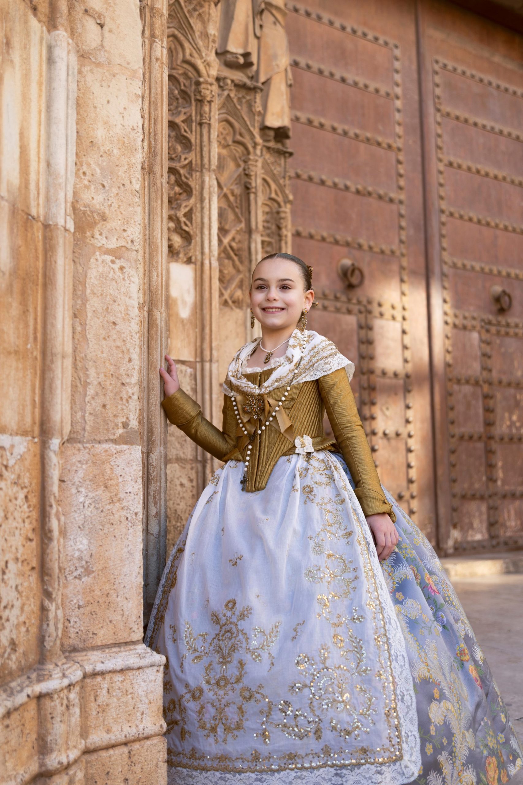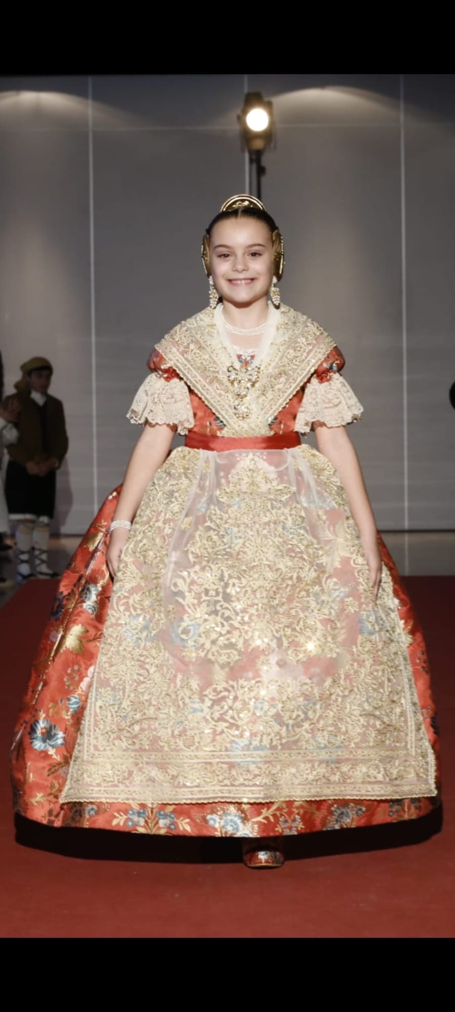 Lola Cañadas Jordá, Fallera Mayor Infantil de la Falla San Vicente–Periodista Azzati, ha conquistado corazones no solo por su dulzura, sino también por una indumentaria fallera cargada de historia, tradición y emoción familiar.