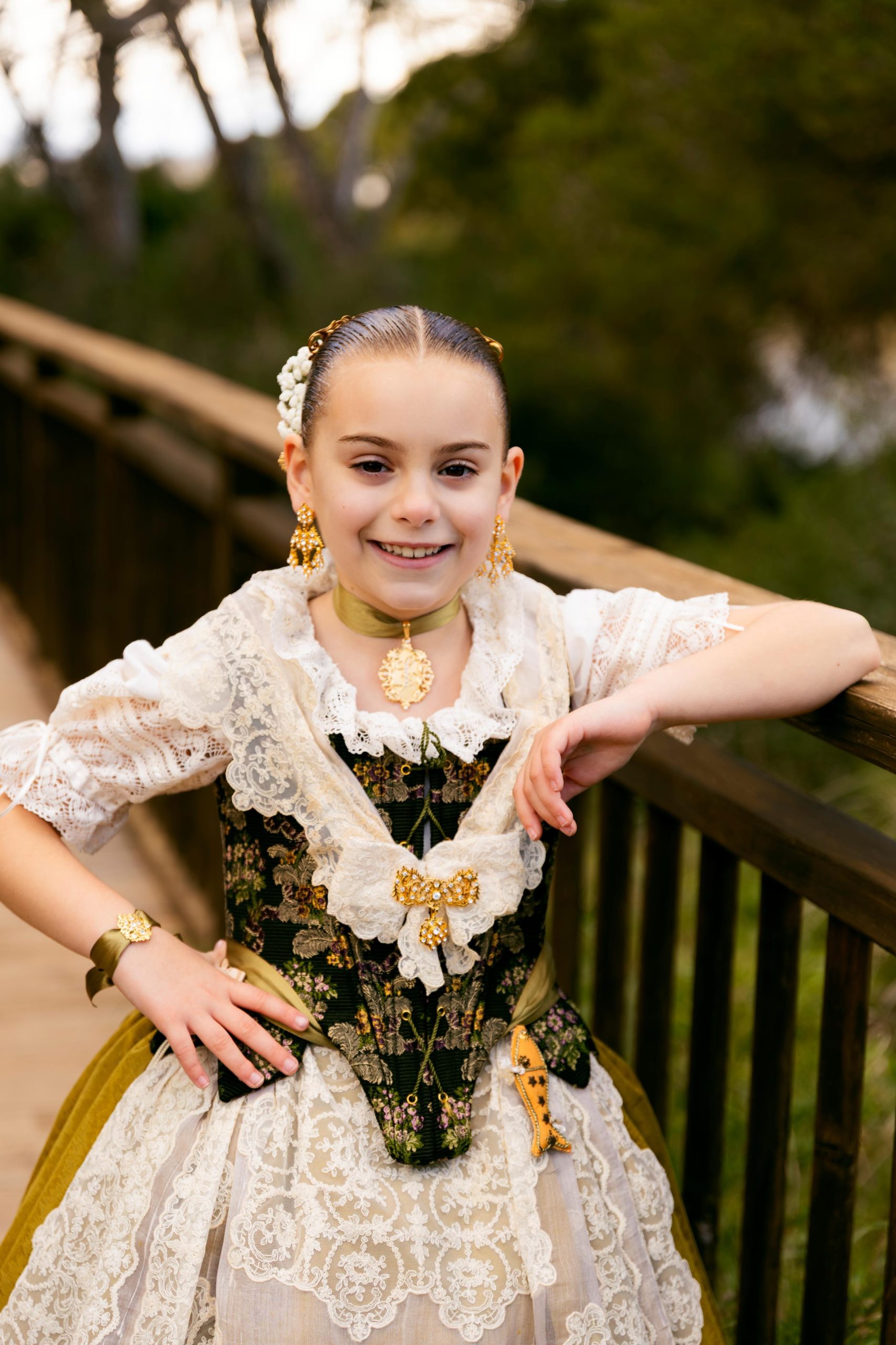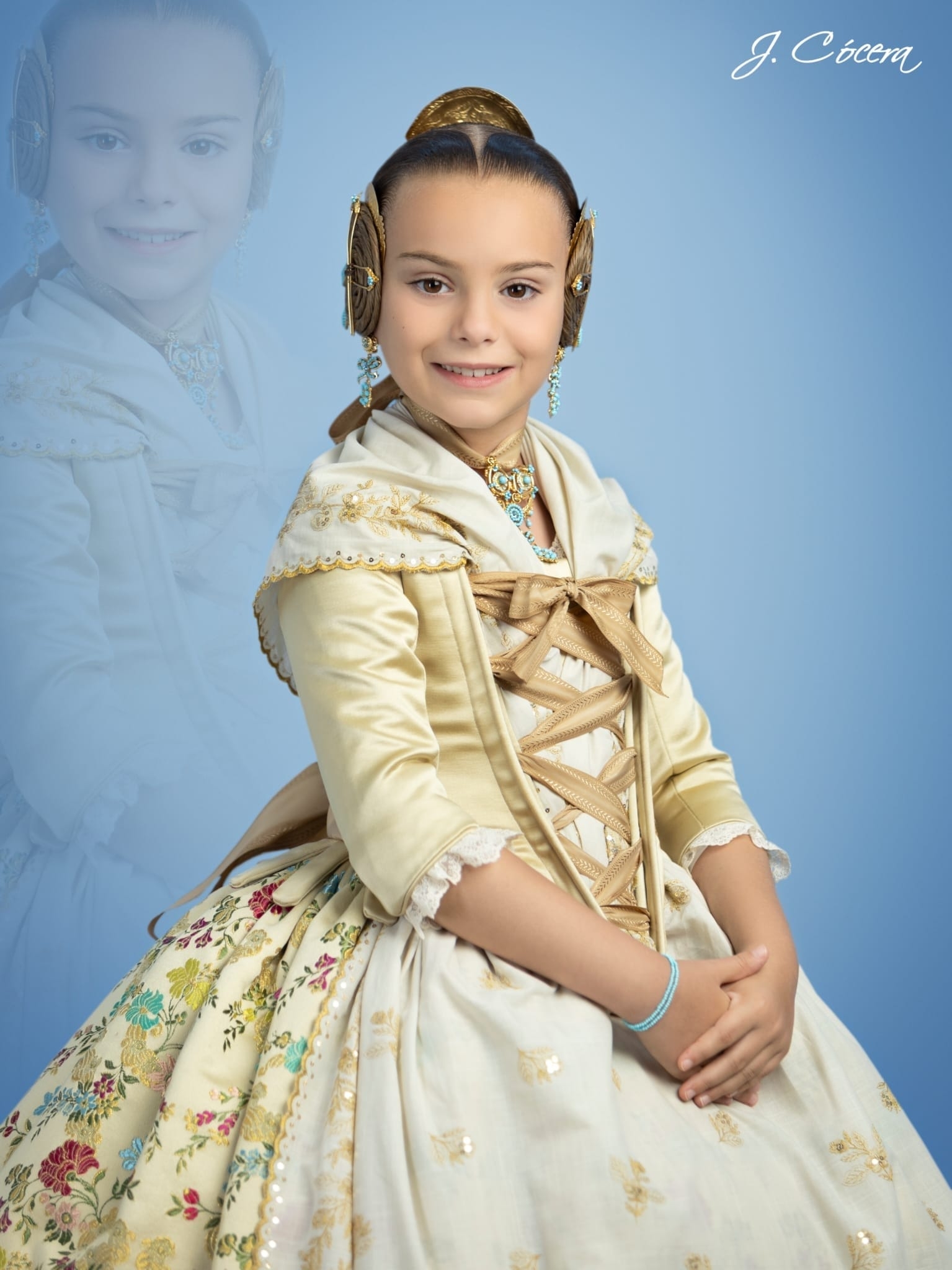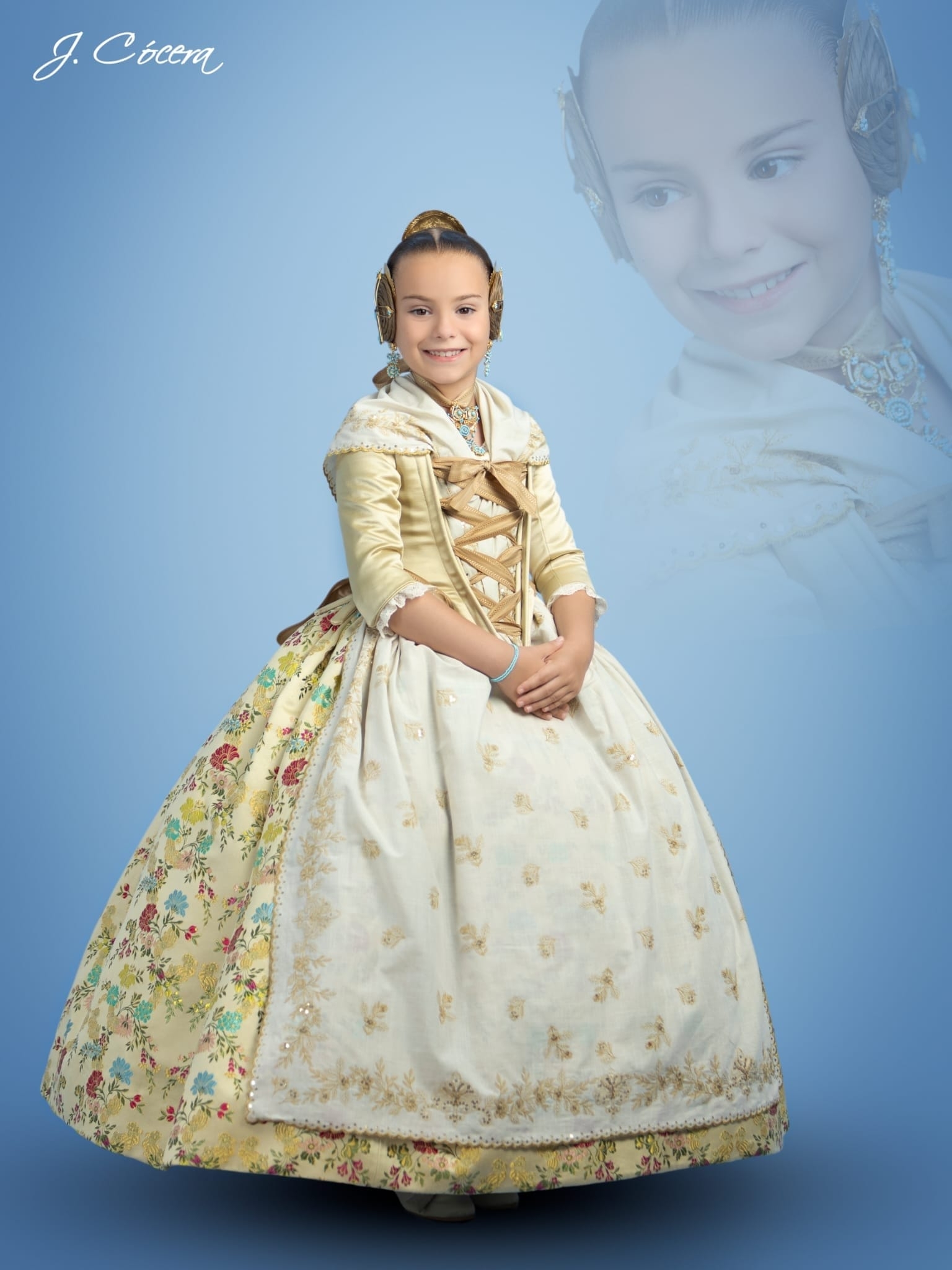 Lola Cañadas Jordá, Fallera Mayor Infantil de la Falla San Vicente–Periodista Azzati, ha conquistado corazones no solo por su dulzura, sino también por una indumentaria fallera cargada de historia, tradición y emoción familiar.