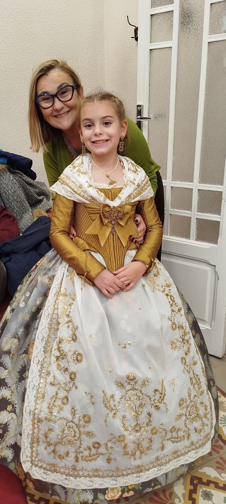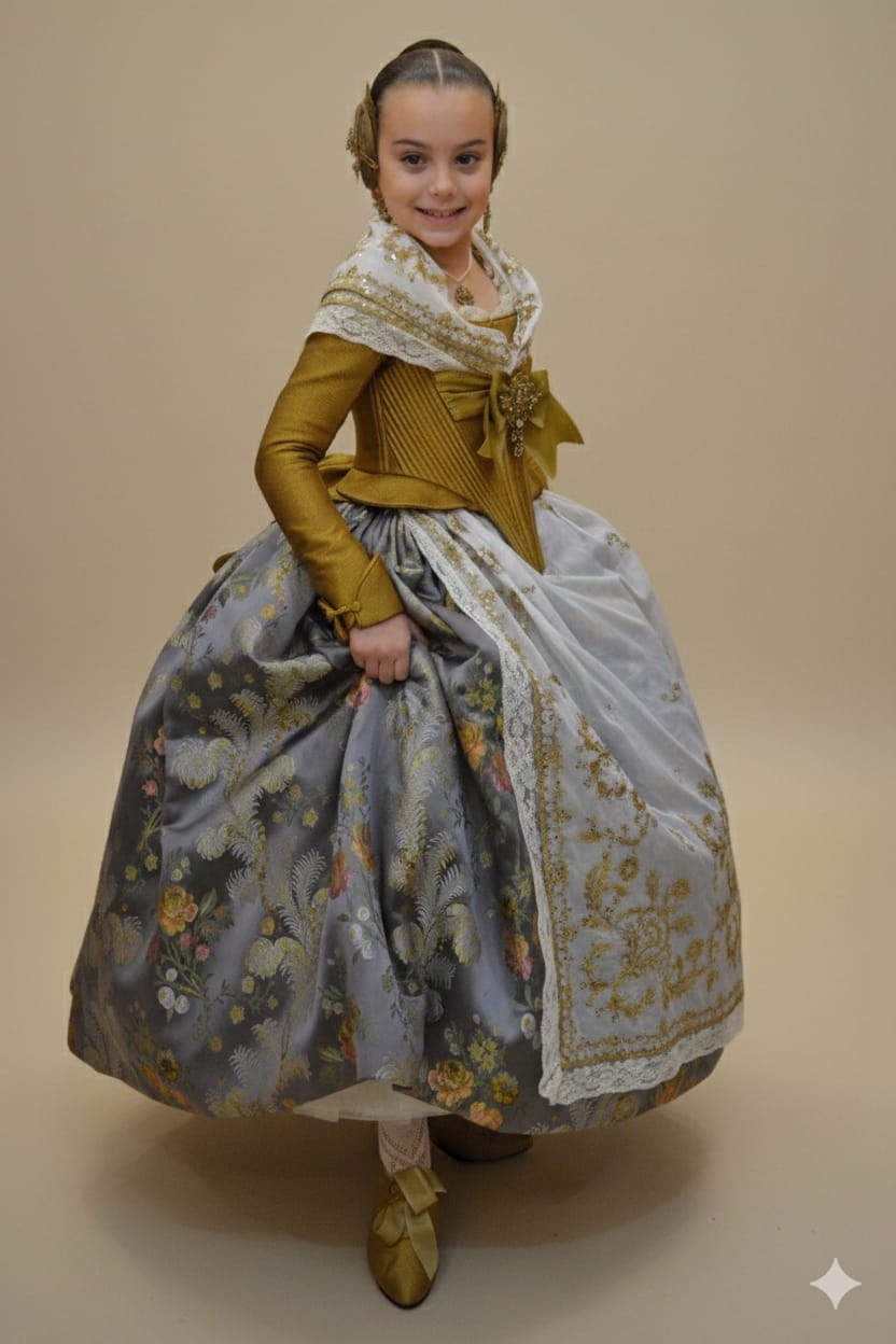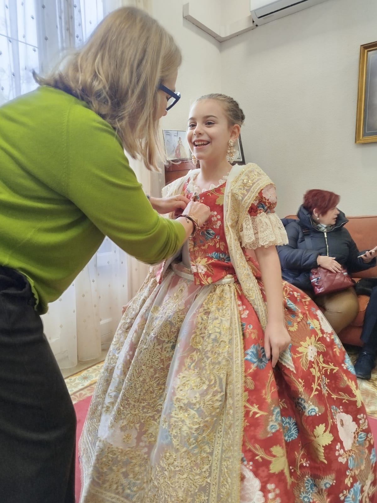 La indumentaria de la Fallerita Mayor Infantil de la Falla San Vicente–Periodista Azzati se convierte así en un homenaje a generaciones pasadas, donde técnica, artesanía y emoción se entrelazan para dar forma a un armario único y lleno de historia.