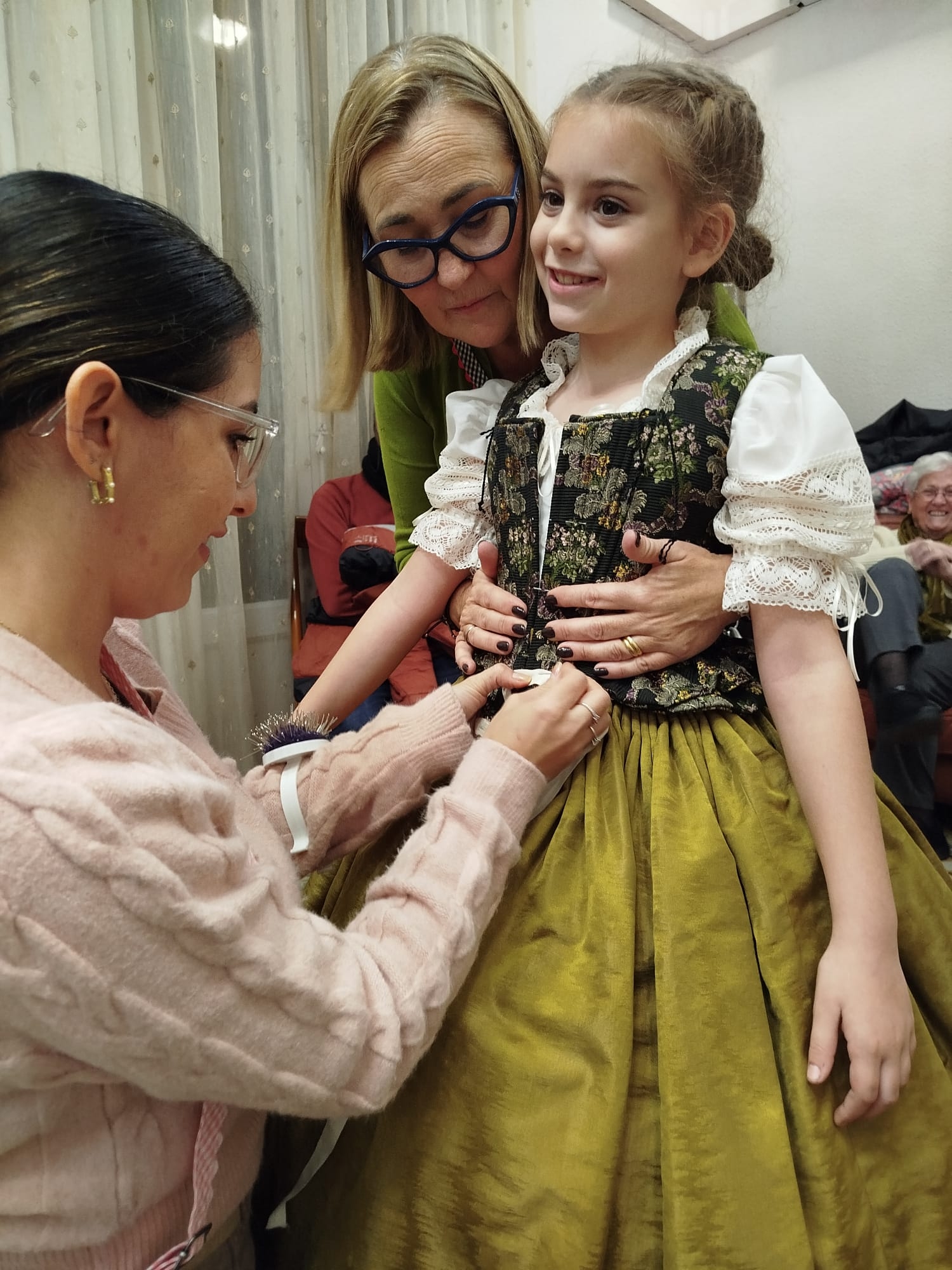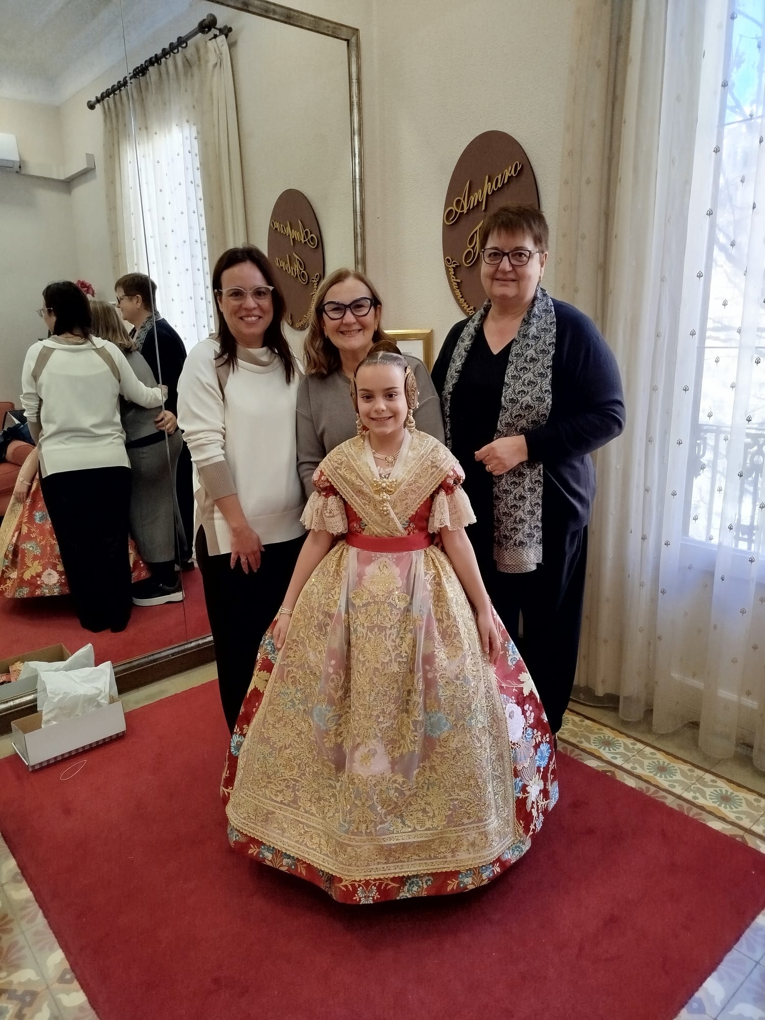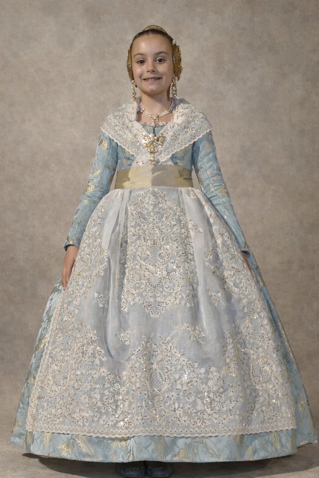 La indumentaria de la Fallerita Mayor Infantil de la Falla San Vicente–Periodista Azzati se convierte así en un homenaje a generaciones pasadas, donde técnica, artesanía y emoción se entrelazan para dar forma a un armario único y lleno de historia.