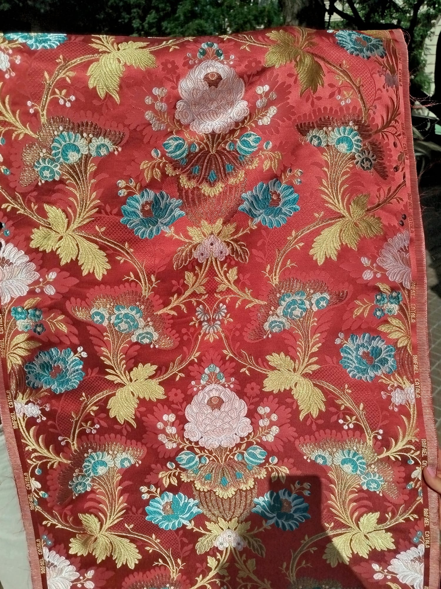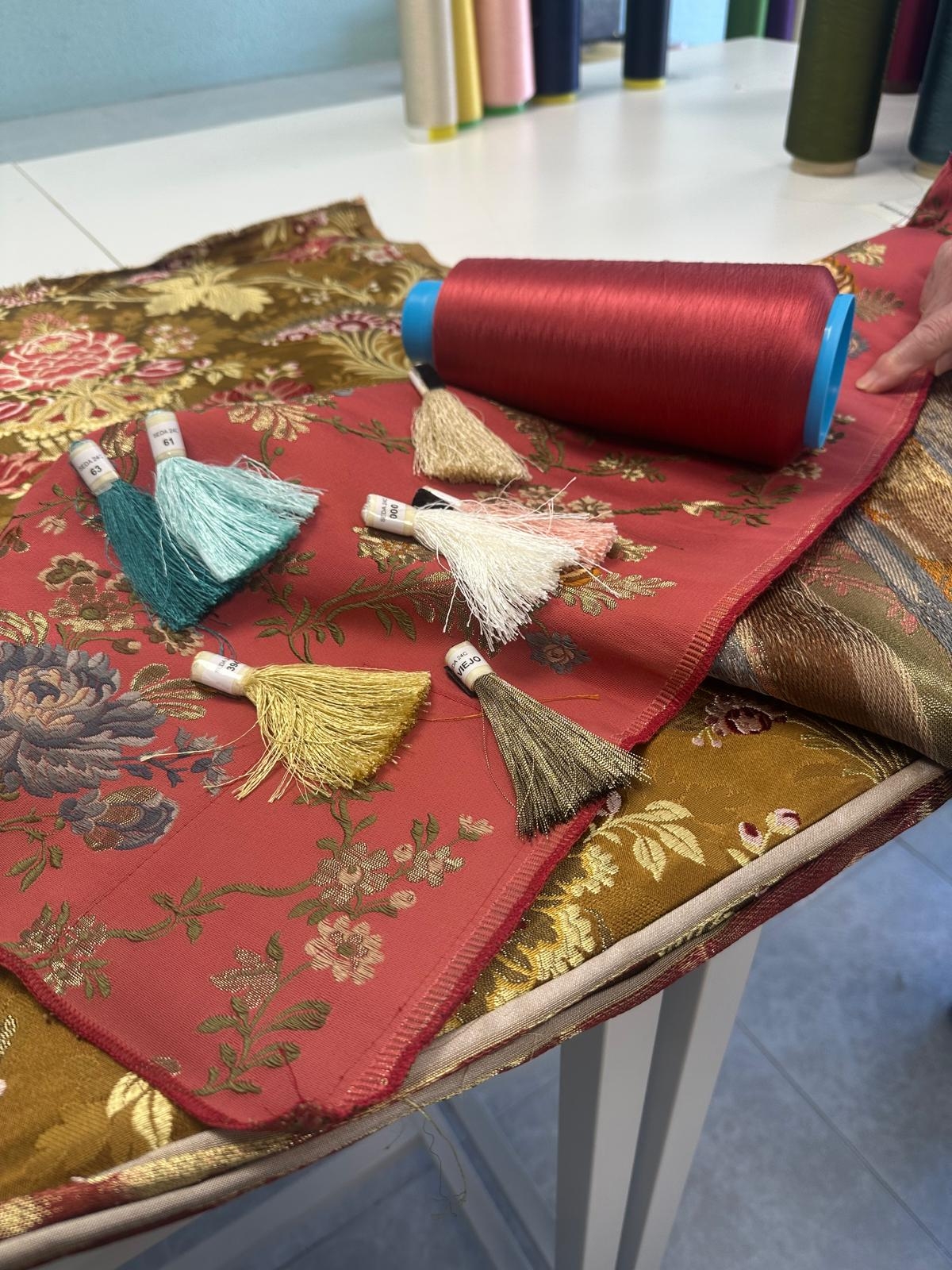 La seda elegida fue el dibujo “Lidón”, trabajado con un nivel de detalle excepcional: