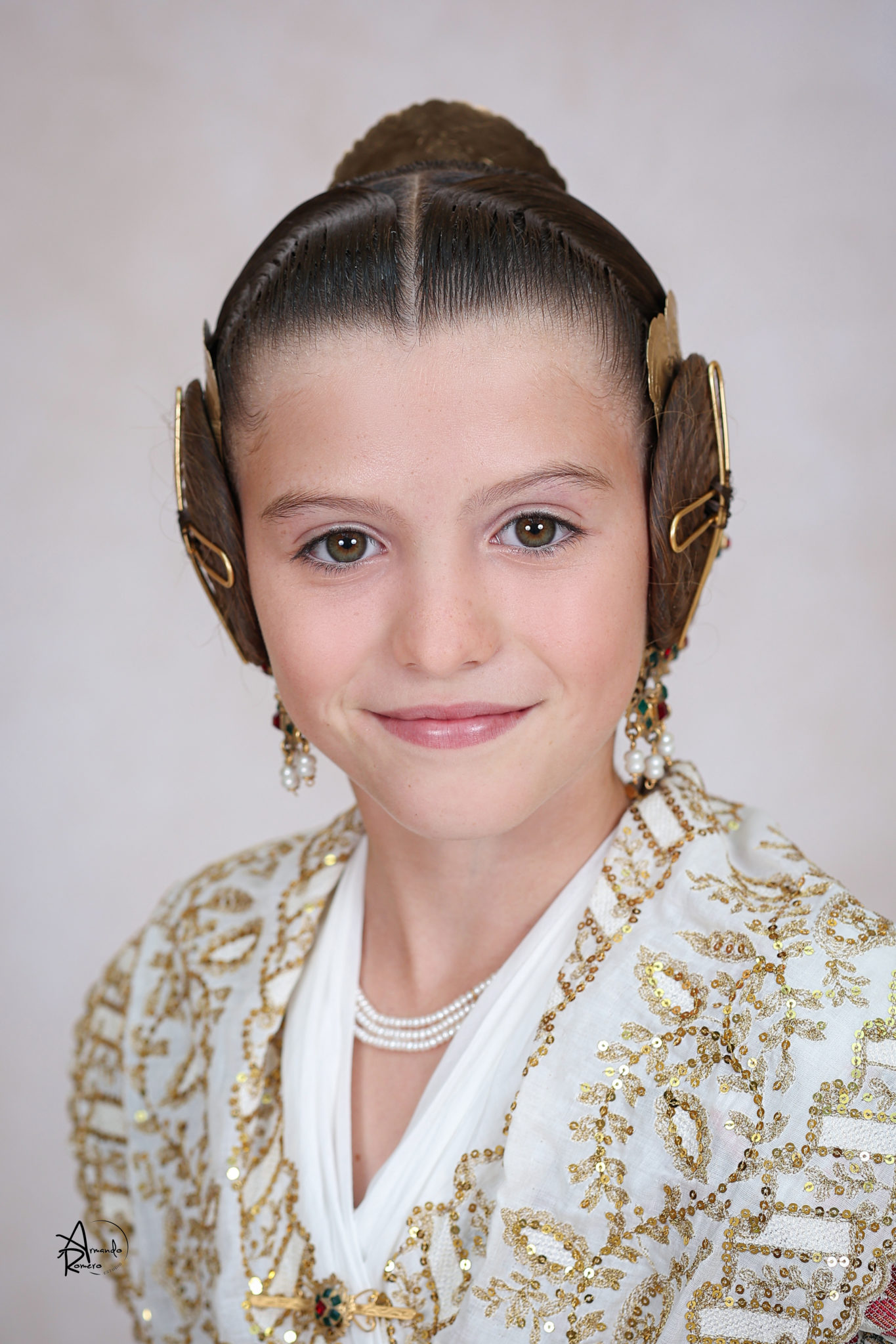 Fallera desde que nació, tiene el distintivo de Oro. Le encanta participar en las actividades de la Delegación de Infantiles de su falla (playbacks, meriendas, juegos, taller de manualidades…). Participó en las Mini-Olimpiadas de la Agrupación y está aprendiendo Bailes Regionales