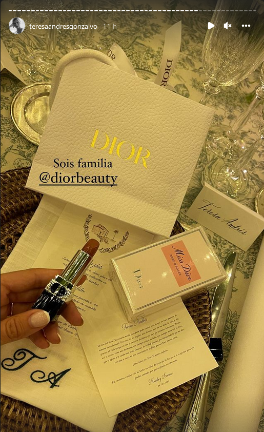 En la mesa, cada invitado se encontró un regalo de la marca Dior, su tarjeta y servilleta con las iniciales bordadas de cada invitado.