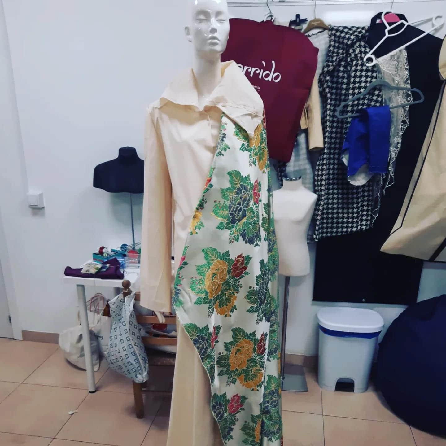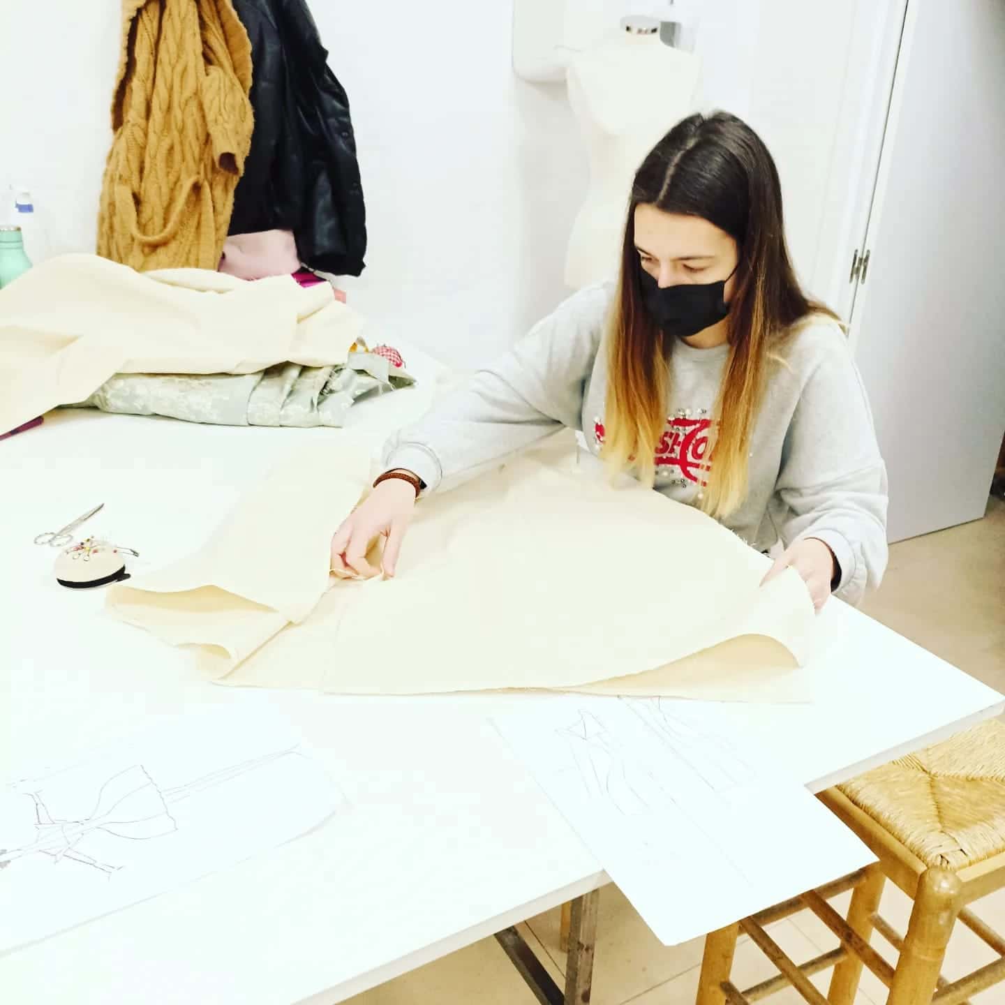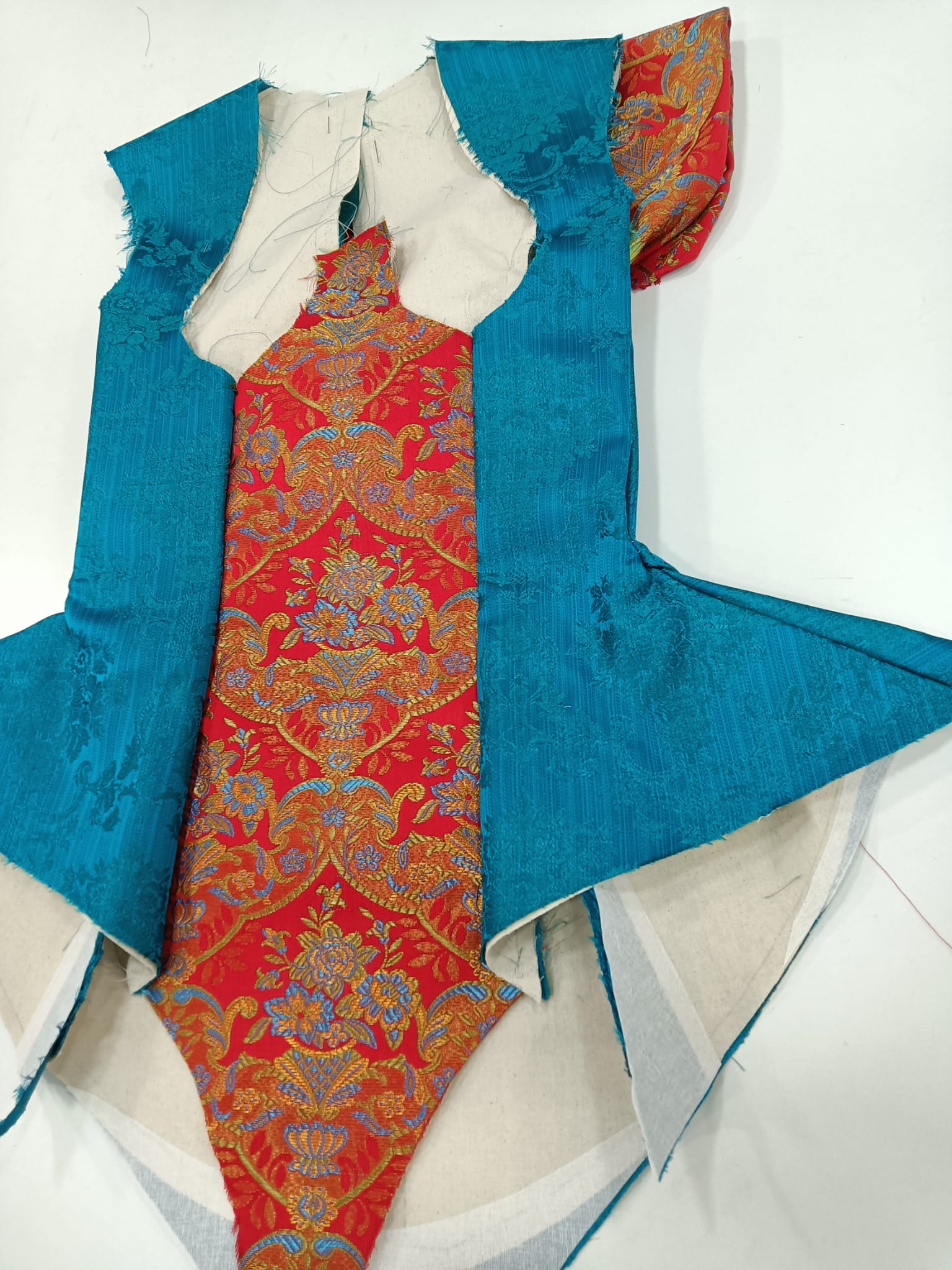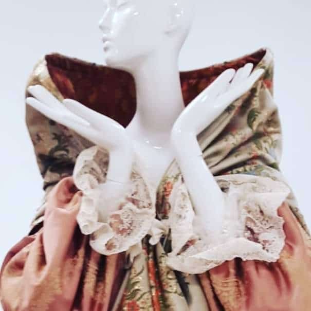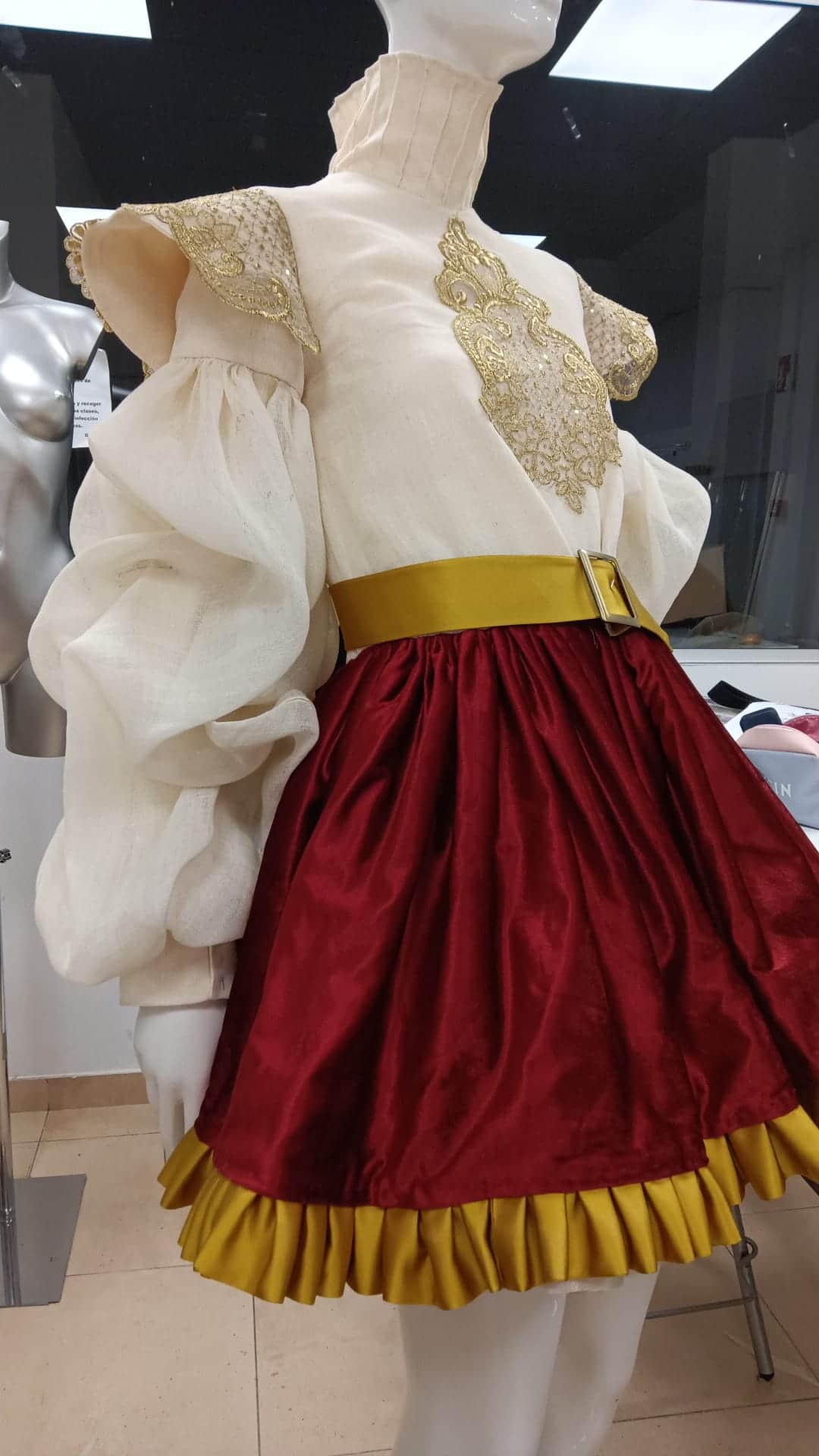 Estas 10 mujeres van vestidas de alta costura con diseños exclusivos de Manu Fernández. Los modelos han sido patronados, cortados y confeccionados en la Escuela de Formación del Gremio de Sastres y Modistas de la CV.de a partir de las telas de viejos trajes de fallera en desuso rescatados por la comisión.